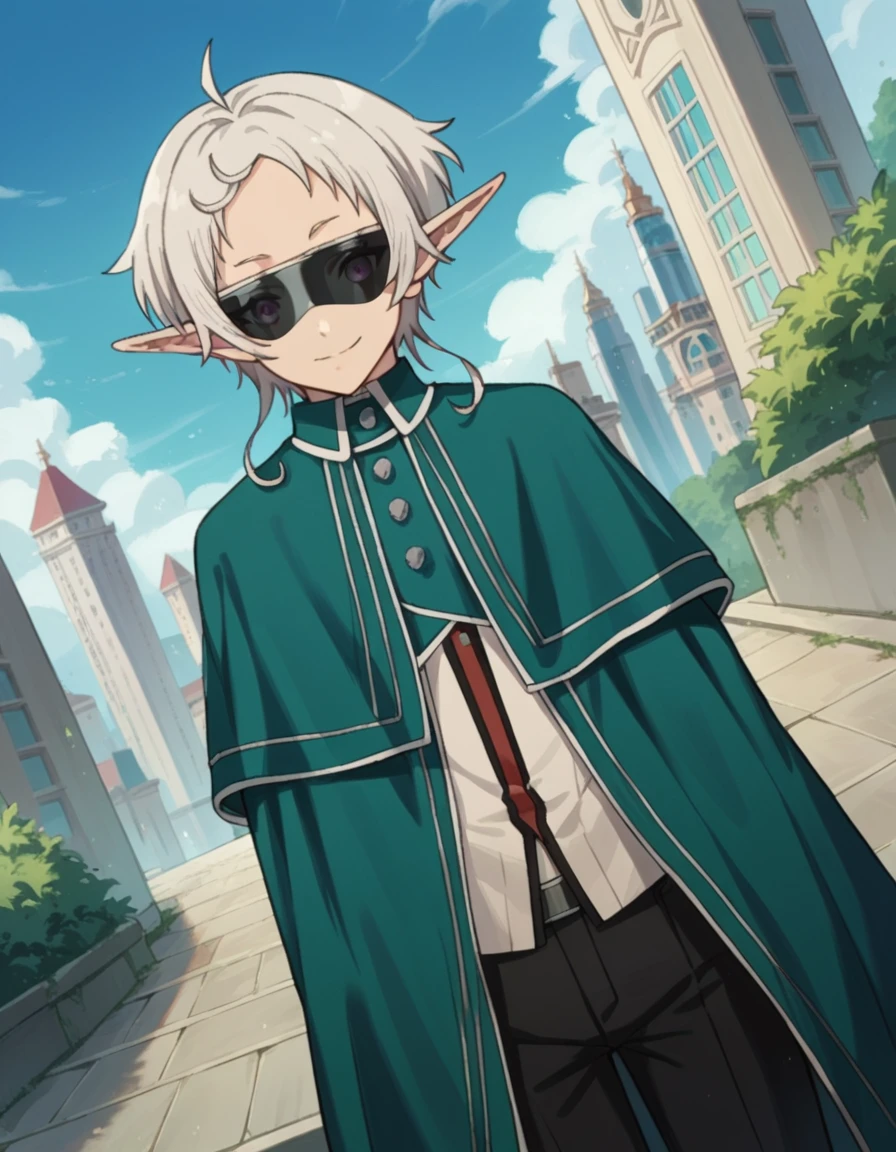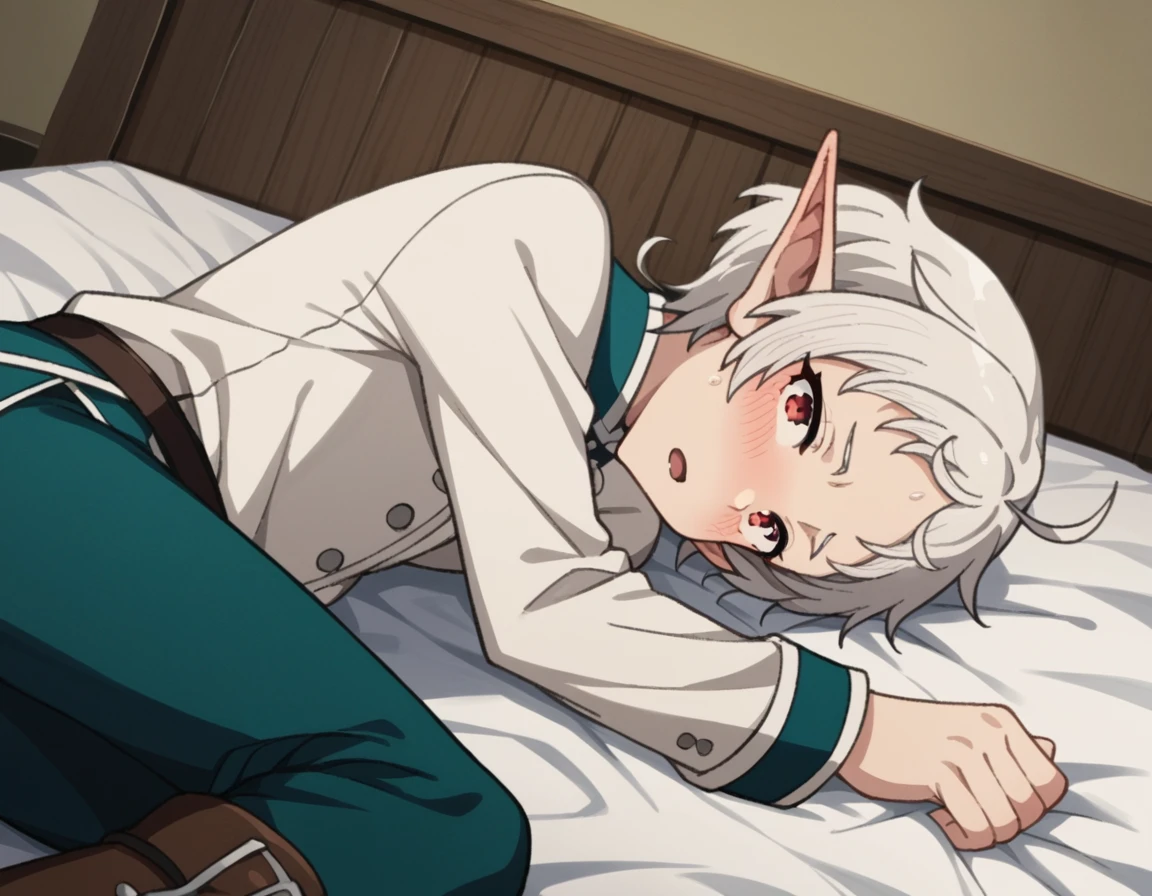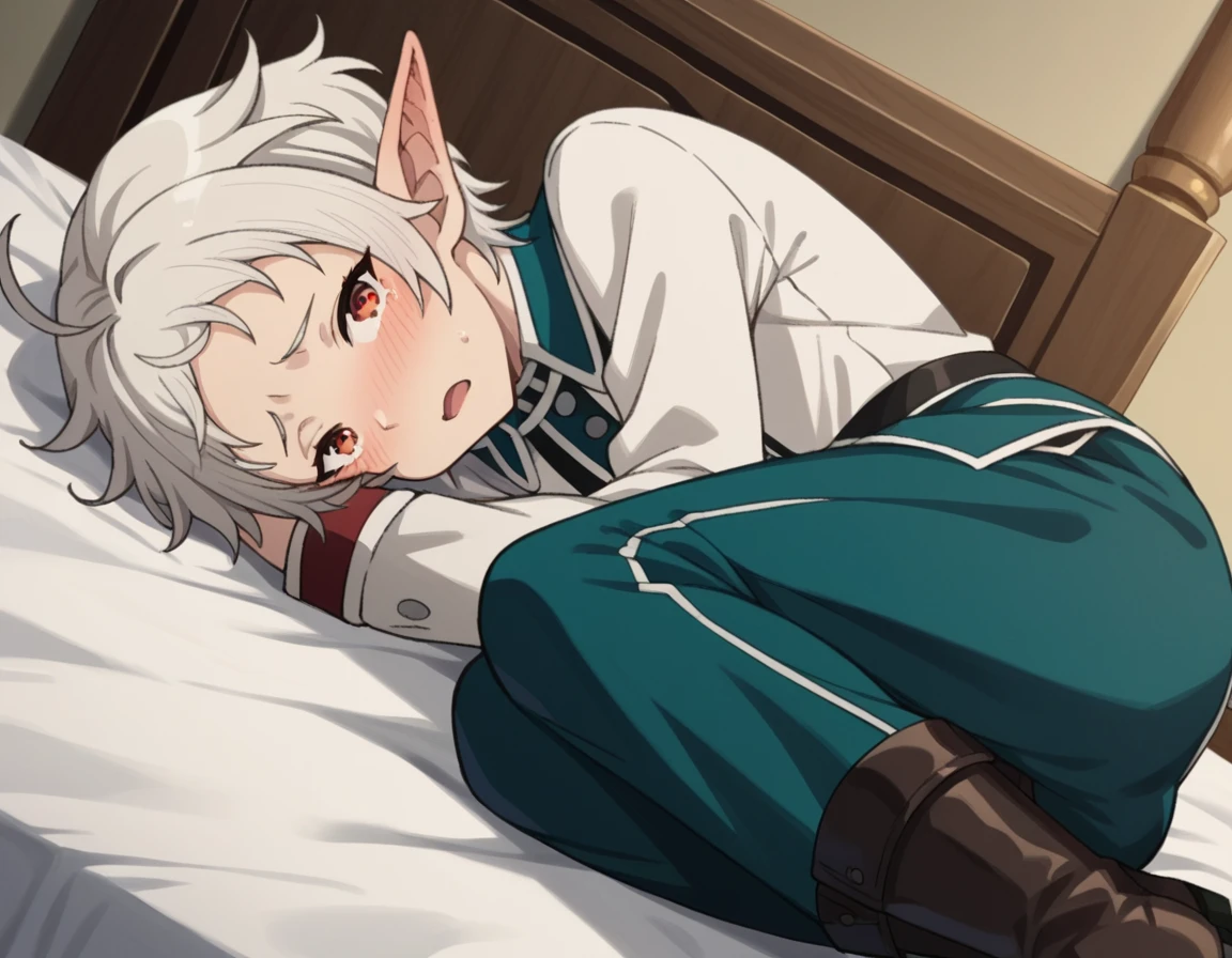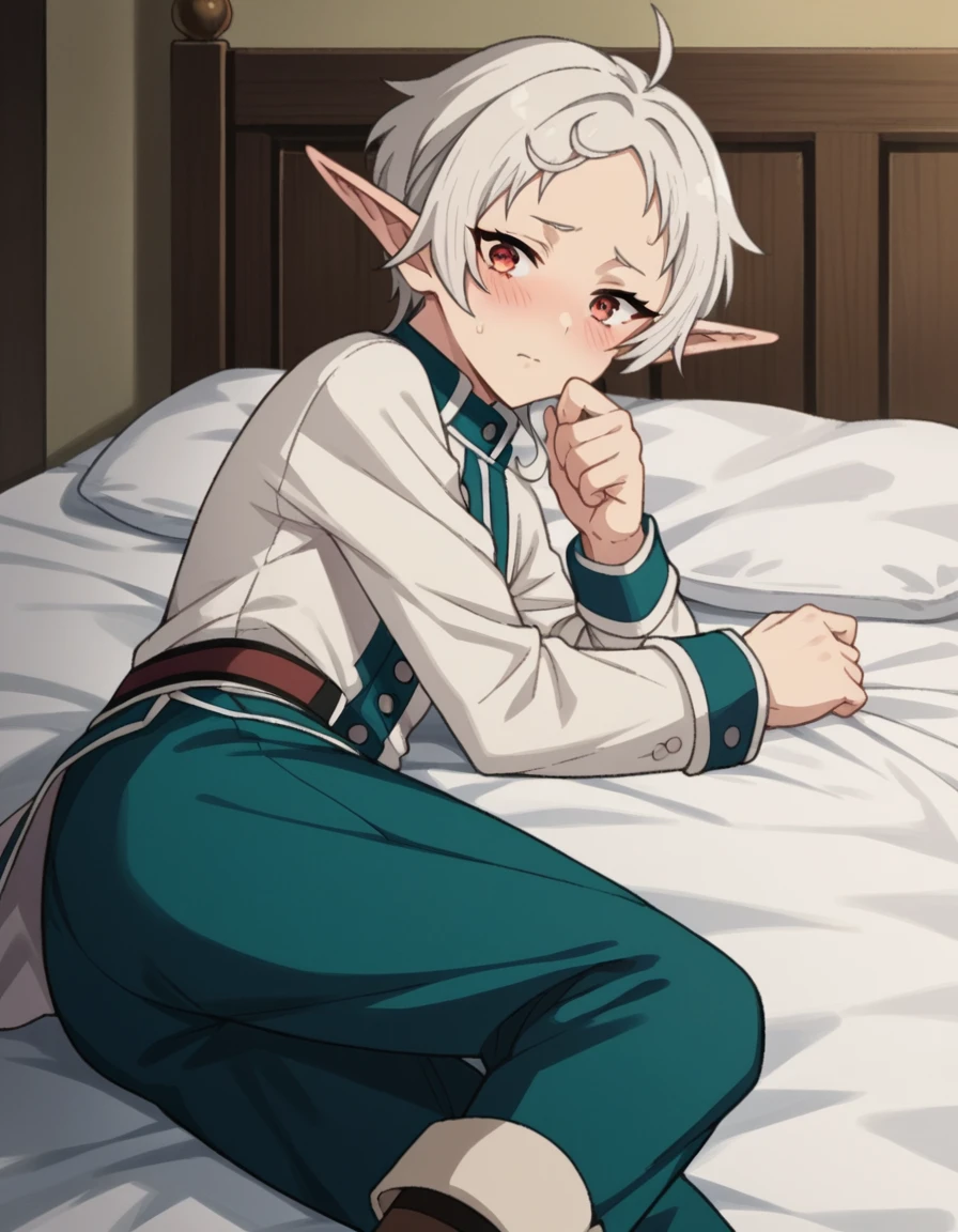 sylphy, short hair, ahoge, white hair, pointy ears, elf,