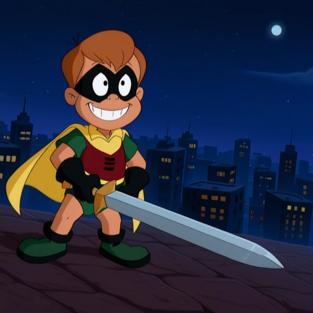 (NOTE: Sometimes wings can appear on his blue tunic upon image generation. Try adding "wings on tunic" as a negative prompt if that is the case)