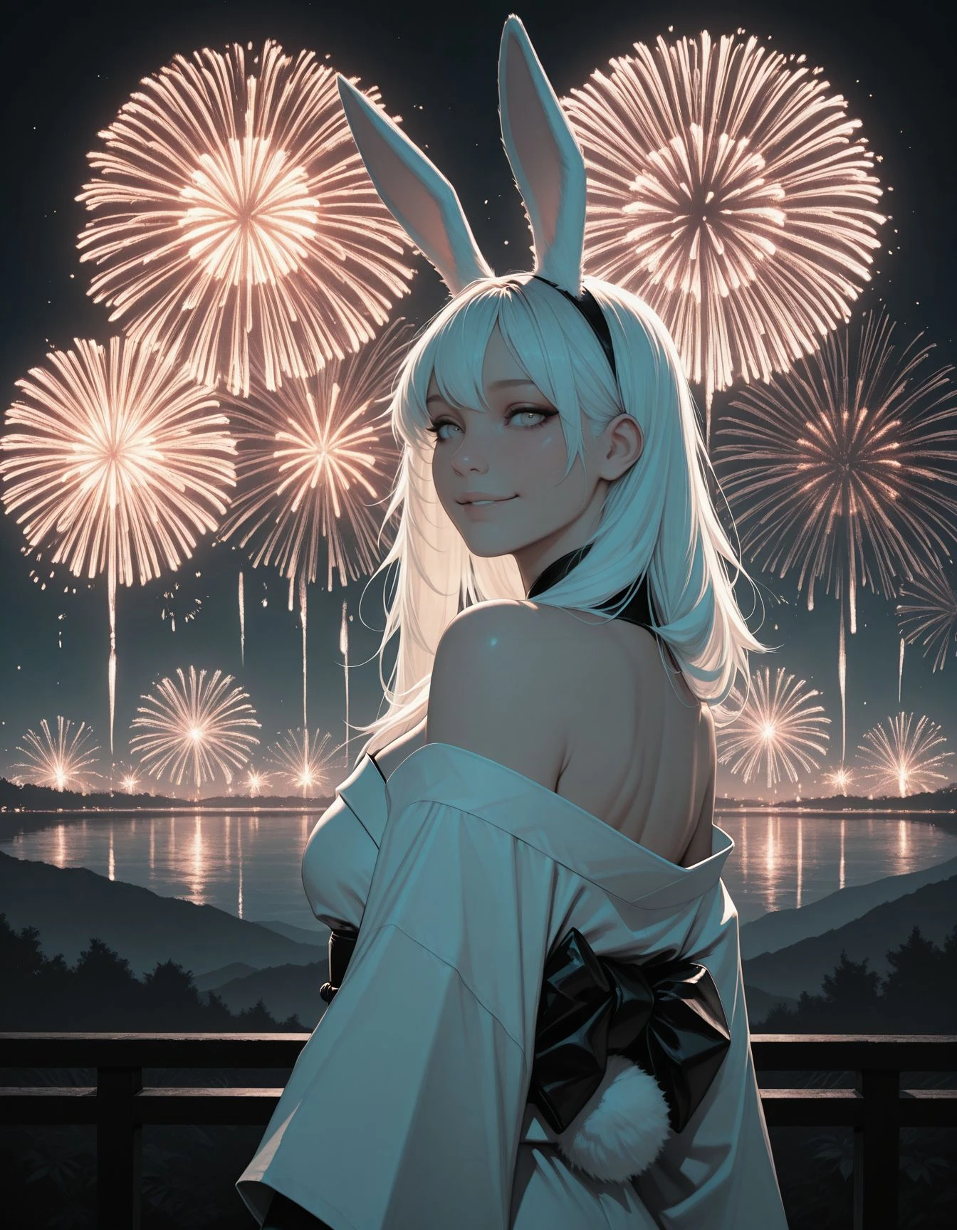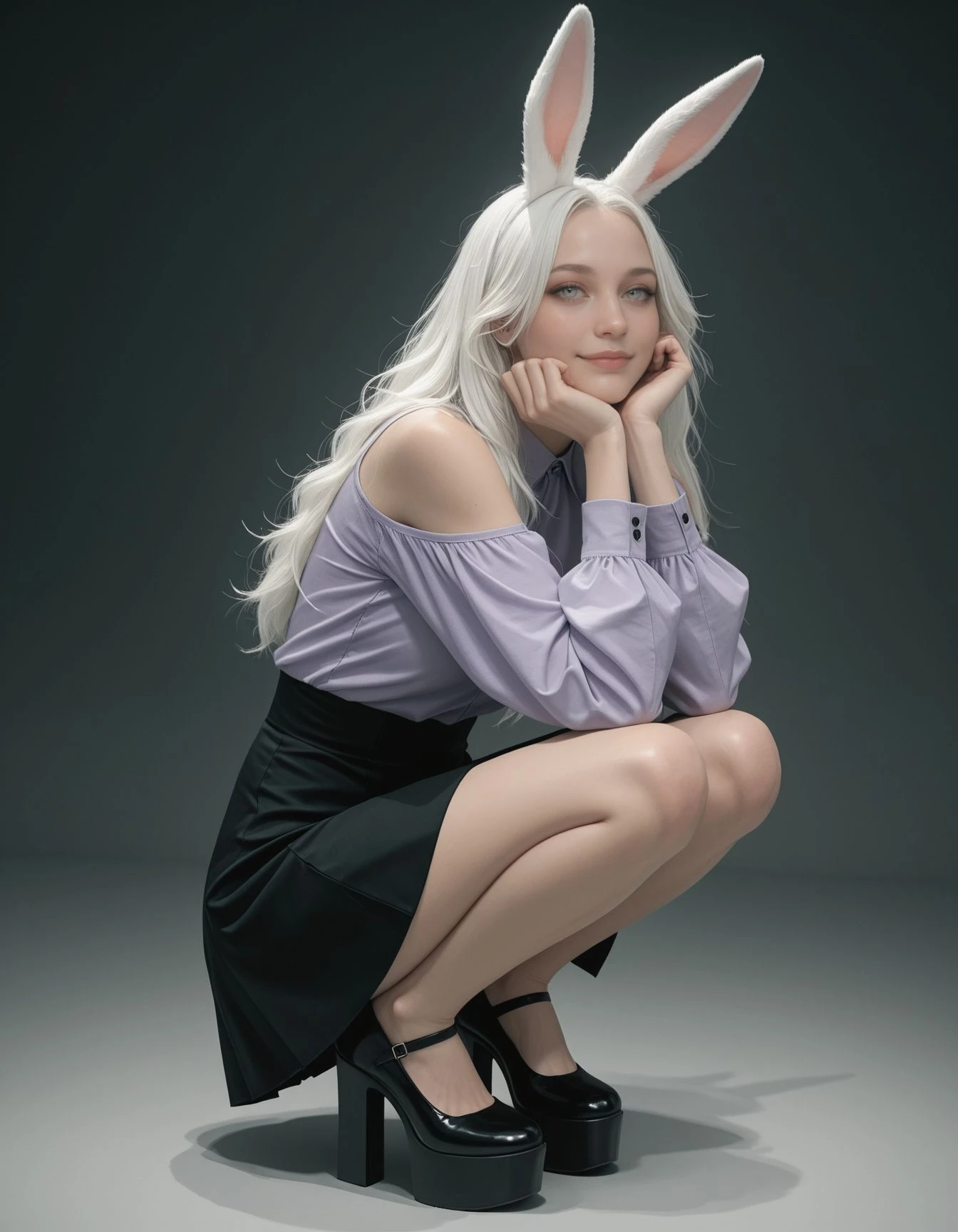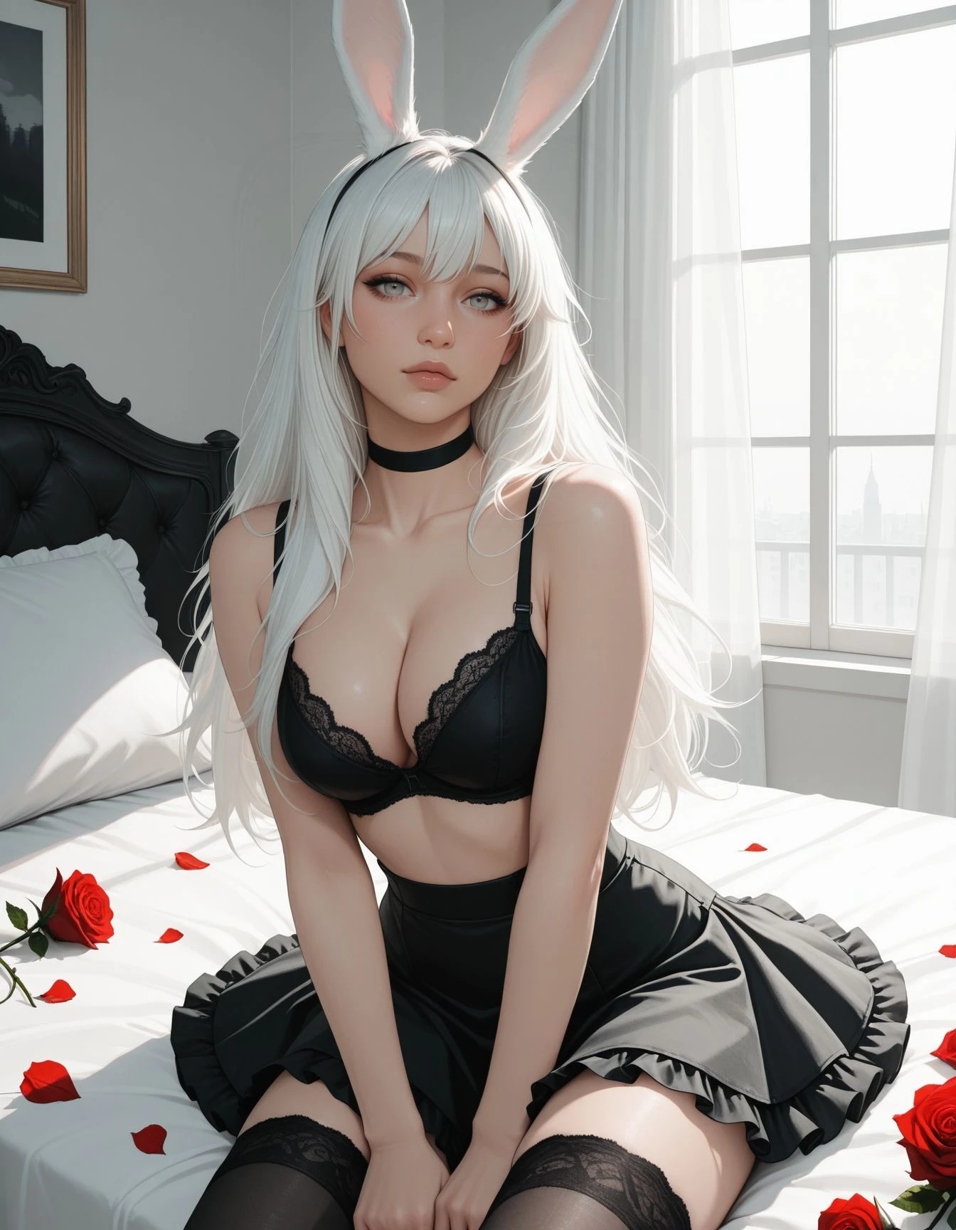 OCB1nB1n, White hair, Grey eyes, bunny ears