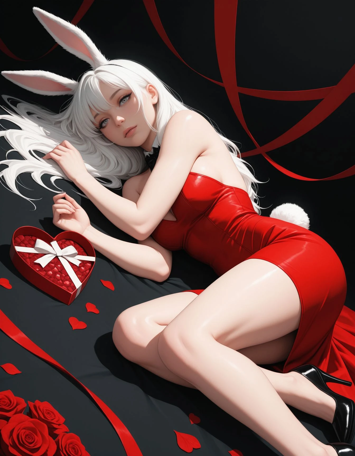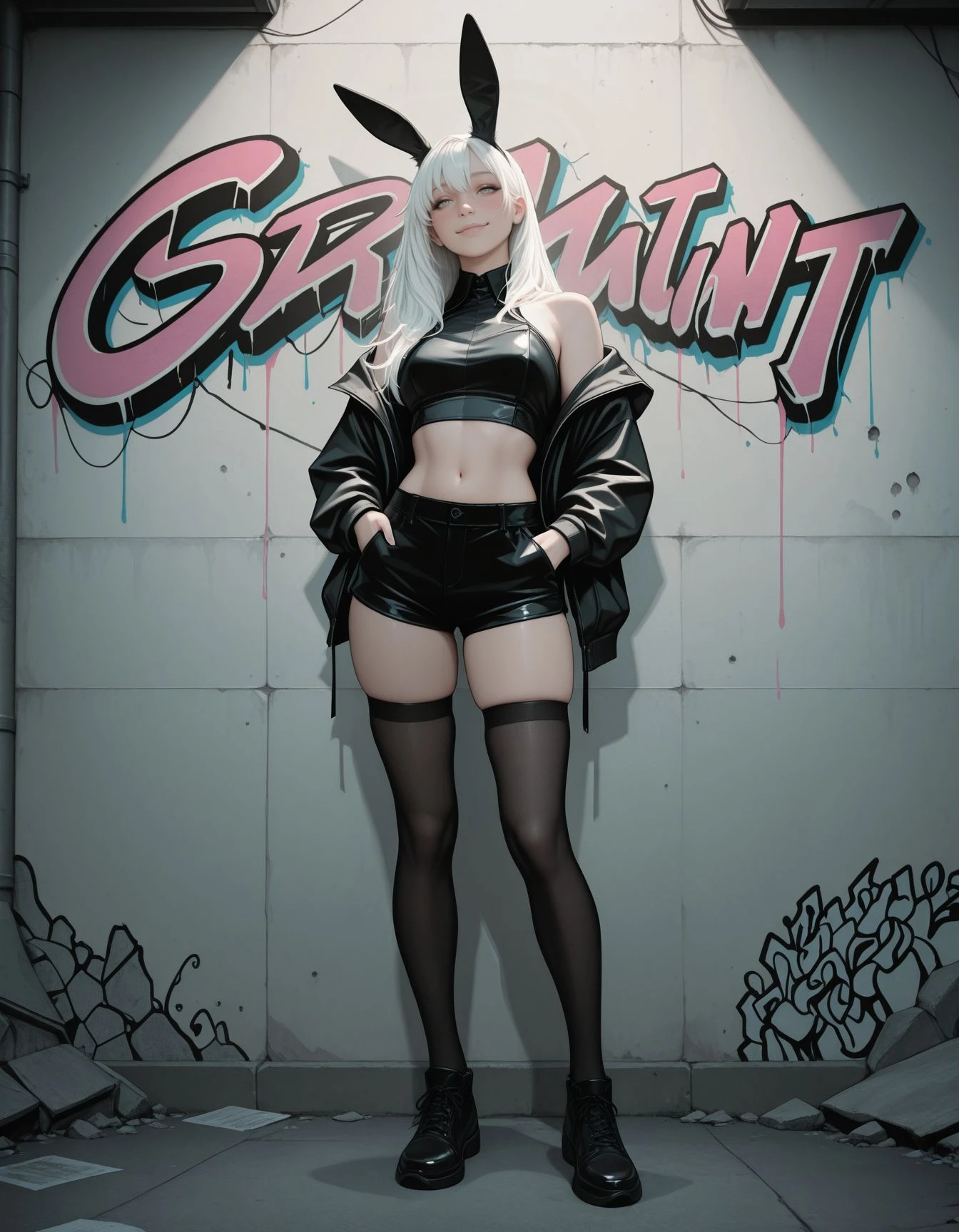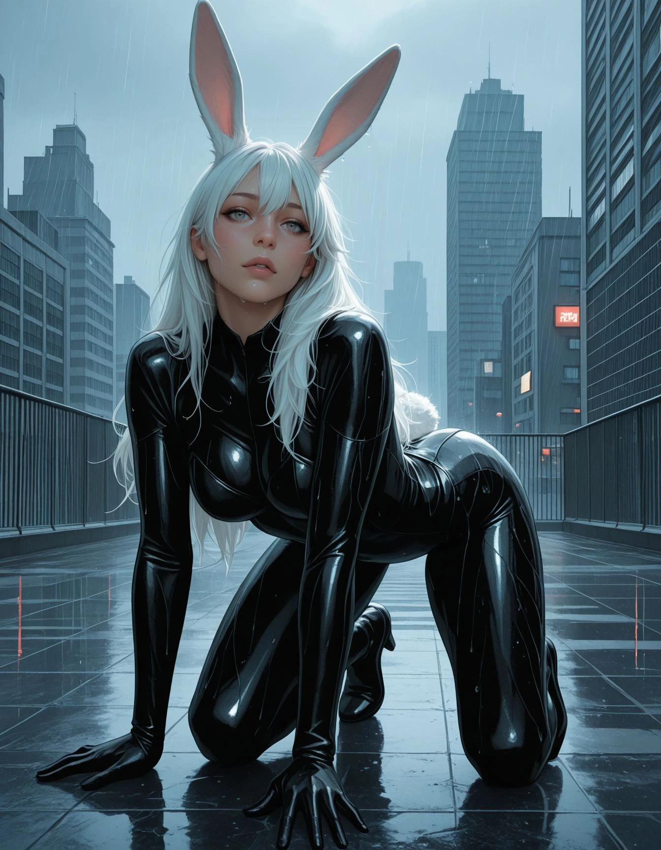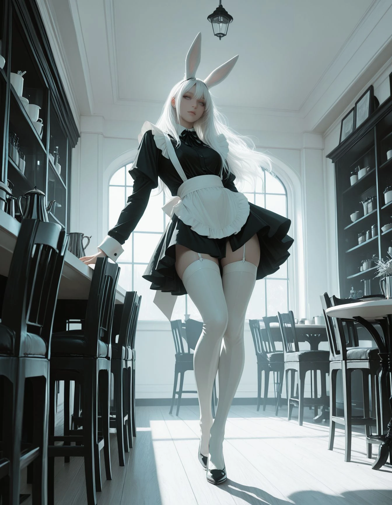 OCB1nB1n, White hair, Grey eyes, bunny ears