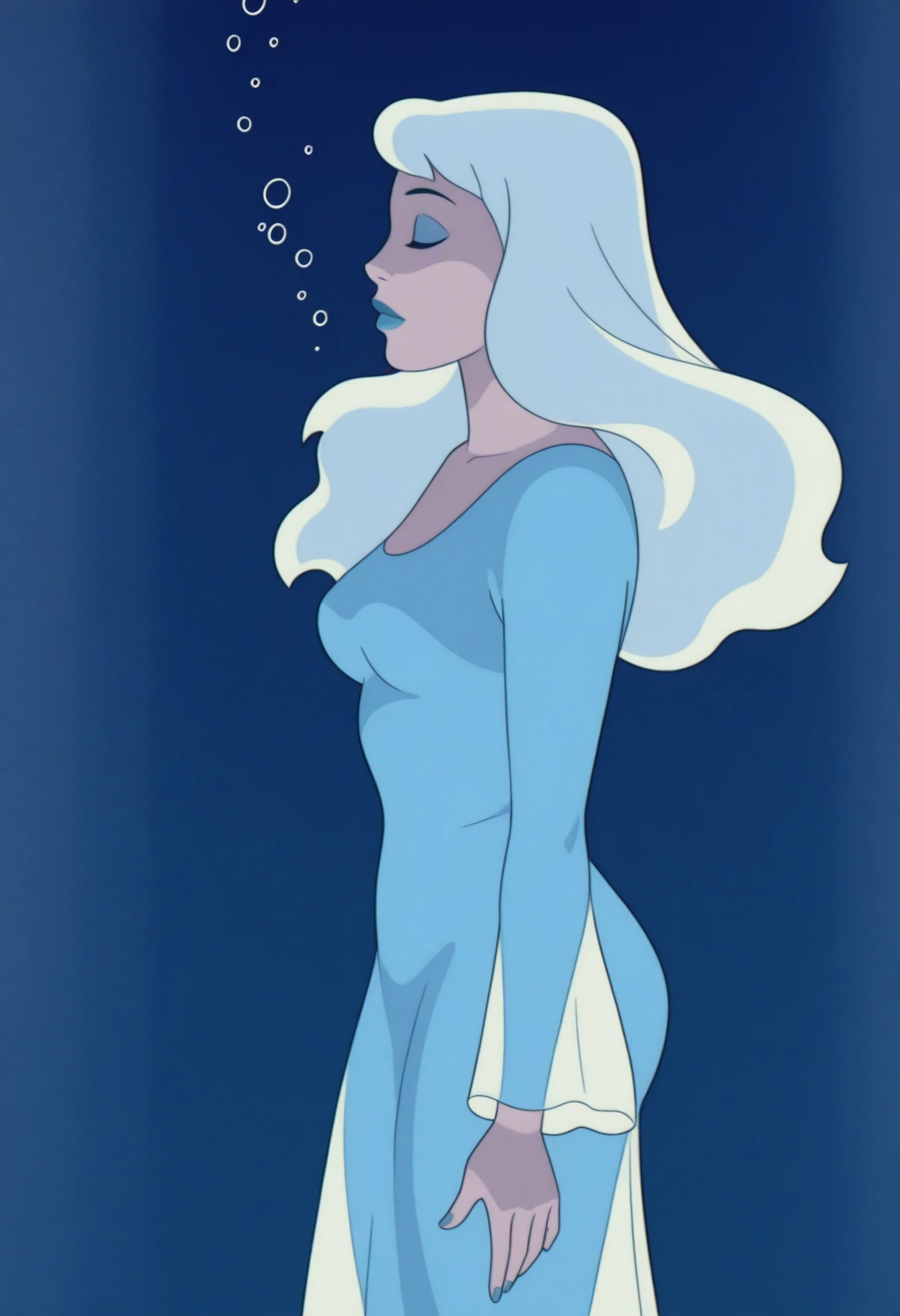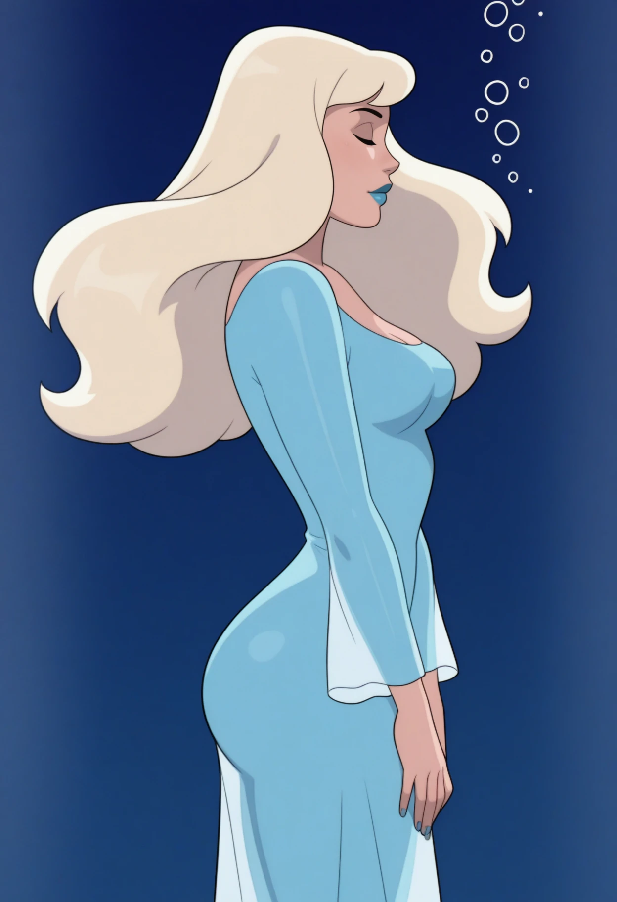 1girl, solo, blue eyes, blonde hair, white hair, long hair, breasts, medium breasts, lipstick, blue lips,You can support my work by following the link: https://boosty.to/nmackelie