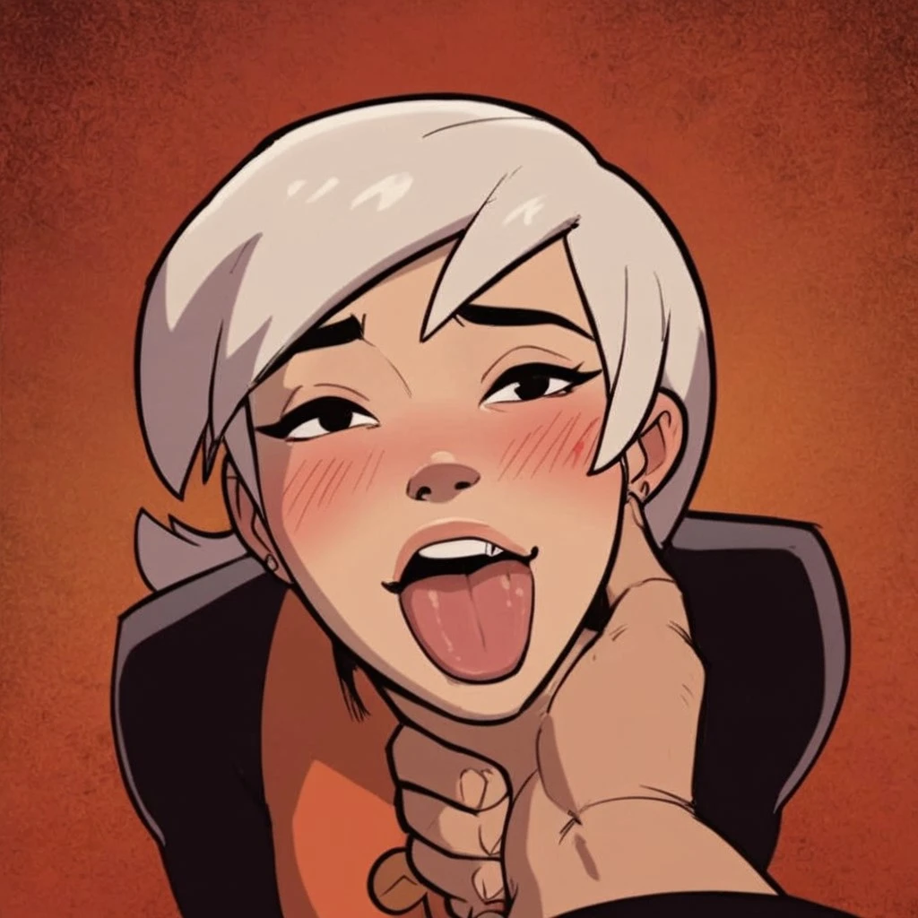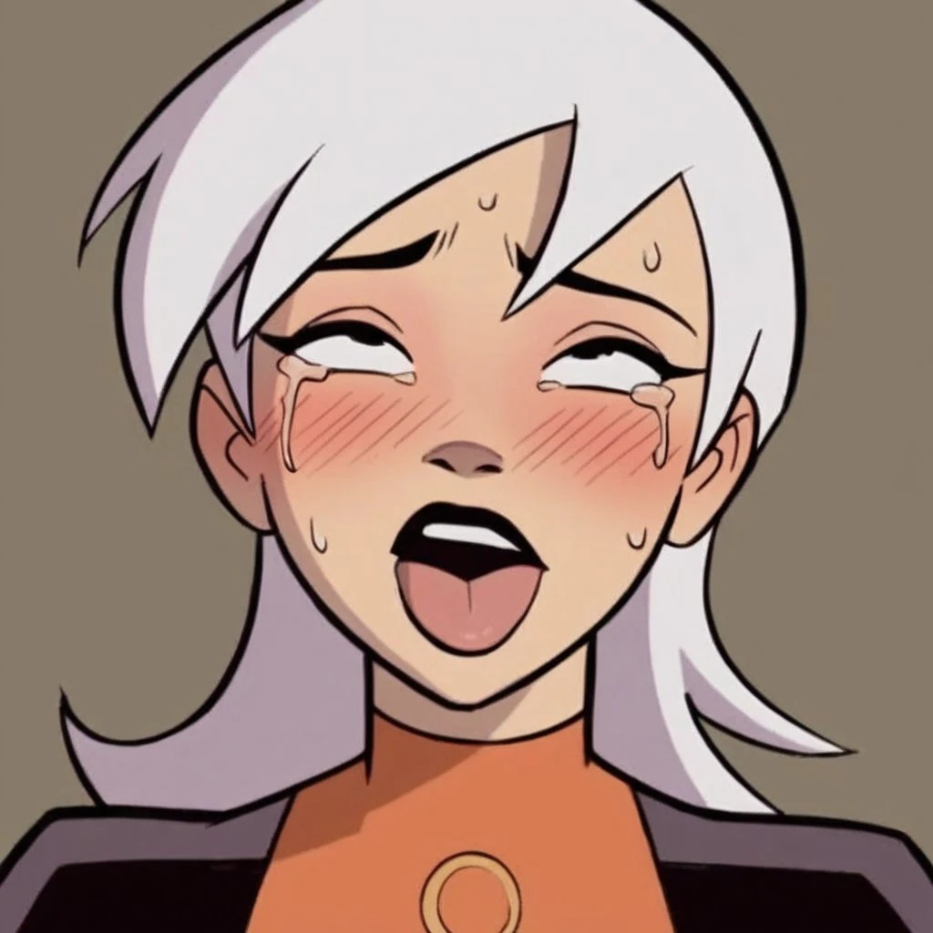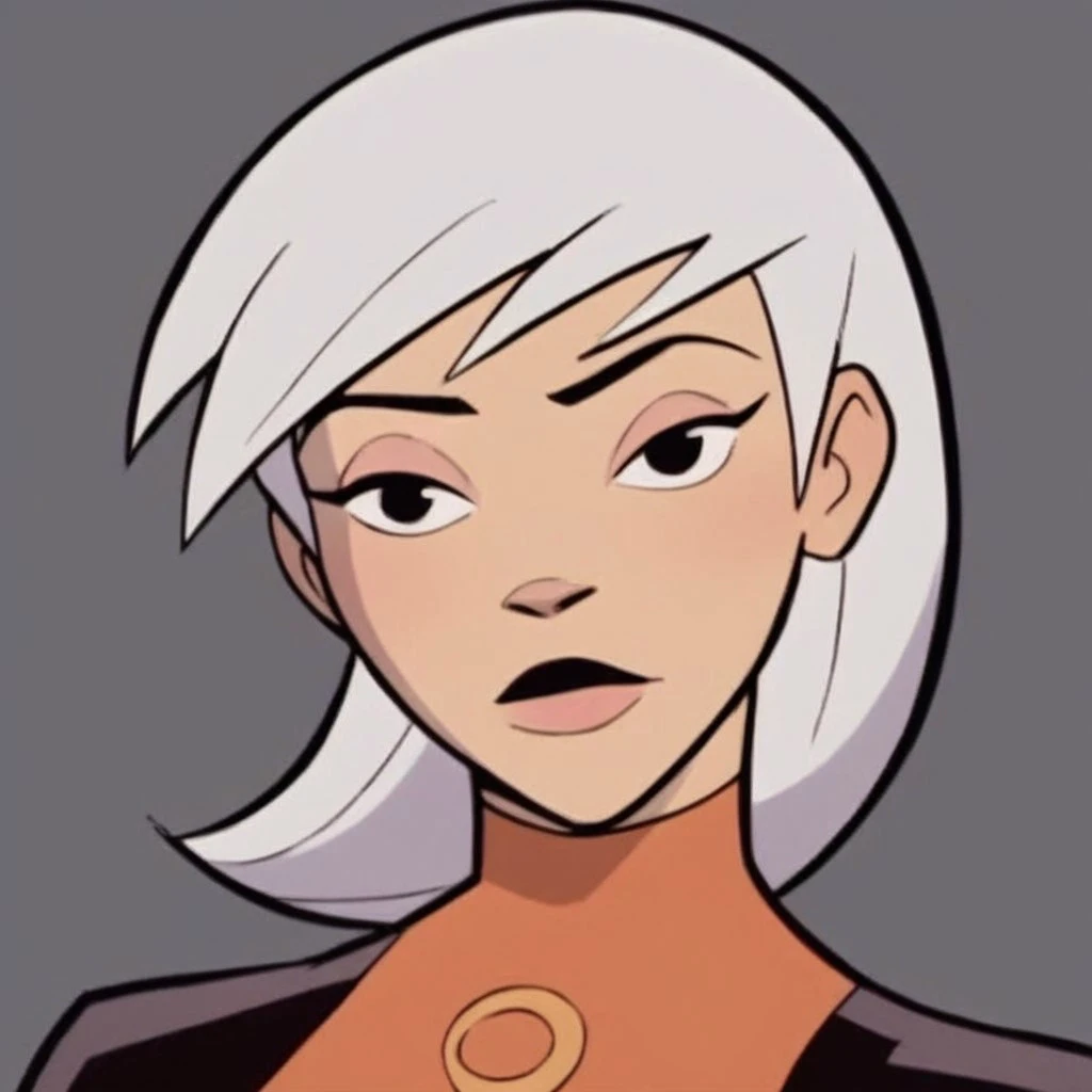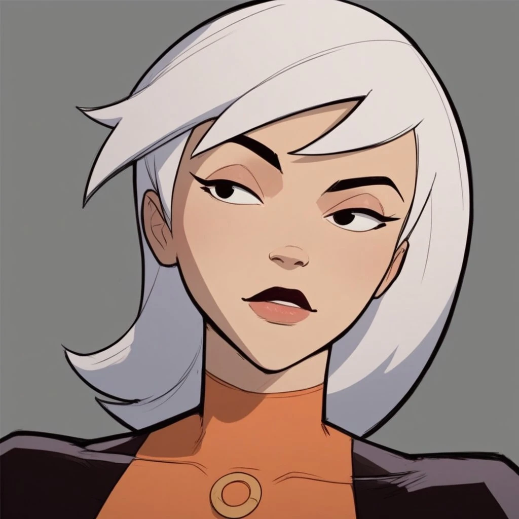 Drew, white hair, black eyes, bodysuit,
