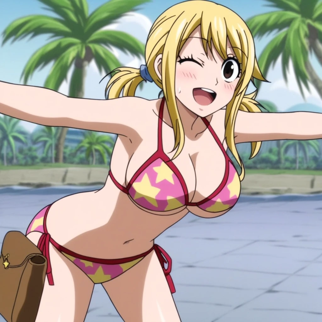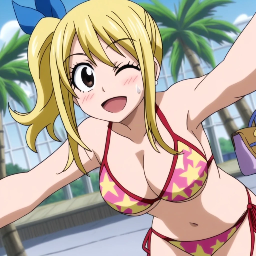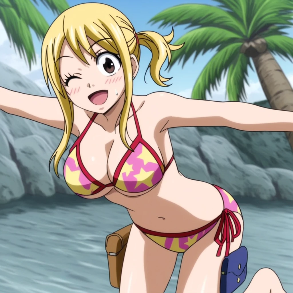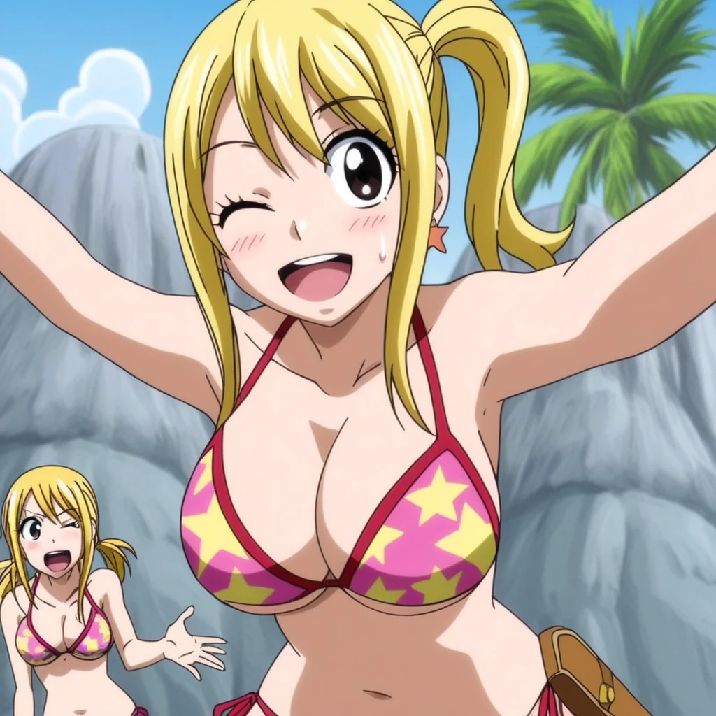 Lucy Heartfilia, Blonde Hair, Long Hair, Brown Eyes, Large Breasts, Star-Print Bikini, Navel,