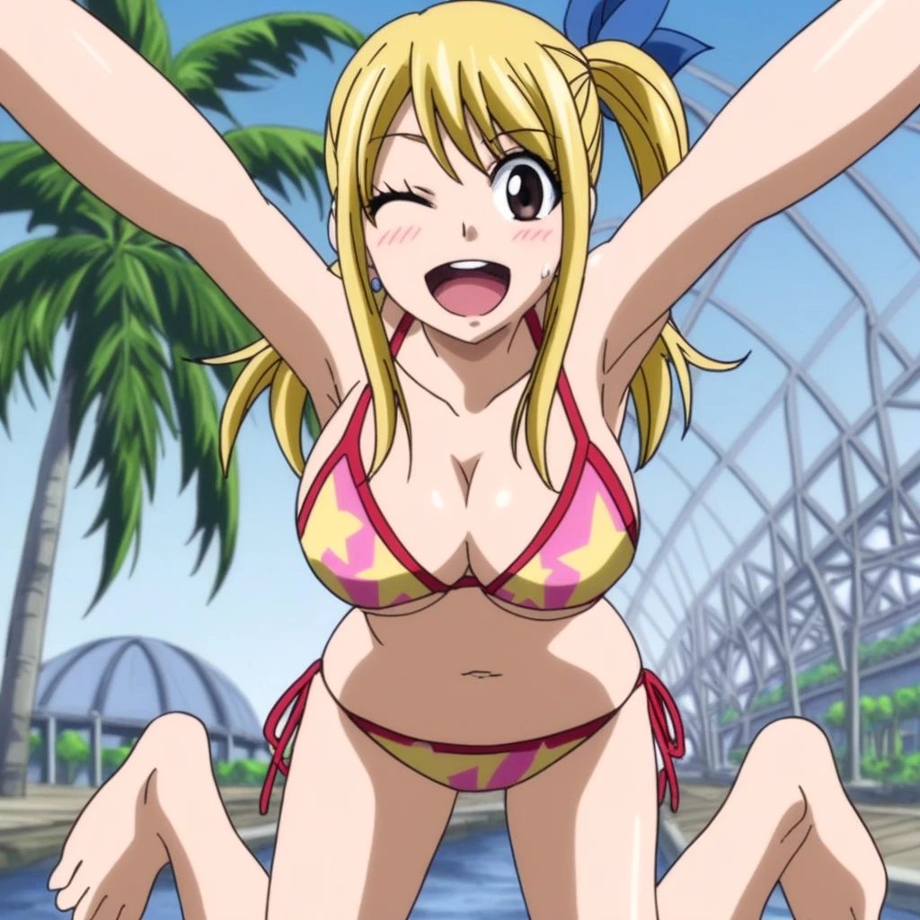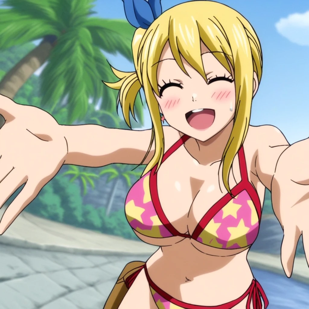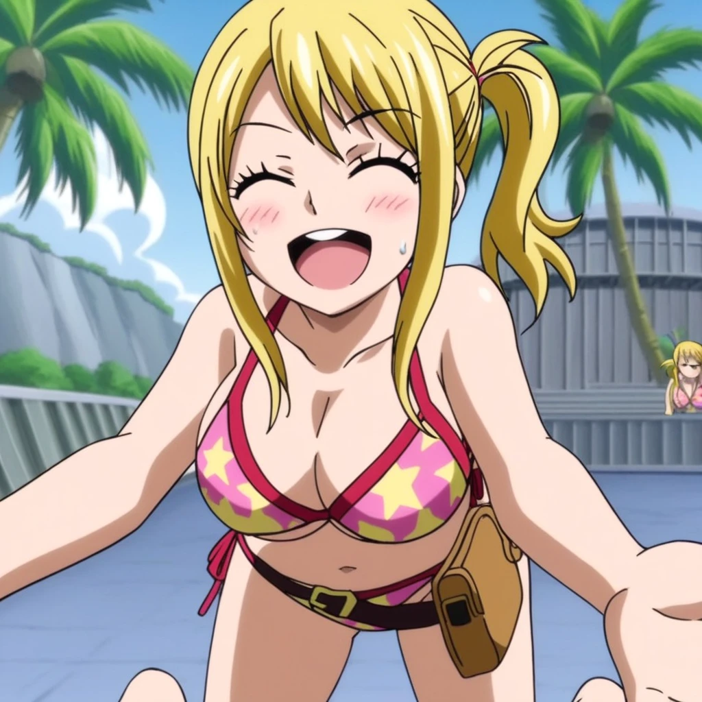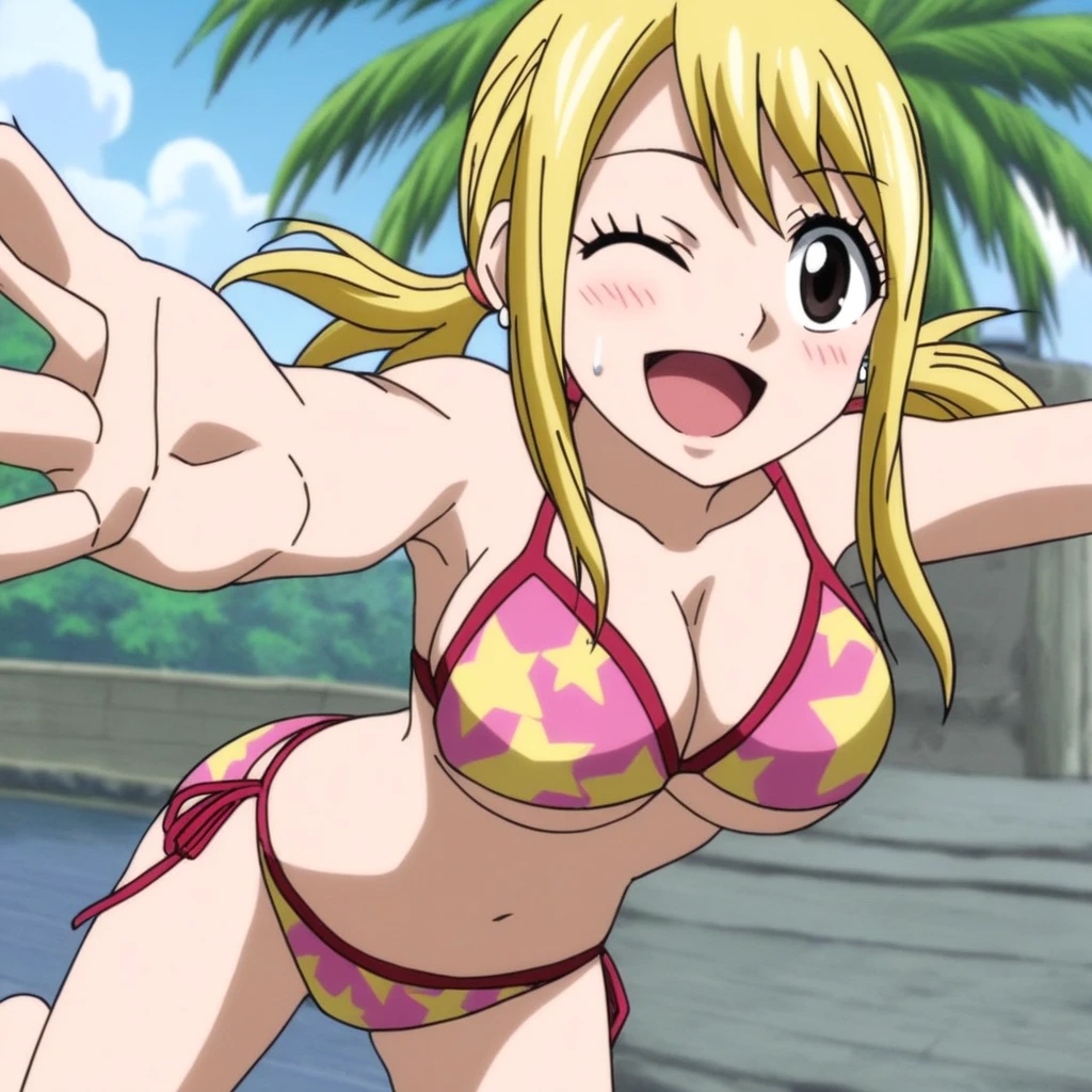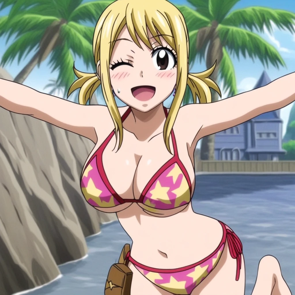 Lucy Heartfilia, Blonde Hair, Long Hair, Brown Eyes, Large Breasts, Star-Print Bikini, Navel,