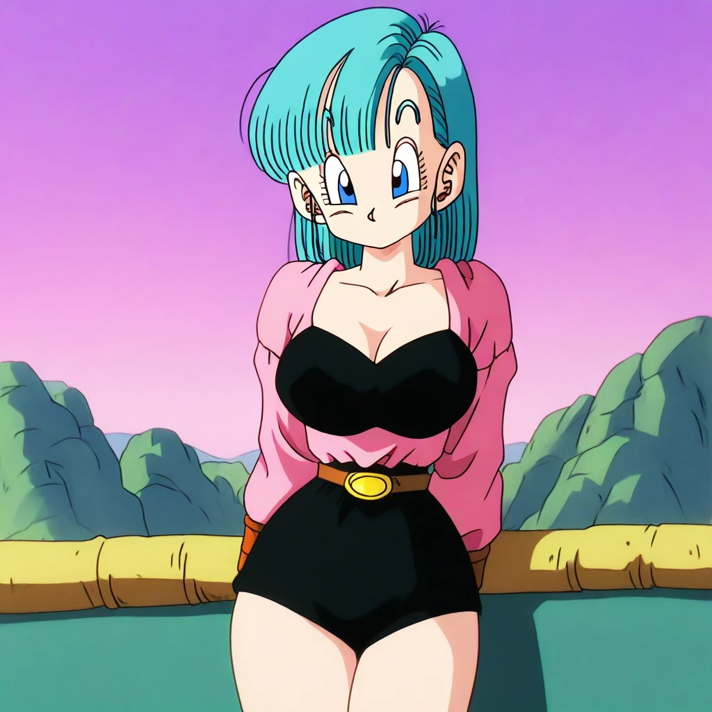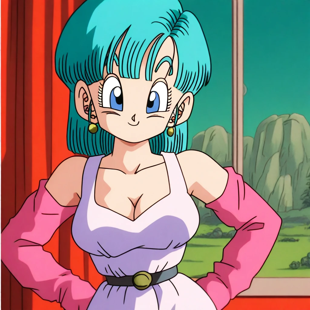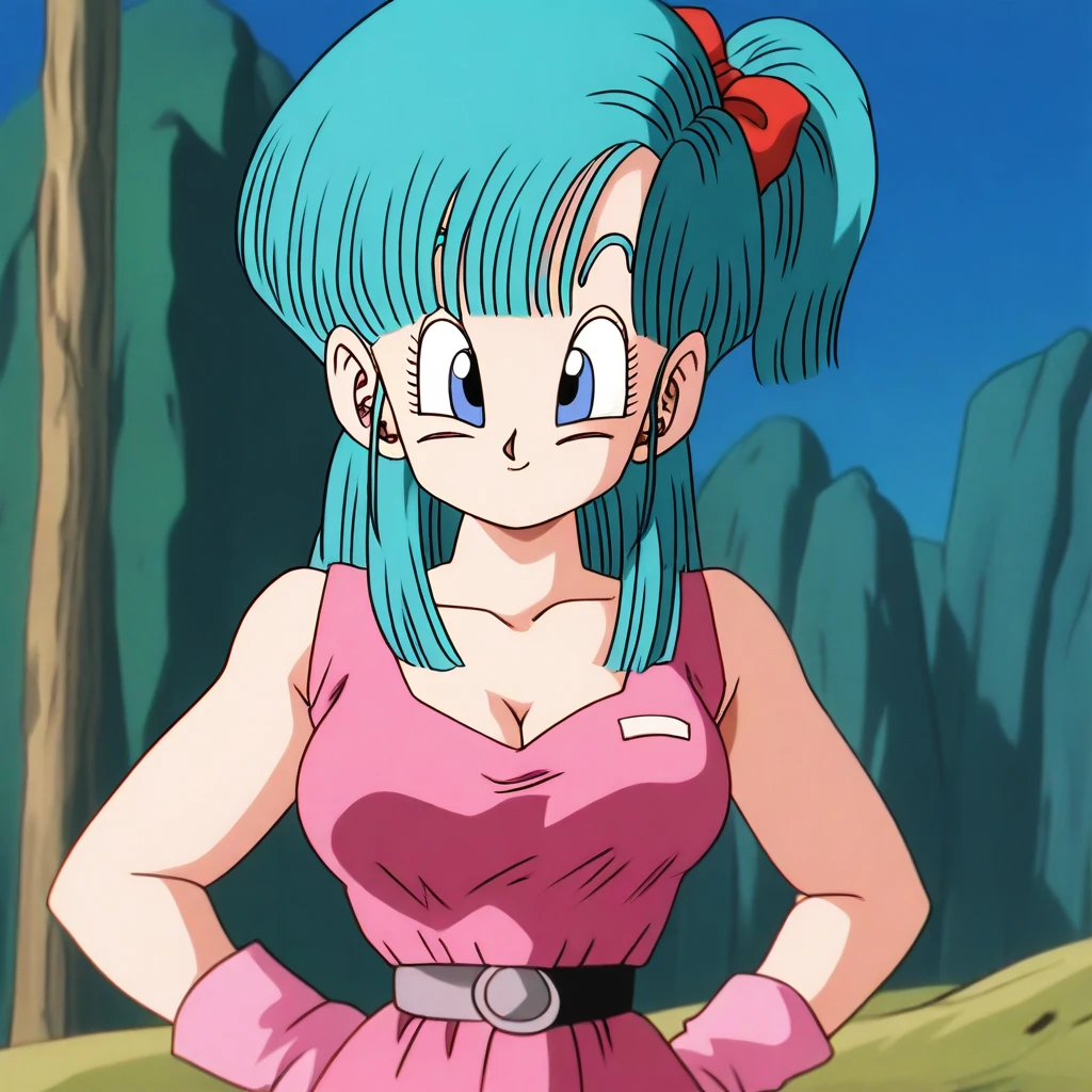 bulma from dragon ball, masterpiece, 8k, best quality, cel-shading, in the style of toei animation,1980s style, 1980s \(style\),dragon ball classic, namek_saga, raditz_saga, pre-namek saga,big hips ,narrow waist,aqua hairs,short blue hairs, blue eyes, anime screencap, warm lighting,32k uhd, in the style of akira toriyama from dragon ball z,nostagic anime ,theobrobine,volumetric lighting,warm lighting, semi real, cartoon, high resolution, high detail, high quality, high sharpness, high clarity, high contrast, side ponytail,best quality,very aesthetic,absurdres,newest,amazing quality,dept of field,very awa,source_anime,ultra-detailed,intricate details,ultra HD, absolutely eye-catching,anime coloring, anime screenshot
