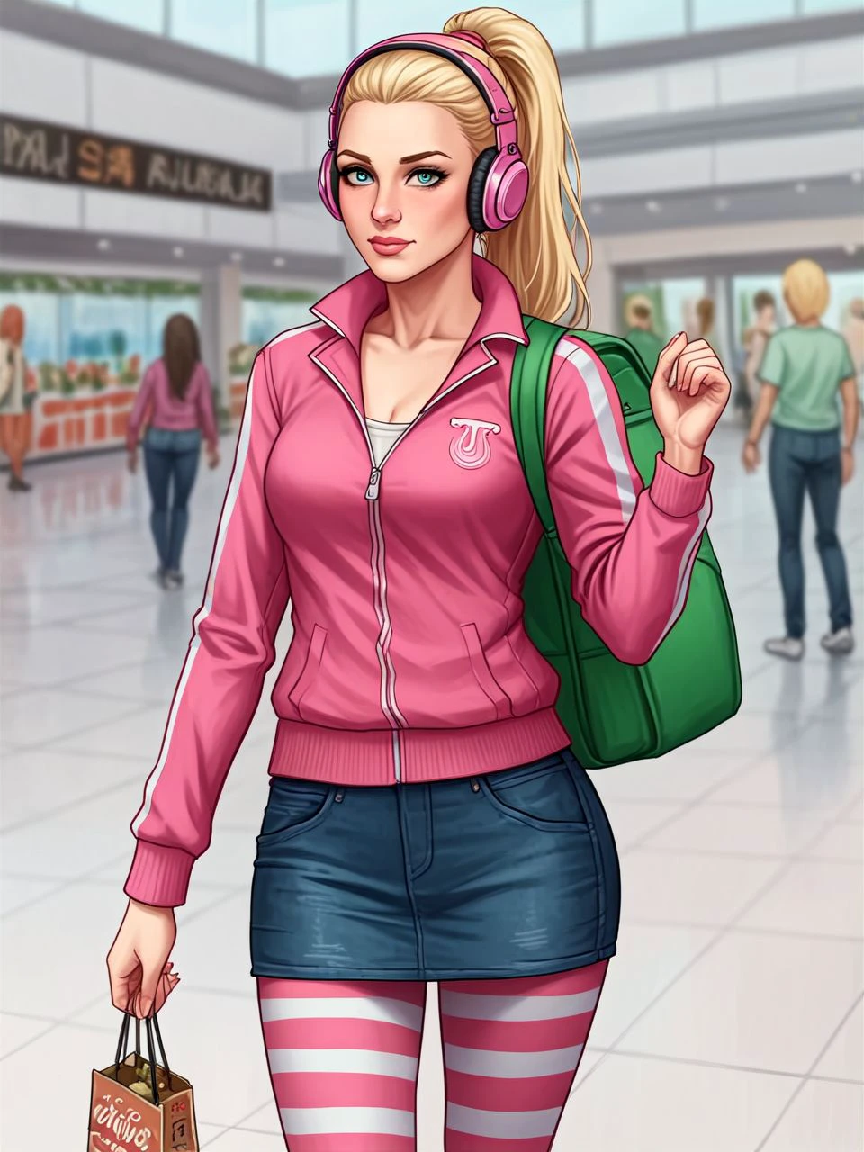 helper tags: blonde hair, black highlights, medium-length hair, light blue eyes, eyeshadow, lip gloss