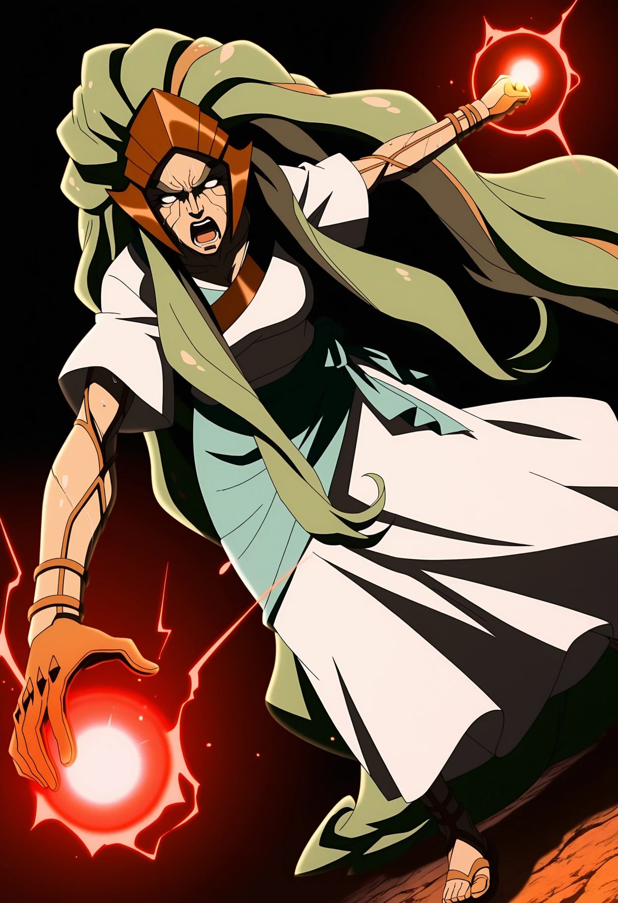 1girl, gaia, mature female, goddess, green hair, crown, no humans, absurdly long hair, , white eyes, no pupils, colored skin
