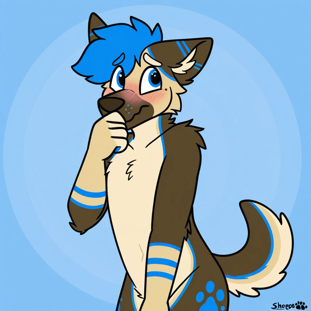 hepgoesblep, blue eyes, blue hair, furry male, male, 1boy, solo