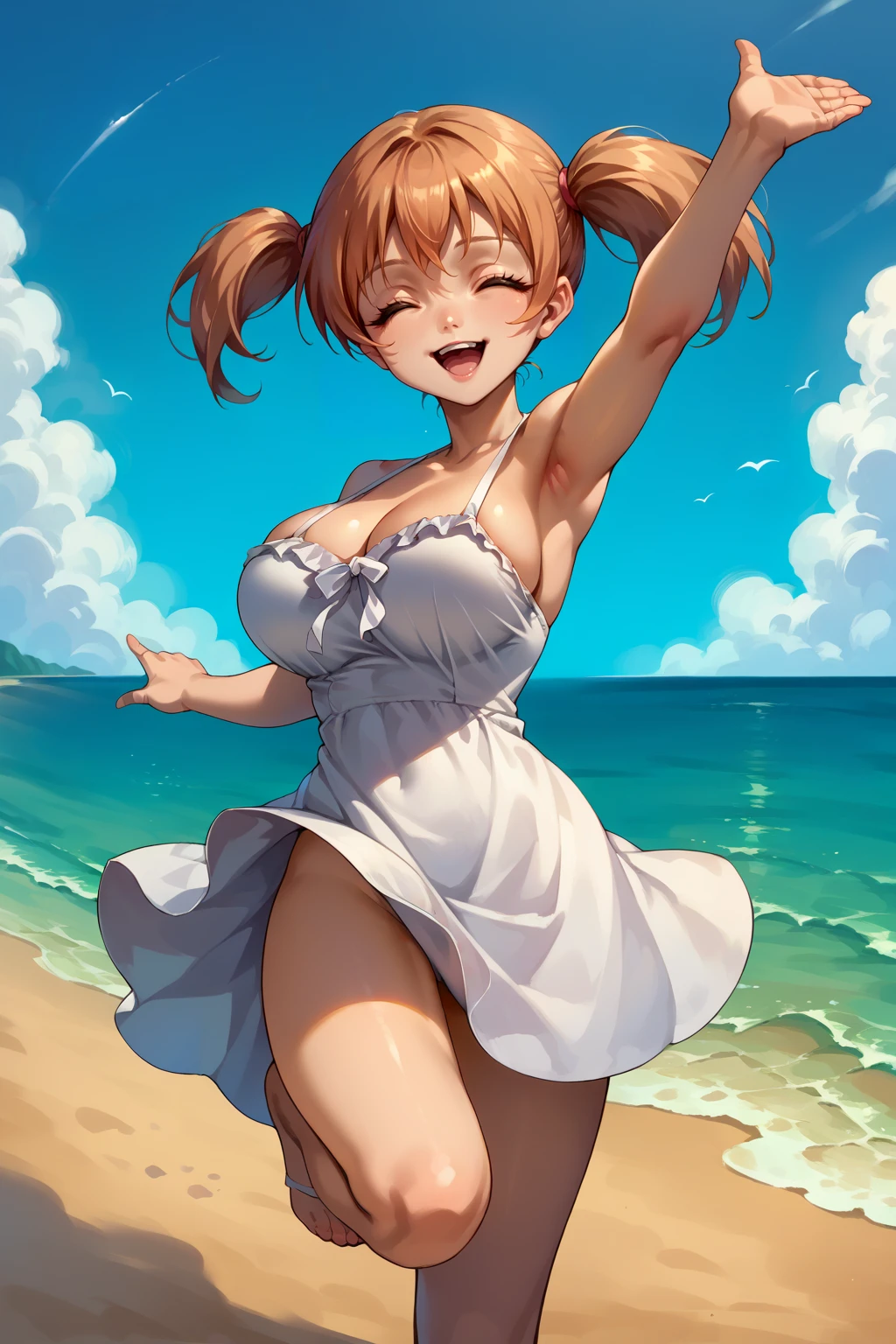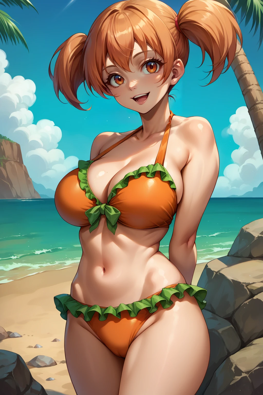 • Outfit 2 : twintails, frilled bikini, orange bikini