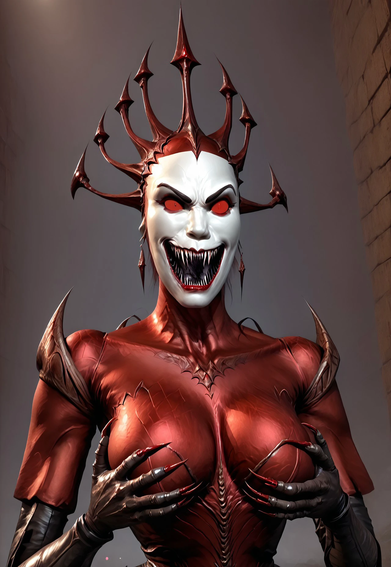 Angry: red eyes, open mouth, sharp teeth