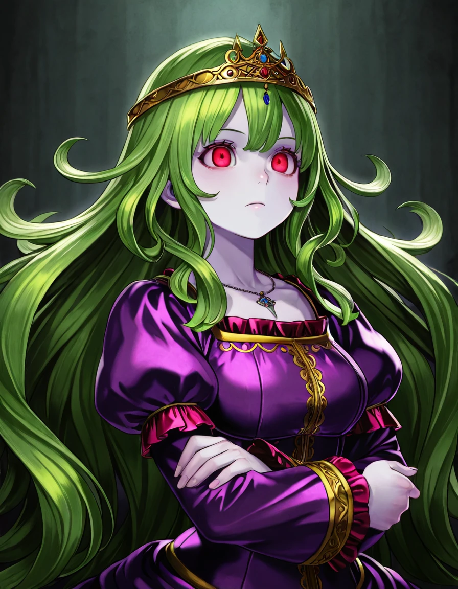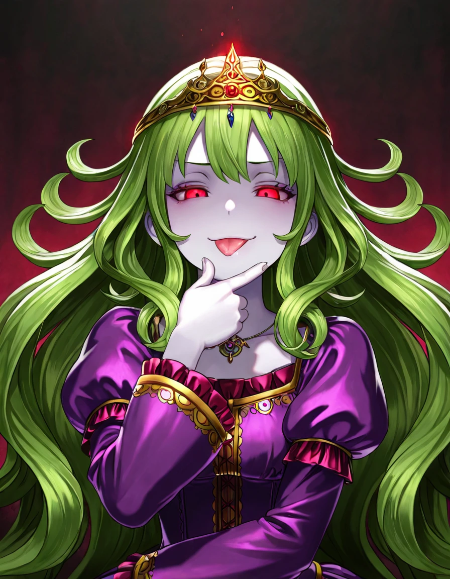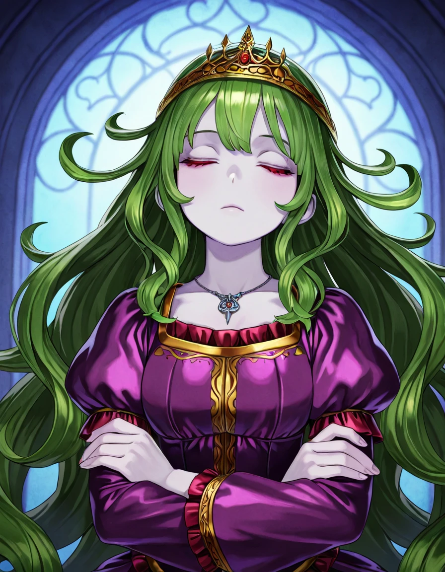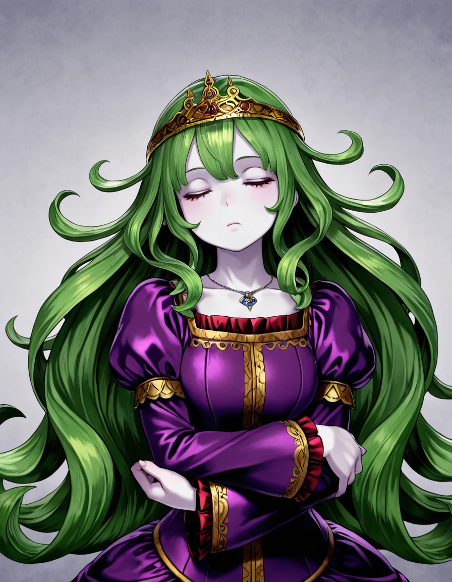 👗 Costume Tags: long sleeves, dress, jewelry, necklace, purple dress, tiara