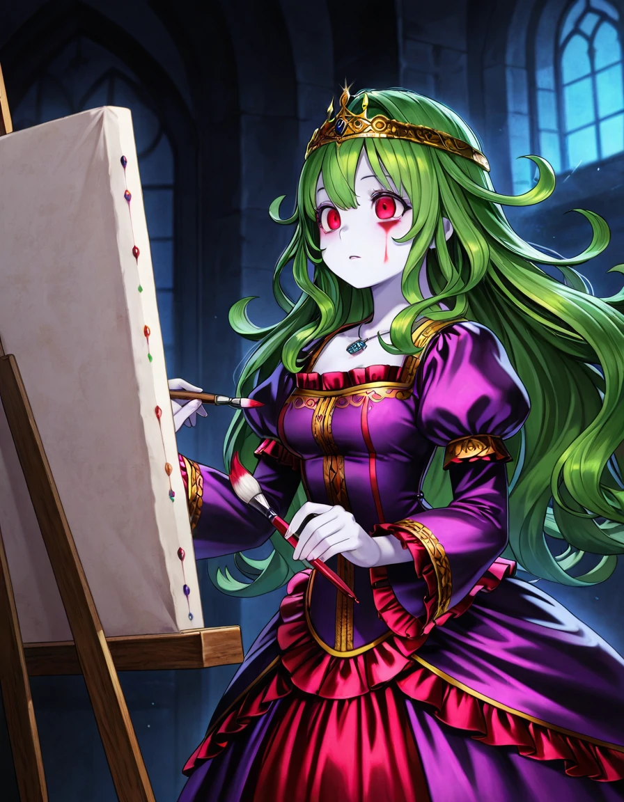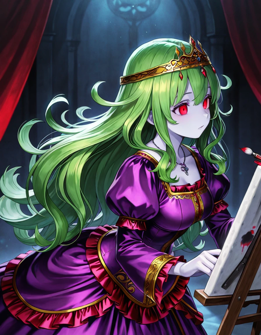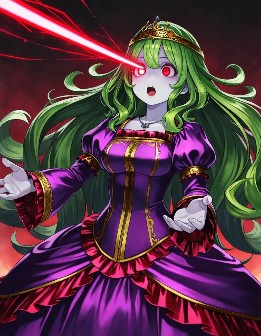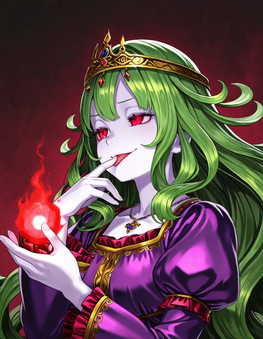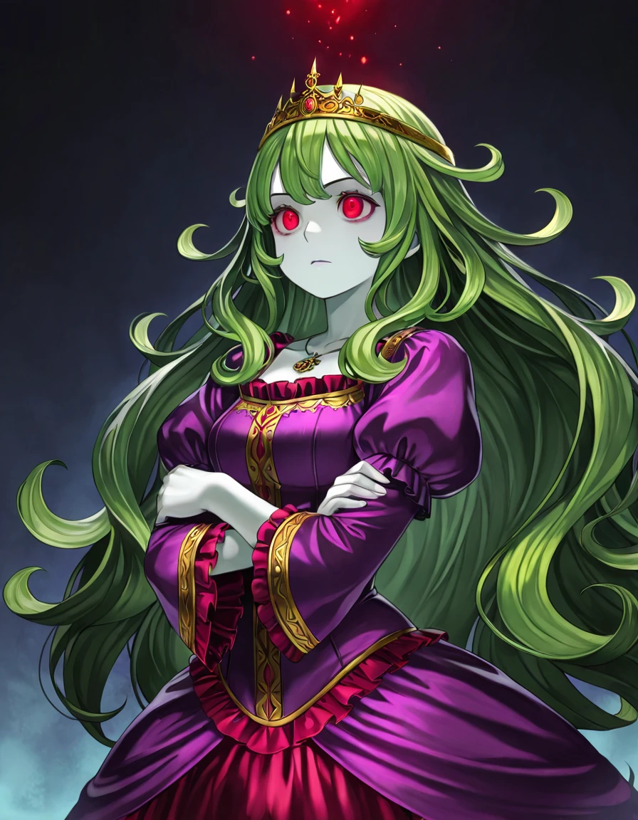 👗 Costume Tags: long sleeves, dress, jewelry, necklace, purple dress, tiara