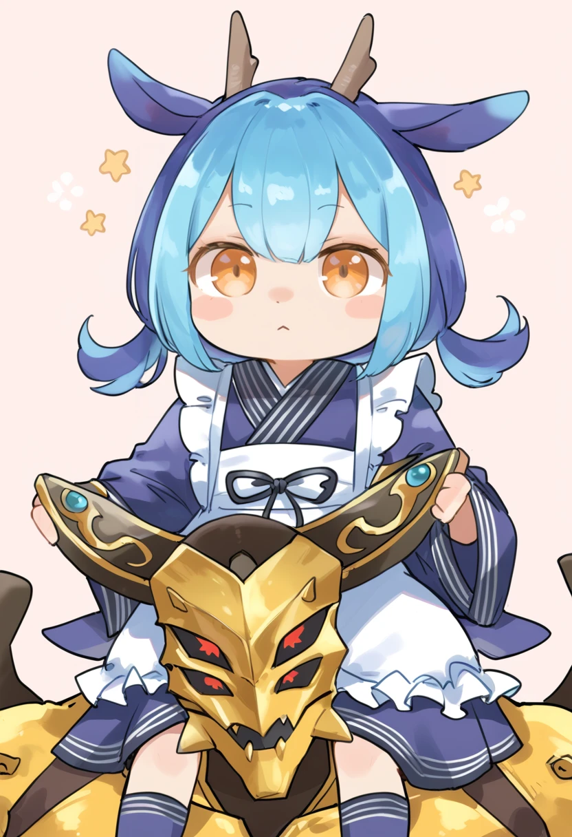 Tags (clothes): blue maid outfit, blue fingerless gloves, blue knee boots,