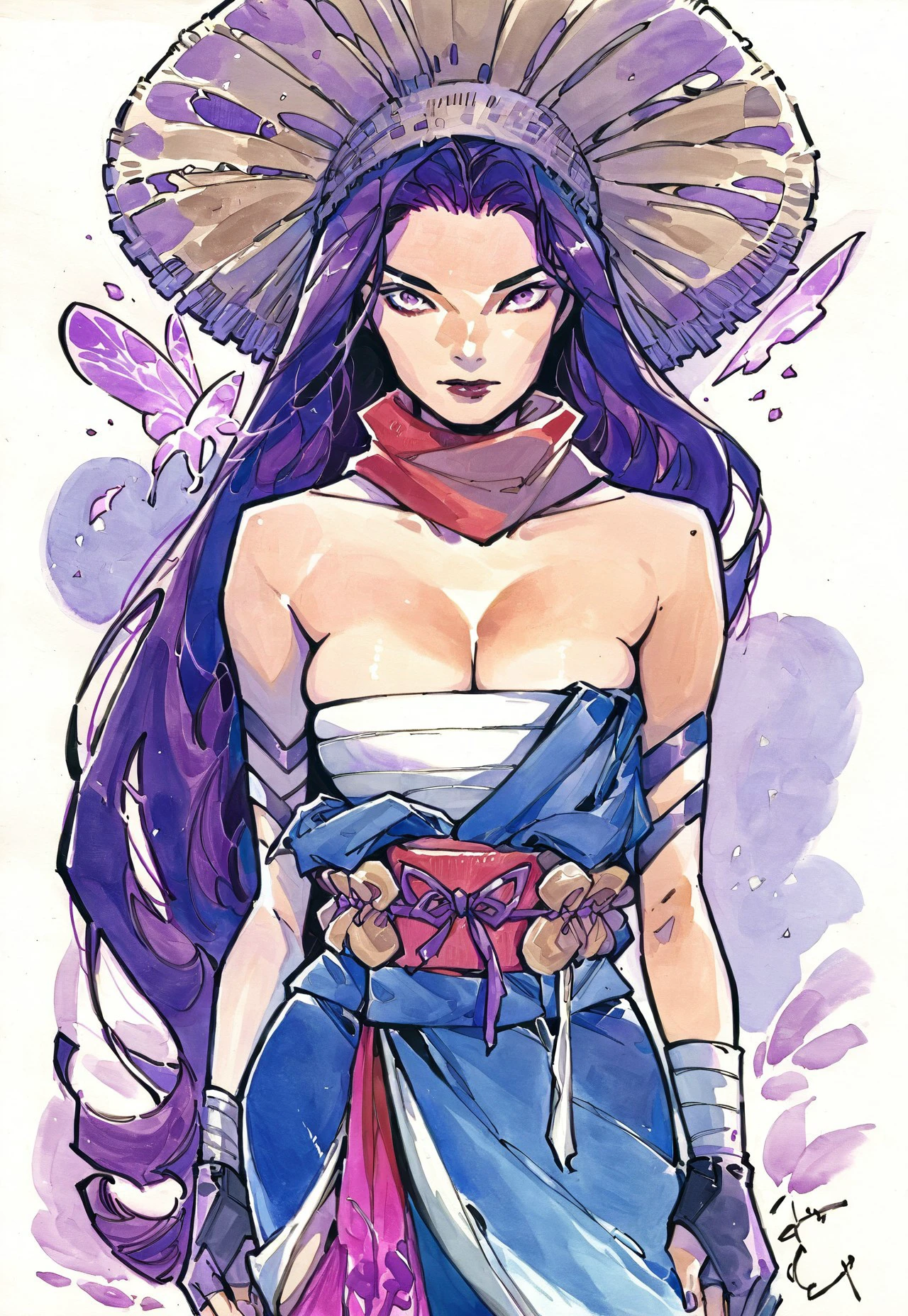 sailocke, blue eyes, gloves, ponytail, scarf, sarashi, gloves