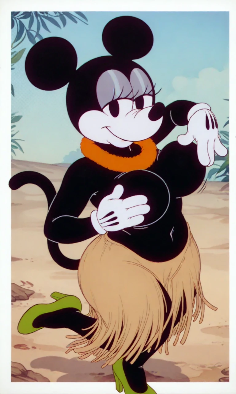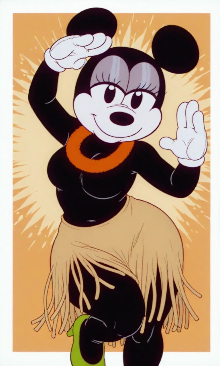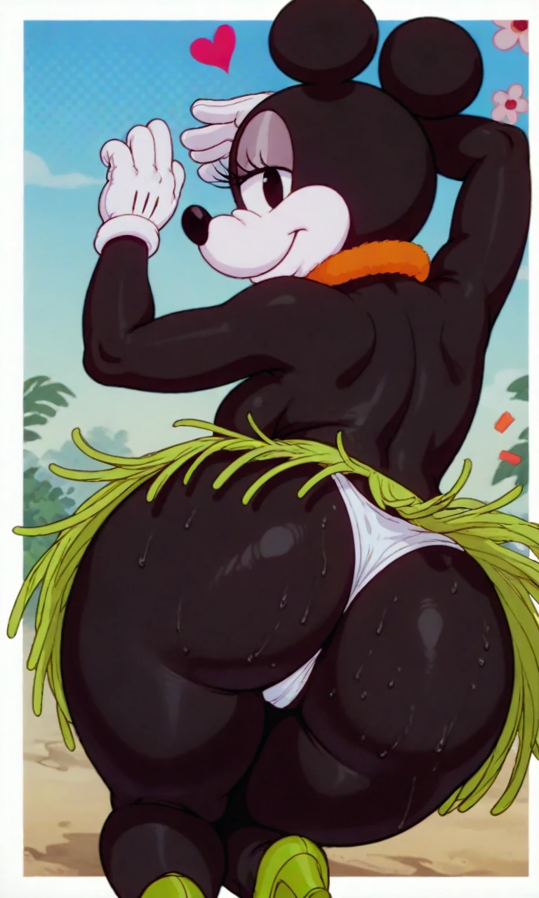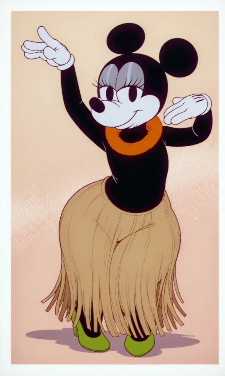 Tags: hawai_minnie, black eyes, black ear, black body, white face, black torso, white gloves, green heels, grass skirt, red floral collar neck