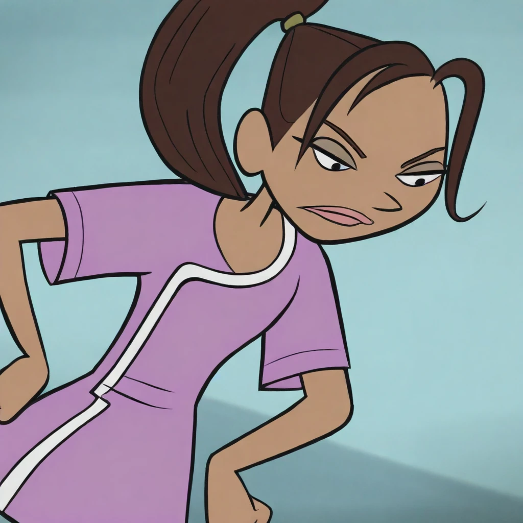 Probably a good prompt: 1girl, dark-skinned female, brown hair, ponytail, green hairtie, purple labcoat