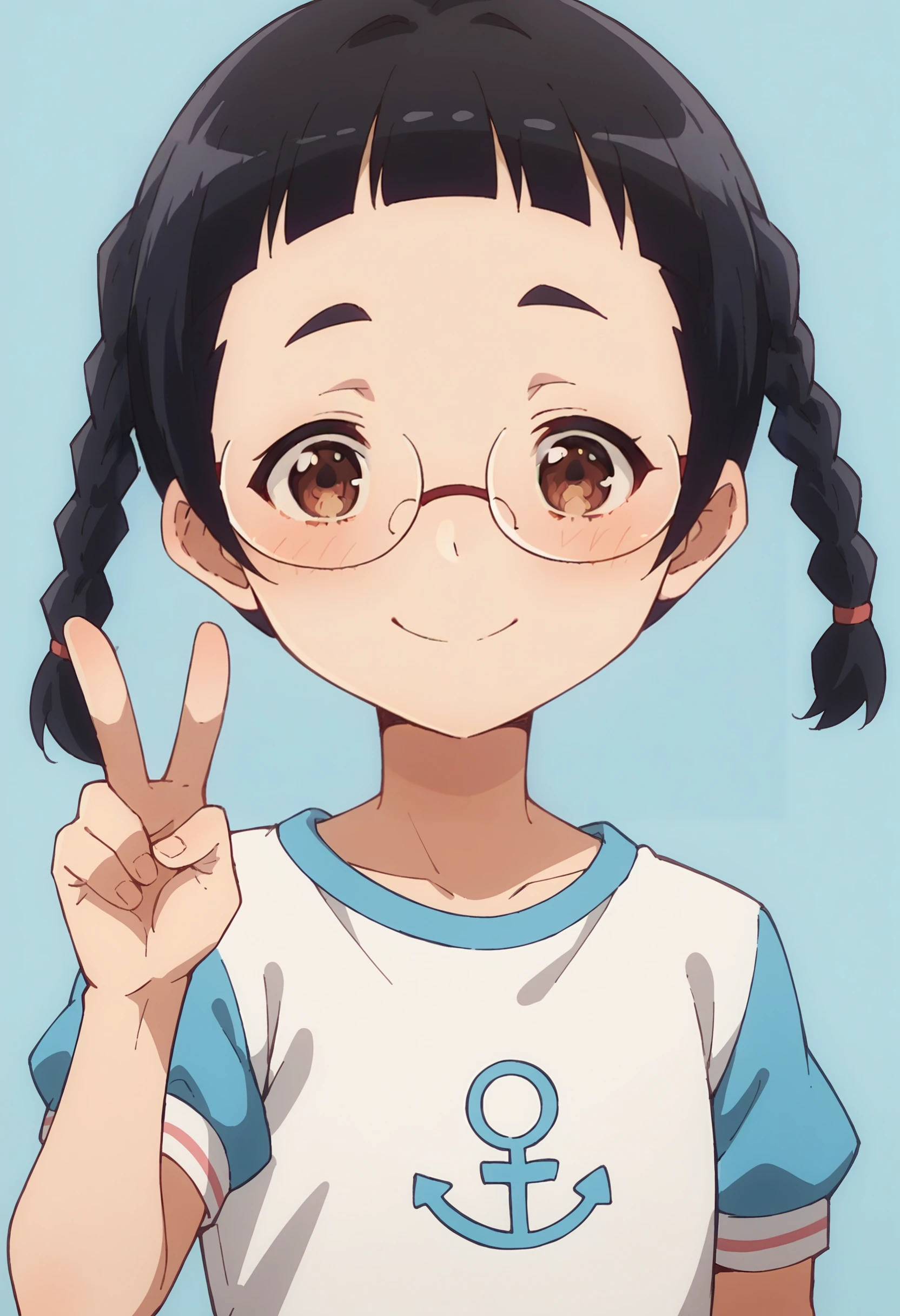 1girl short hair, twin braids, braid, black hair, brown eyes