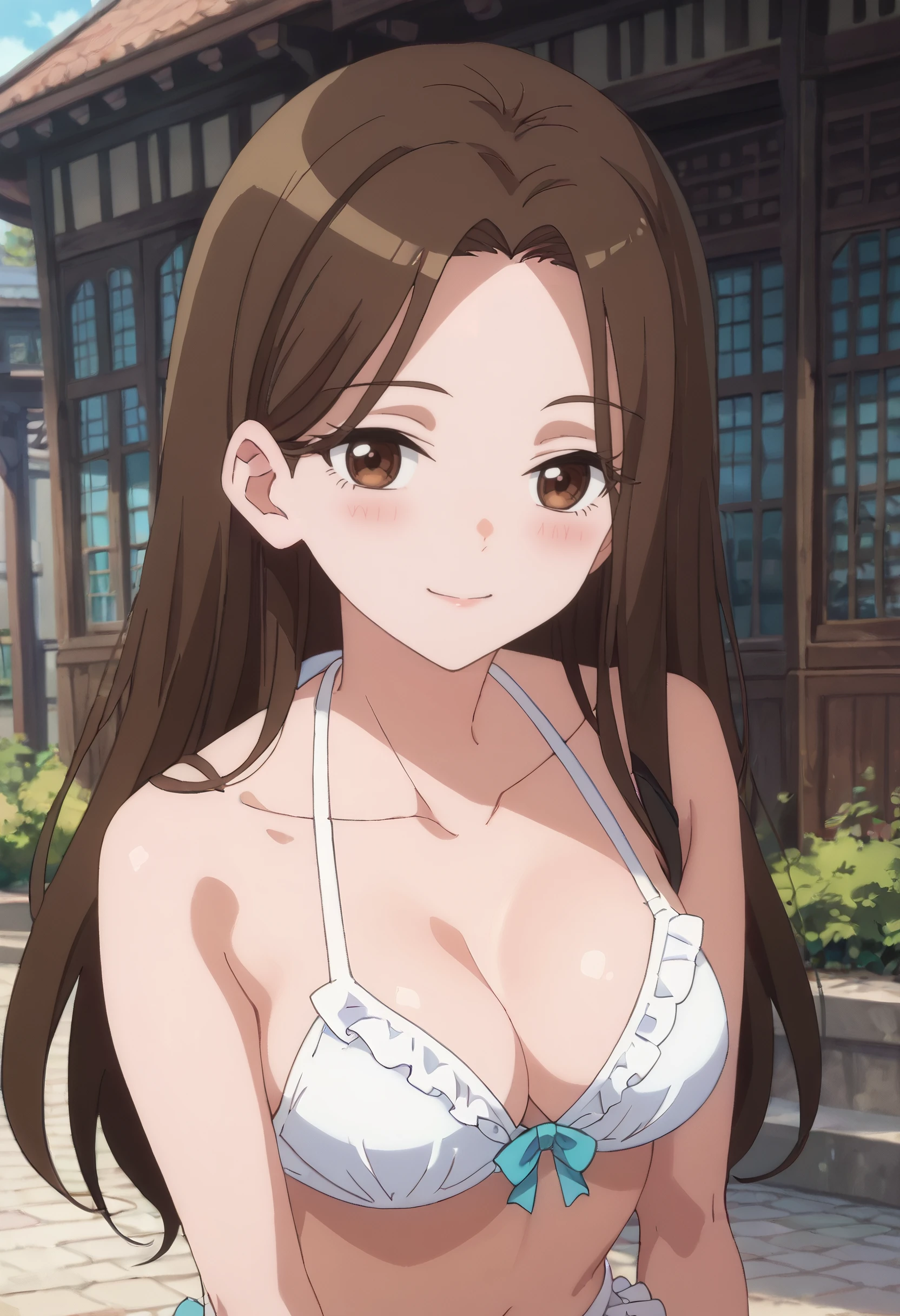 AMGJill, brown hair, long hair, bangs, brown eyes, parted bangs, eyebrows visible through hair,