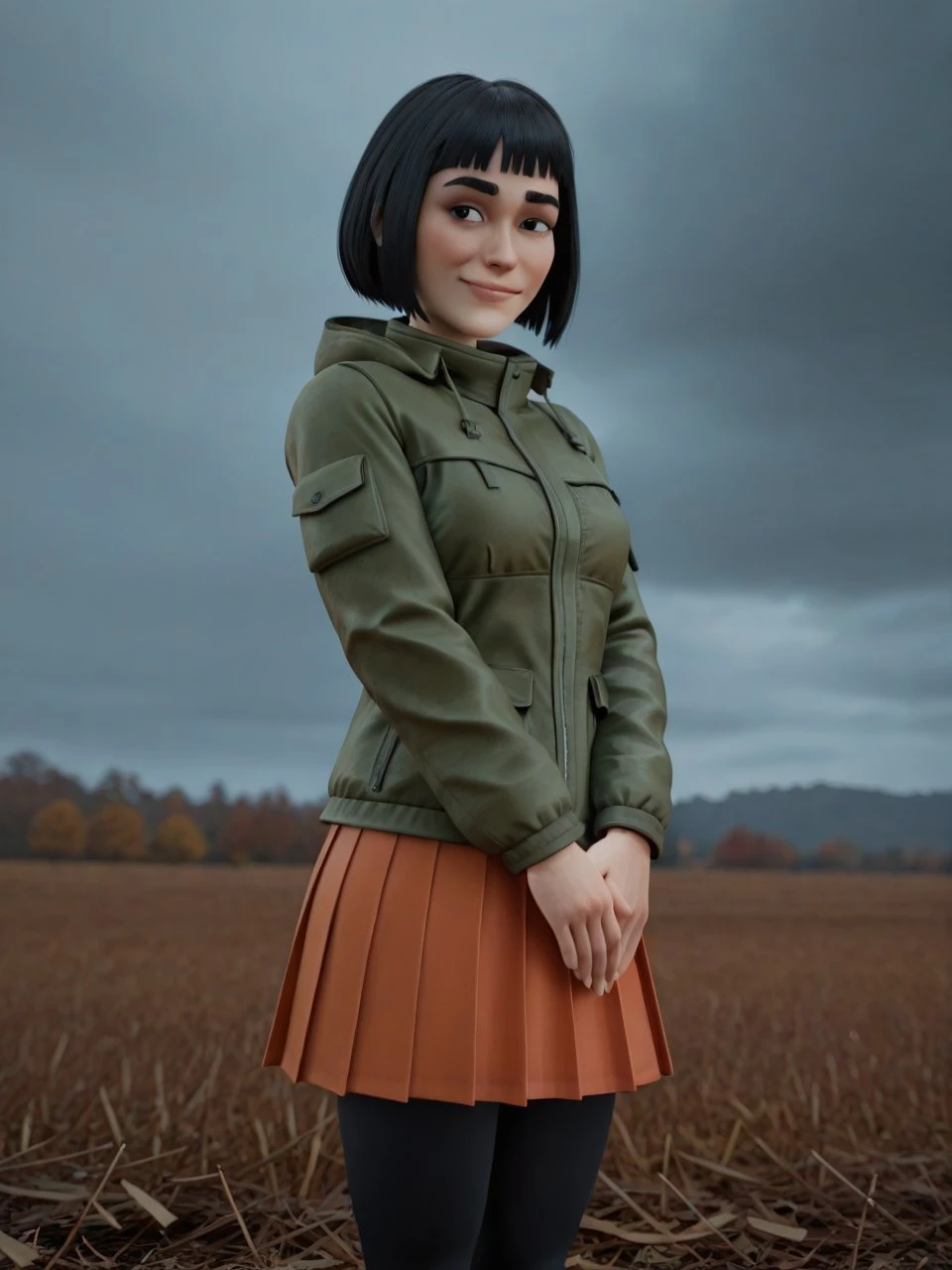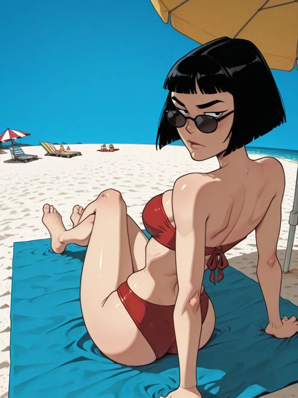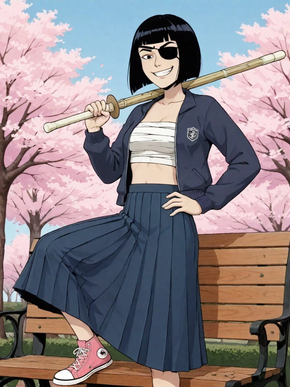helper tags: (black) bob cut, thick eyebrows, sanpaku