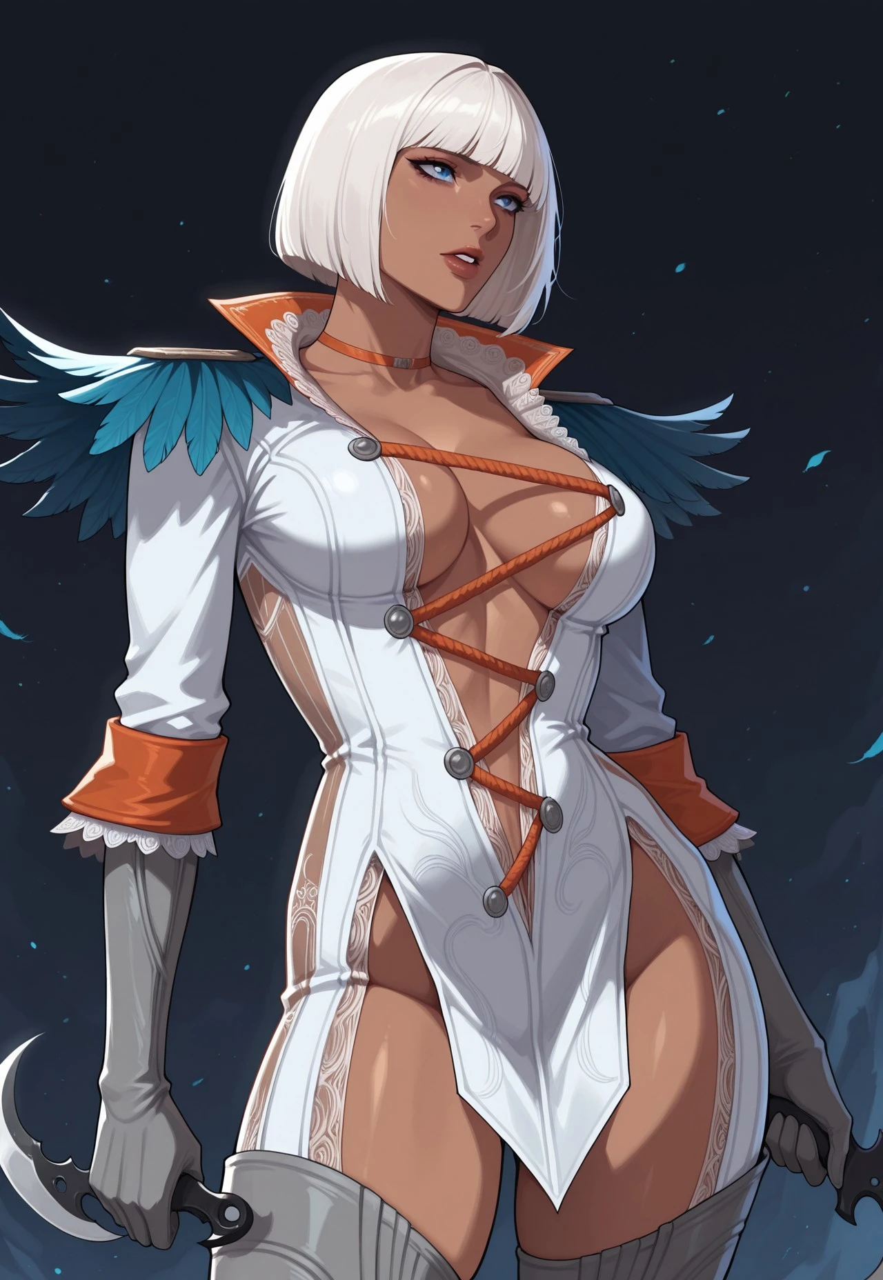 gloriadmc, white hair, bob cut, dark-skinned female,