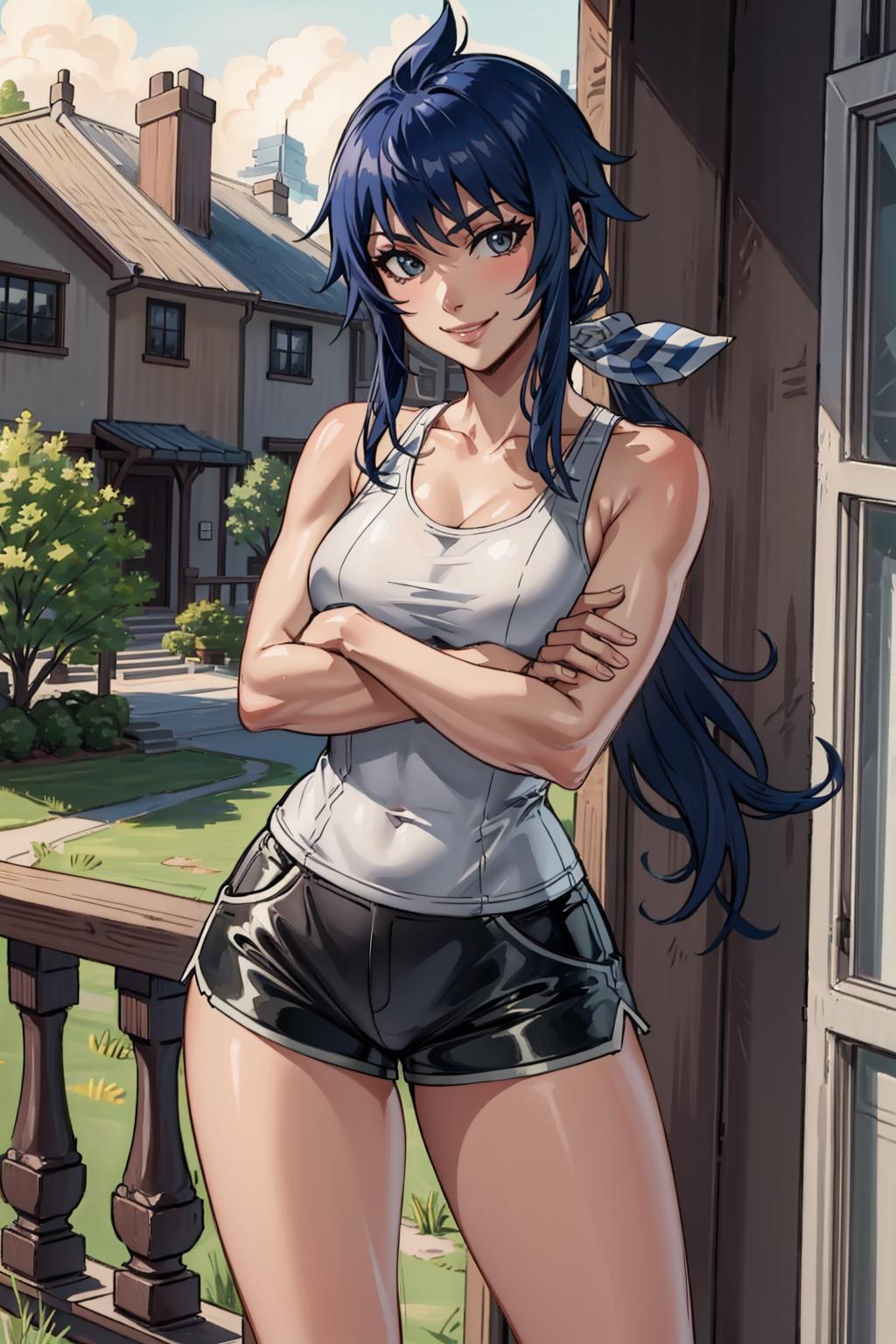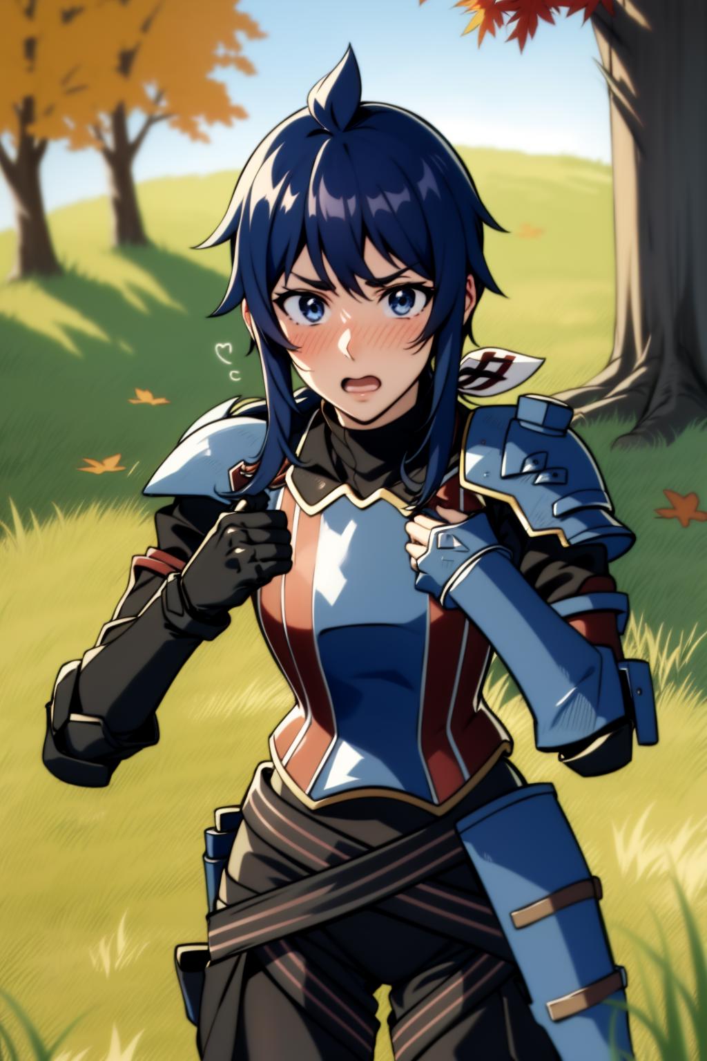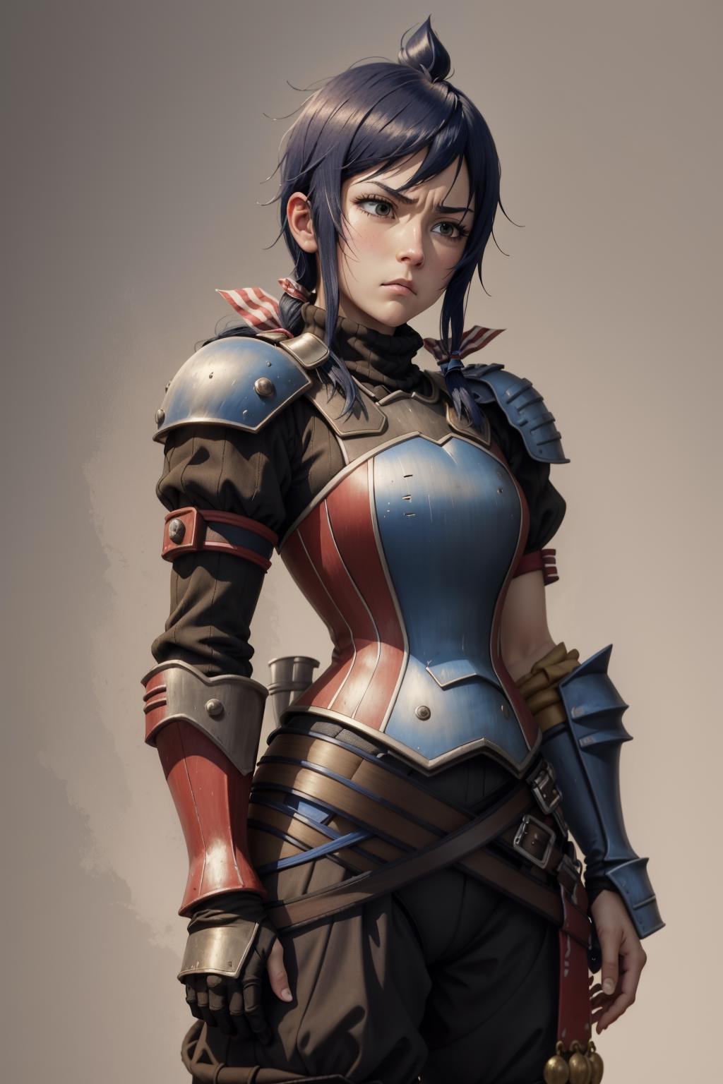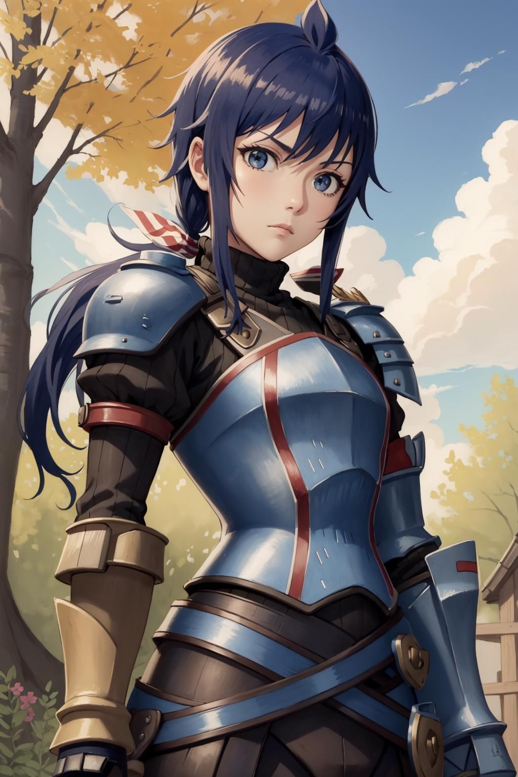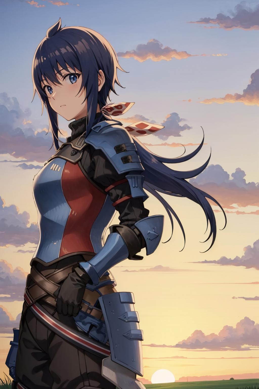 ribbon, black turtleneck sweater, gauntlet, armor, black gloves, black pants, boots