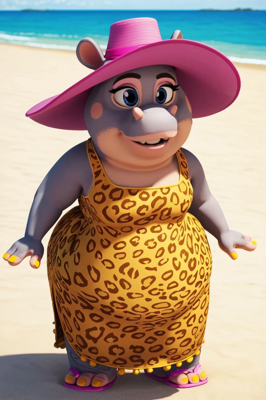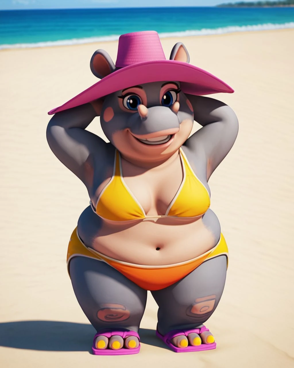 begemotiha, hippo, blue eyes, two-toned body, yellow nails, eyebrows,