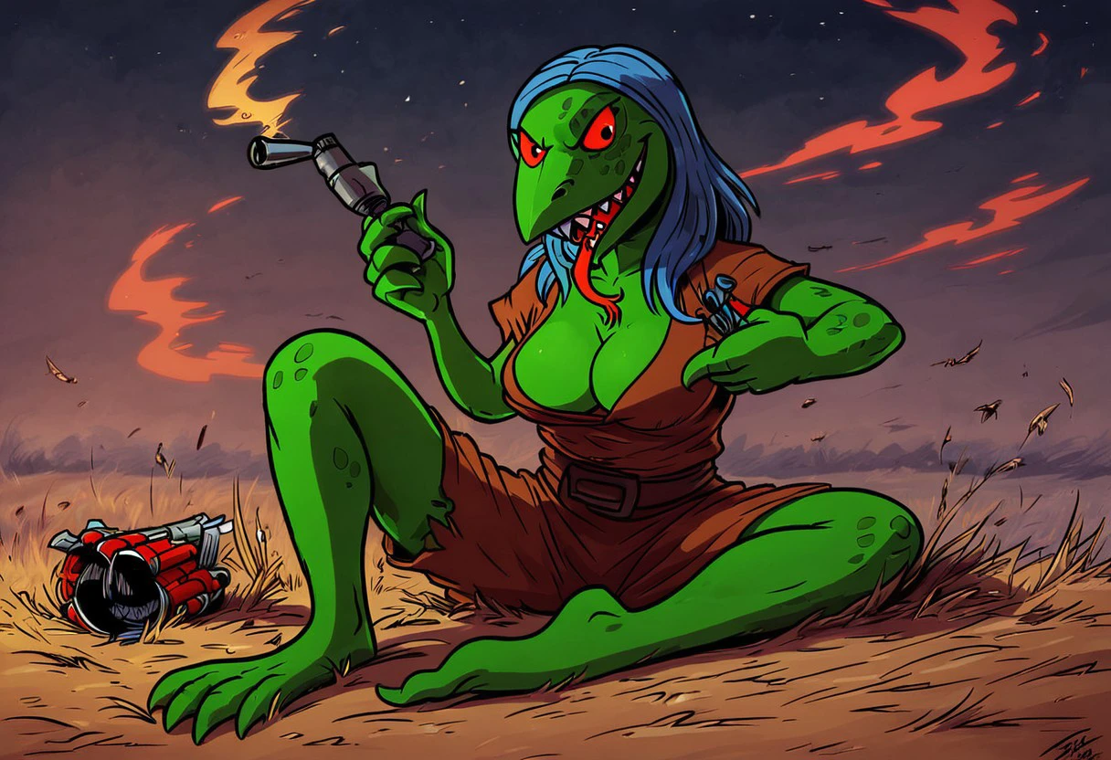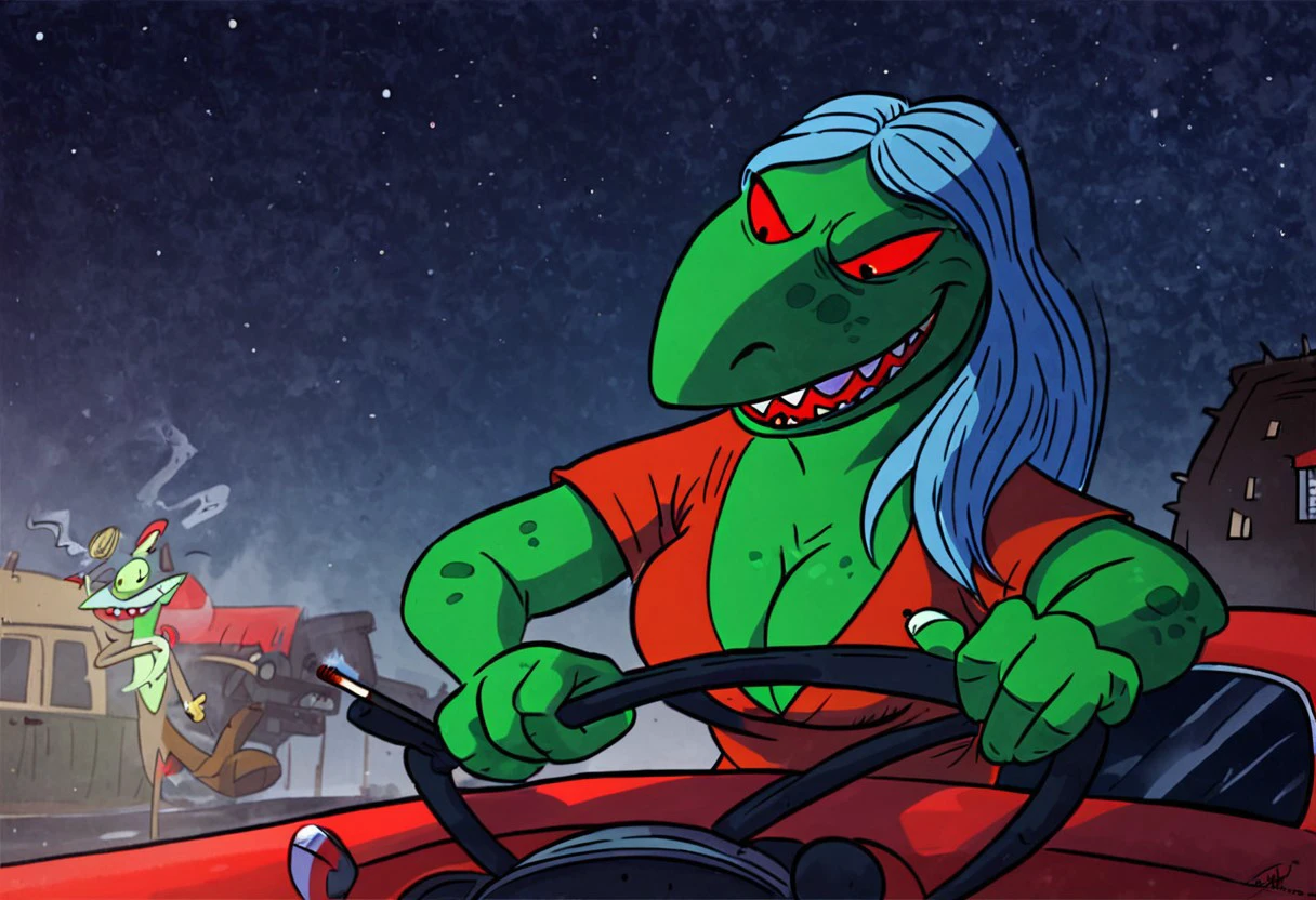 lizardleader, green skin, red sclera
