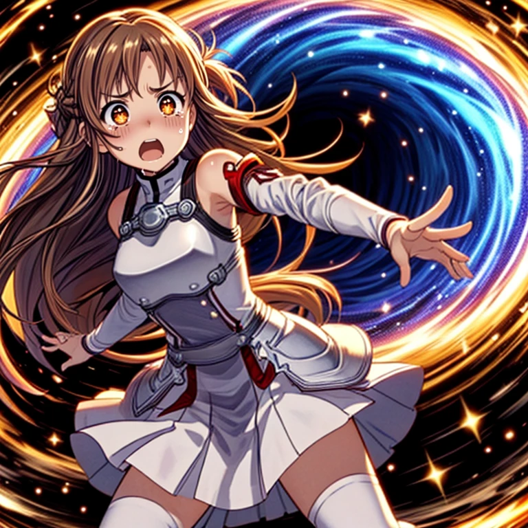 (((wormhole,galaxy,sparkle,glowing,reaching towards viewer, outstretched arm, outstretched hand, floating, flying, full body))),