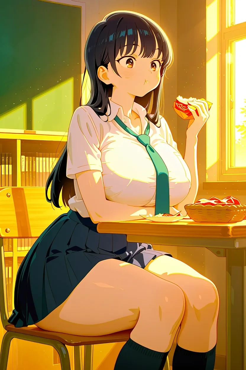1girl, Anna Yamada (The Dangers in My Heart), black hair, long hair, bangs, thick lips, glossy lips, brown eyes, tall, 8k, HD, High-resolution, excellent quality, ultimate masterpiece, no flaws, clean picture, superb detail