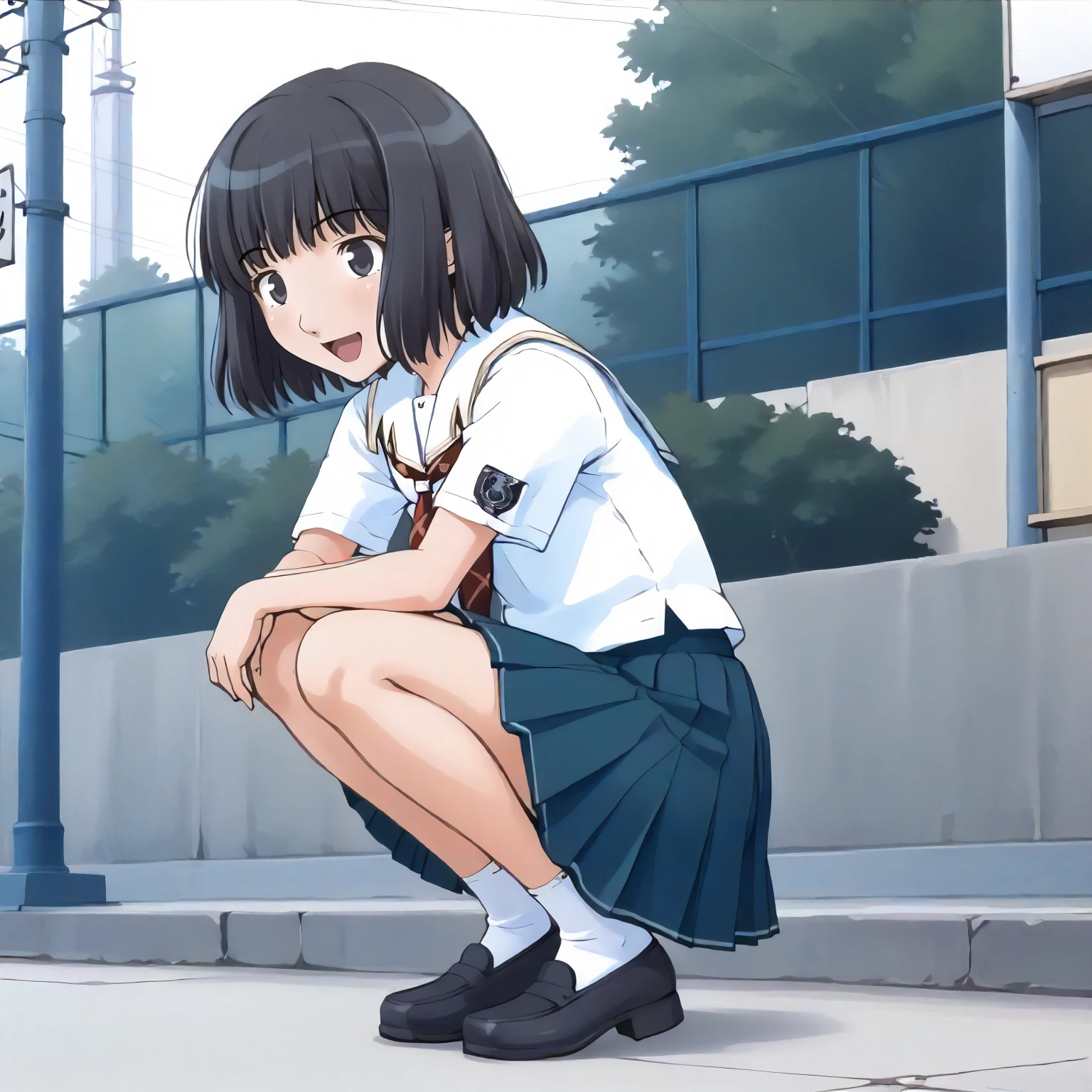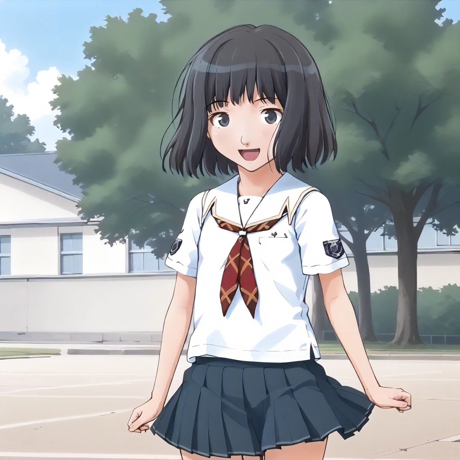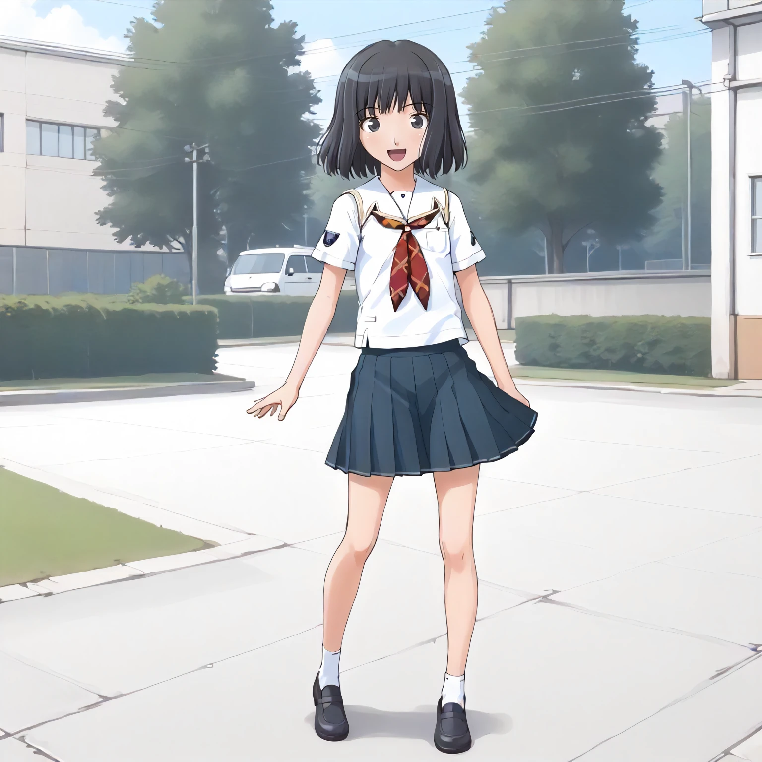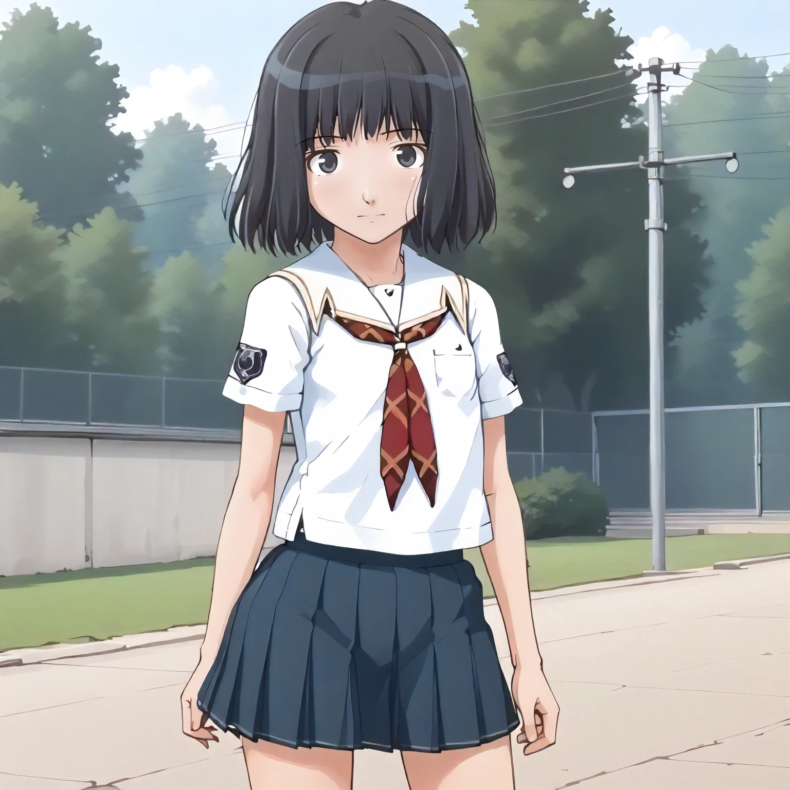 school_uniform,white shirt,neckerchief,short_sleeves, pleated_skirt,