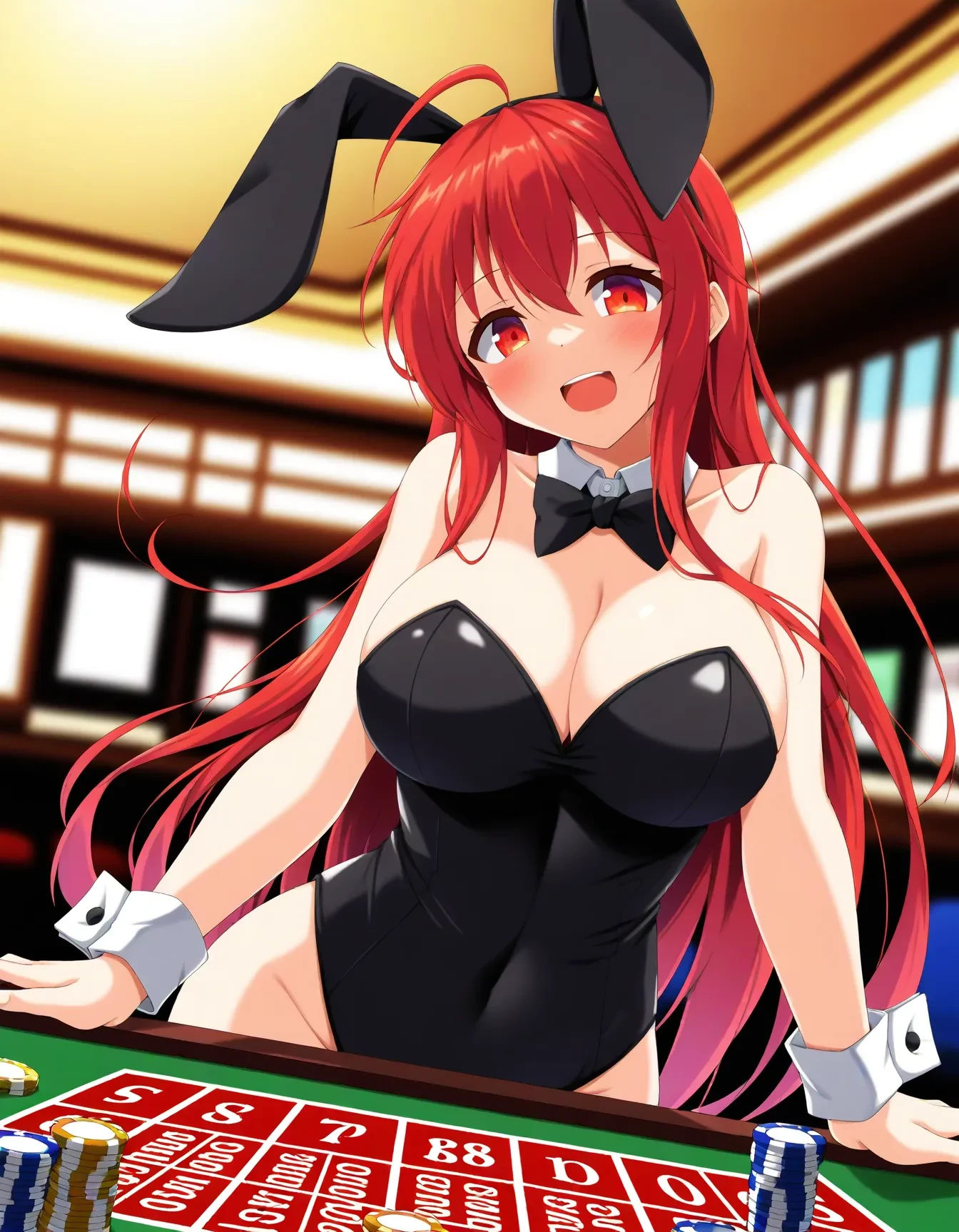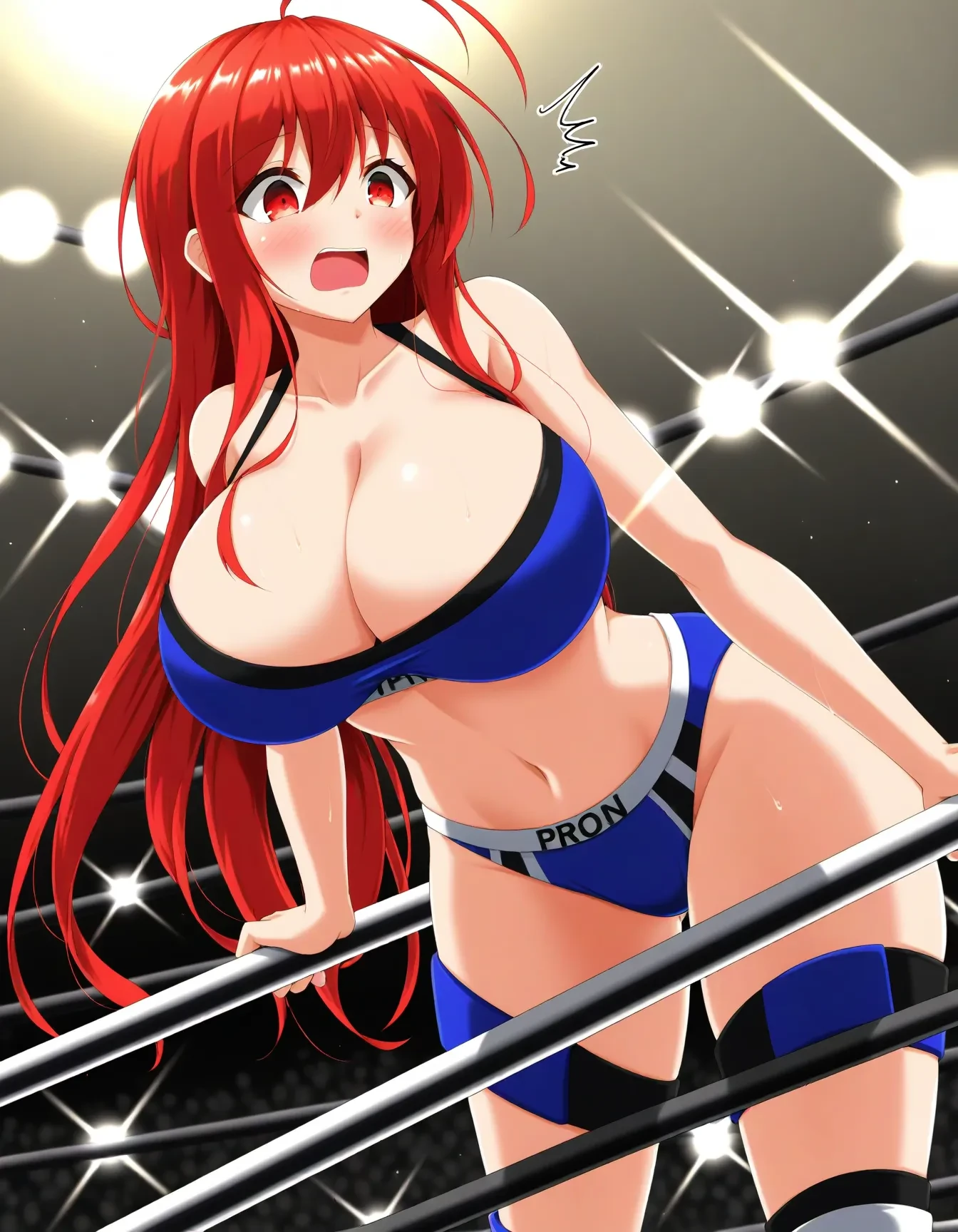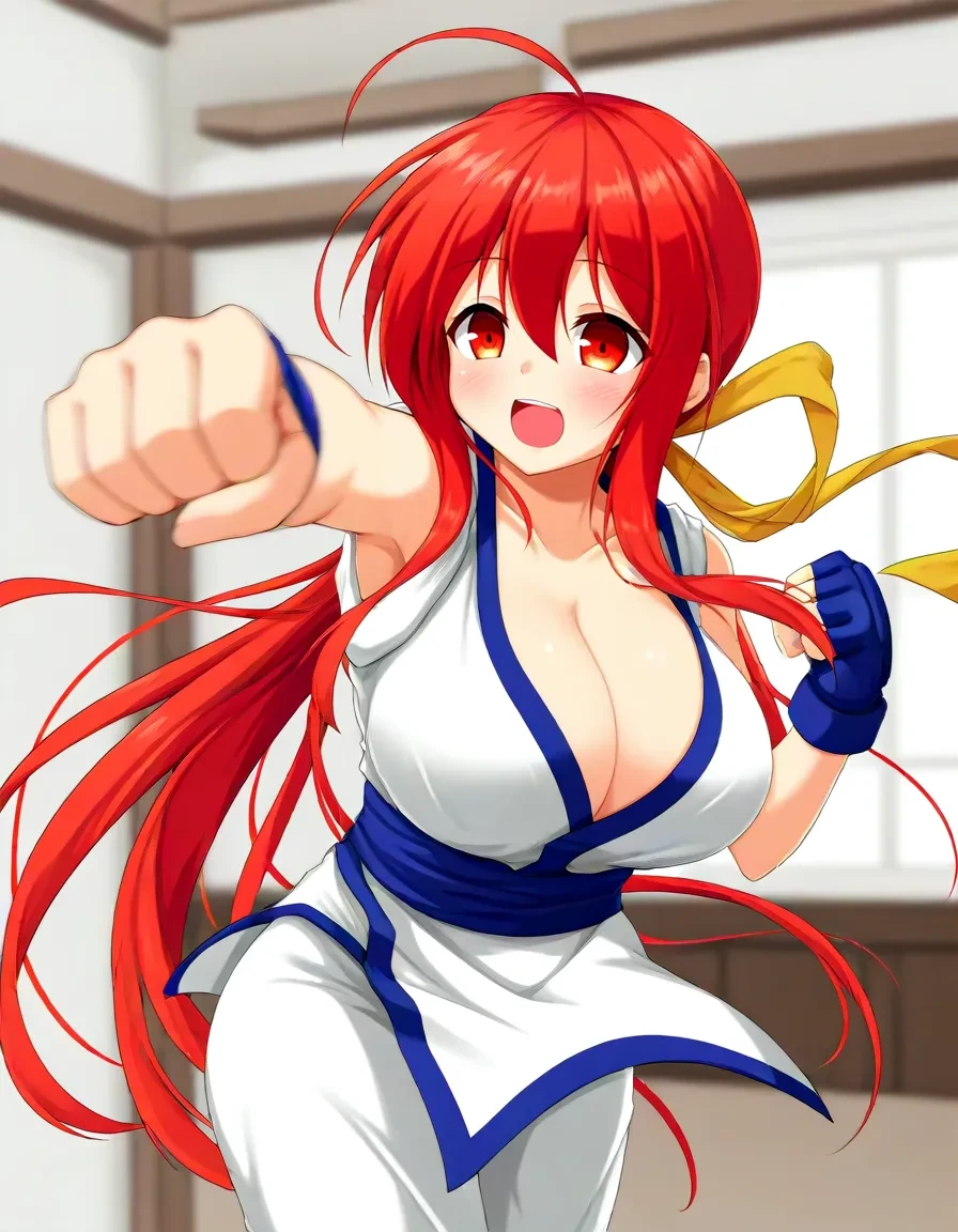 AKFG01, solo, long hair, breasts, large breasts, gloves, ribbon, cleavage, very long hair, ponytail, fingerless gloves, dougi, hair ribbon