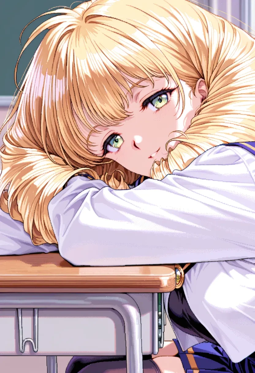 学生服のプロンプトは以下の通りですが、参考にできる画像が作中一枚しかなくOVAも参考に独自の解釈で学習用画像を作りLoRAにしてます。頑張って見ましたが出力が不安定でスカーフがでたり形状が普通のセーラー服になっちゃったりします。