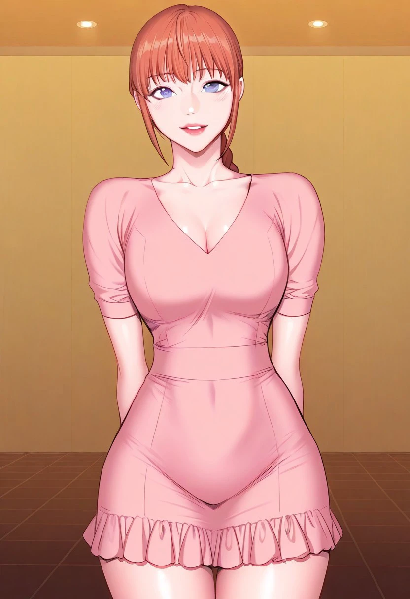 (( <lora:yeo-jeong:1> , yeo-jeong, thin waist, normal hips, beautiful skin, beautiful blue eyes, clear eyes, bright pupils, beautiful eyes, beautiful orange hair, braided low ponytail, hair ties, bangs, medium breasts, natural beauty, extraordinary beautiful woman, attractive woman, super sexy woman, lustful body, sexy woman with seductive obscene body, sensual body, voluptuous body, sexy beauty, no piercings, no piercing, ))