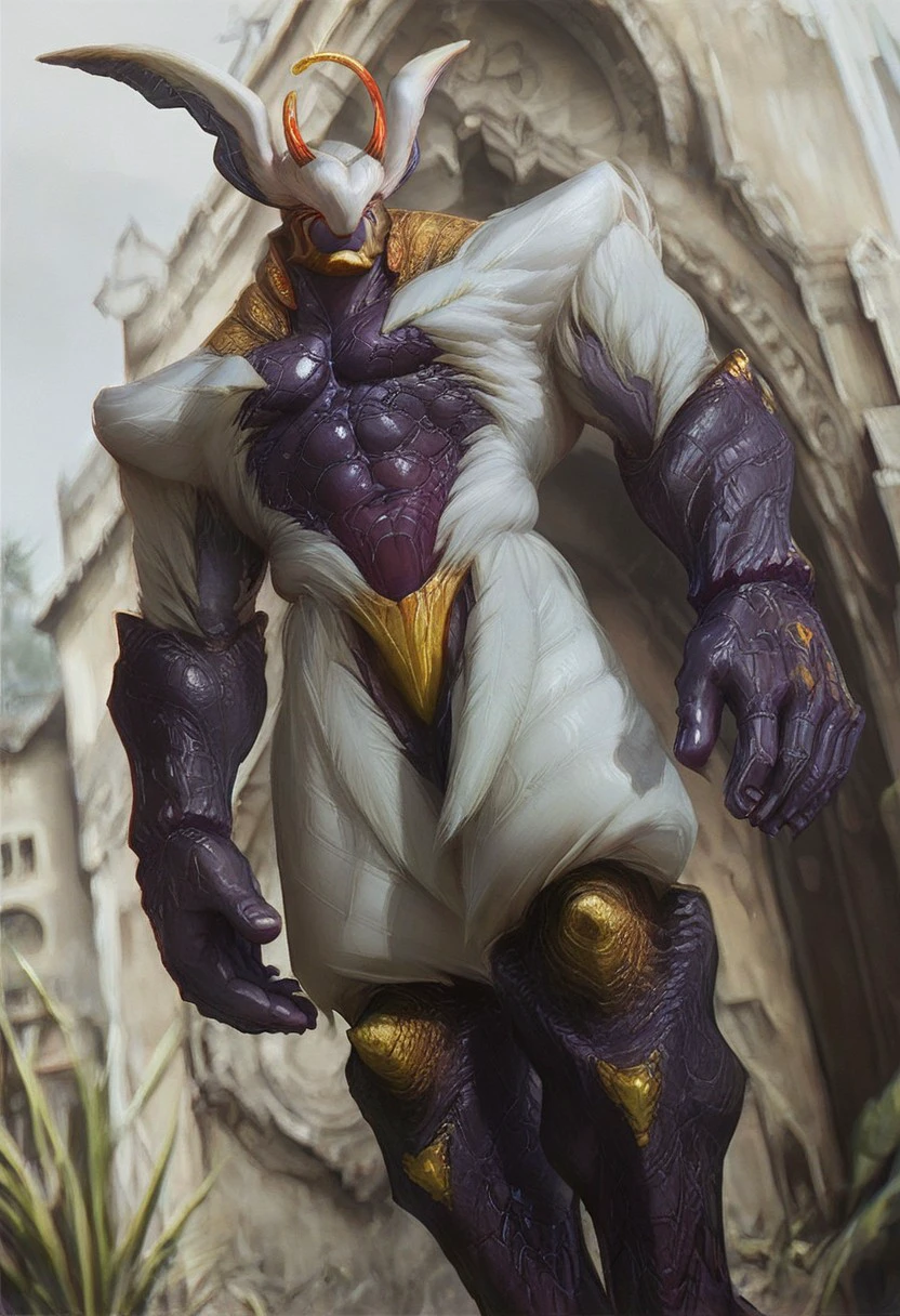 Credo’s Angel Form, Angel, Red eyes, white feathers, Wings, white wings, purple skin,