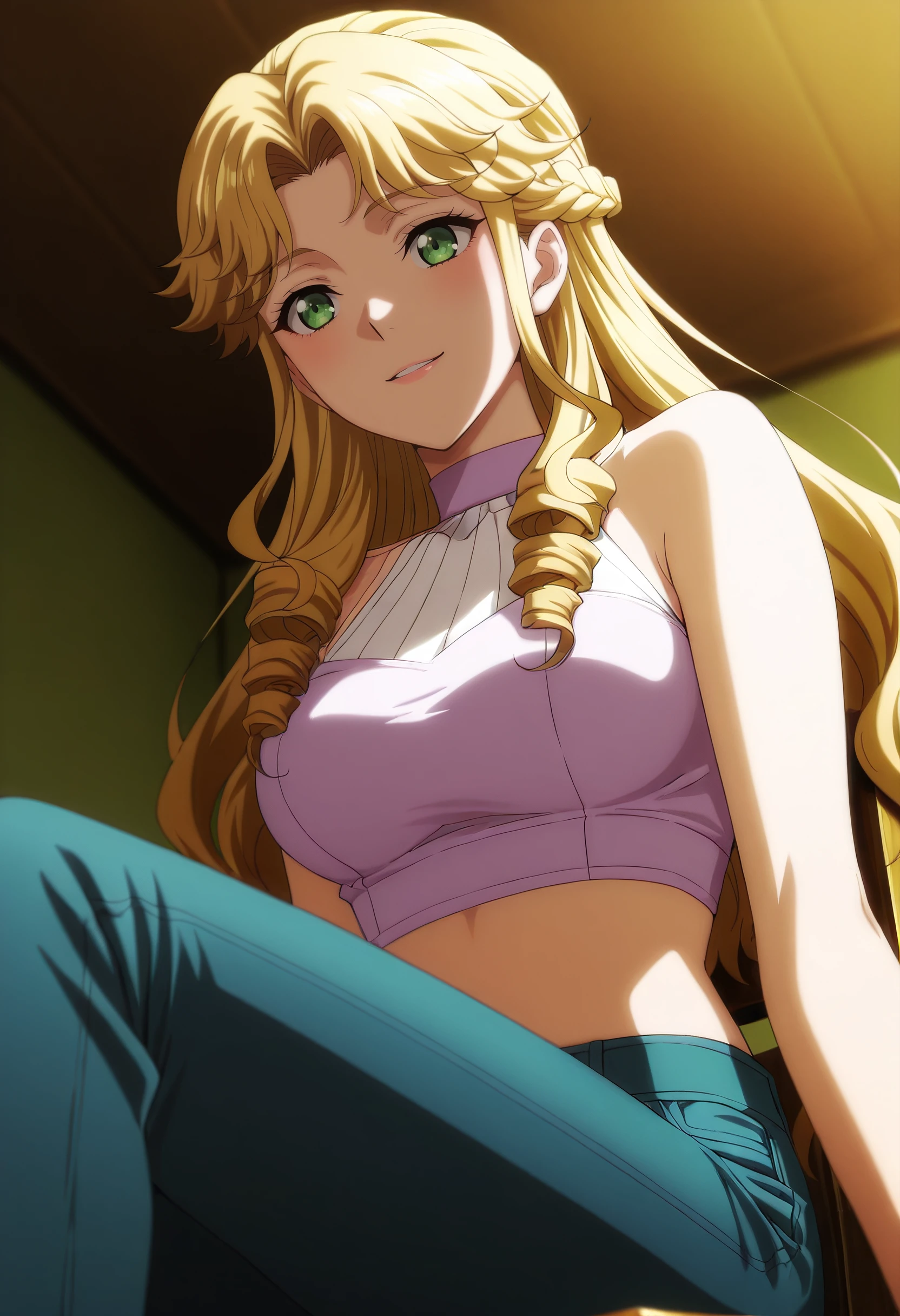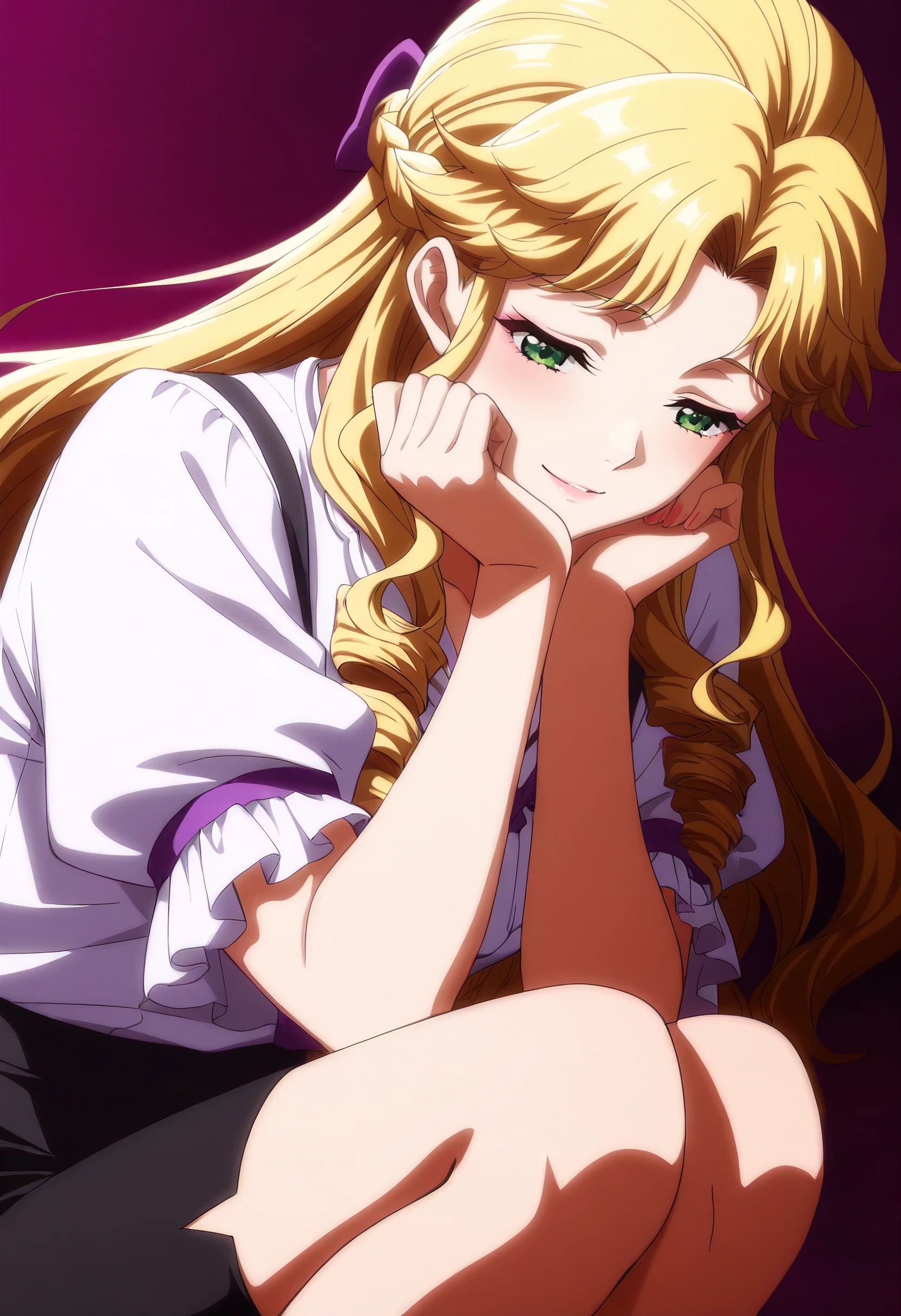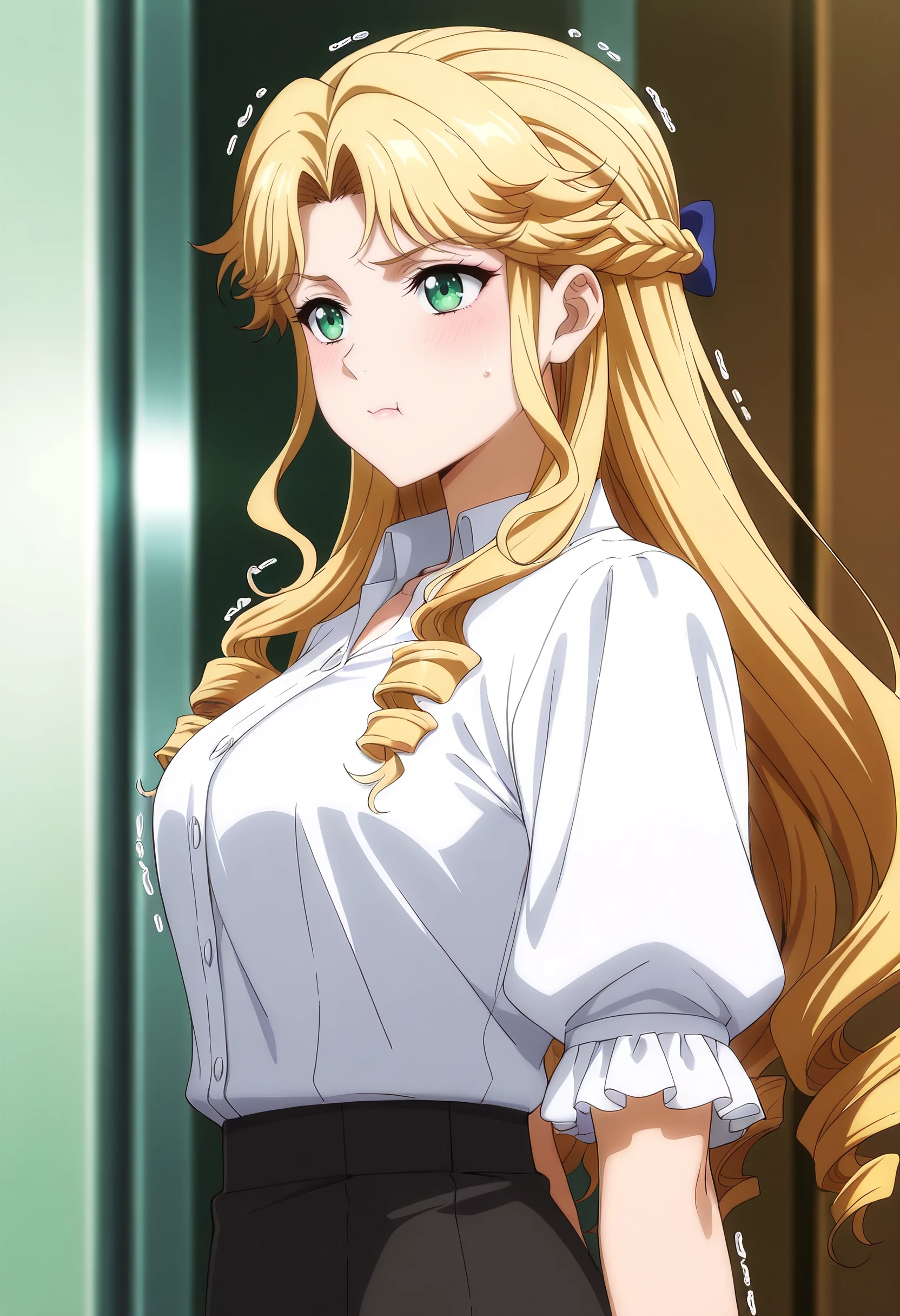 GZZAudrey, long hair, blonde hair, green eyes, braid, drill hair, drill sidelocks, parted bangs, sidelocks,