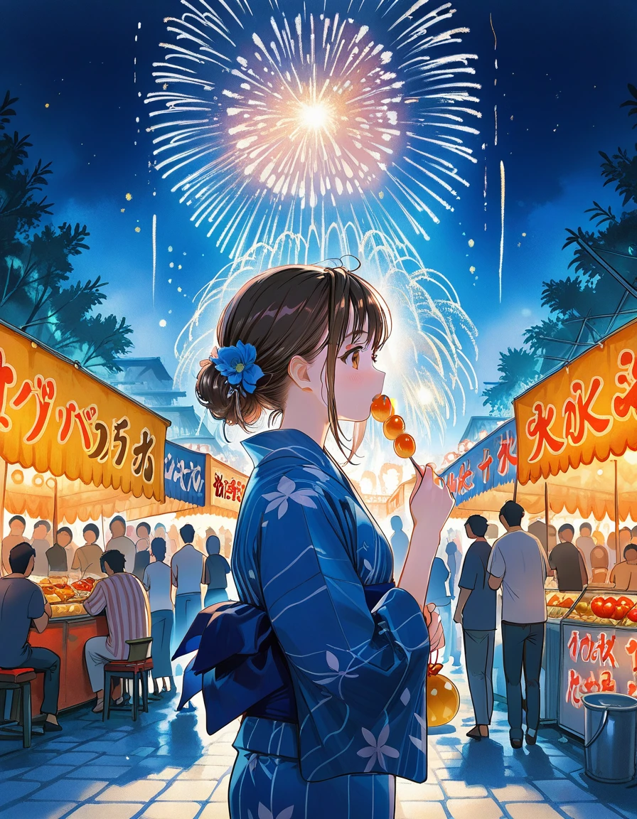 浴衣は手持ち花火LoRA以上に学習していますので、よりきれいな柄が出せると思います。また、祭りの屋台等も一応学習させていますので、試してみてください。