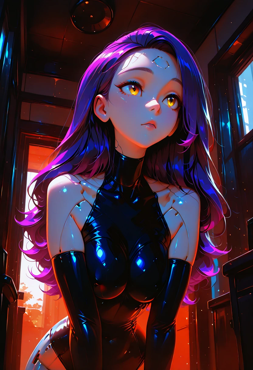 OGandroidNova, android, 1girl, solo, purple hair, , long hair, yellow eyes,
