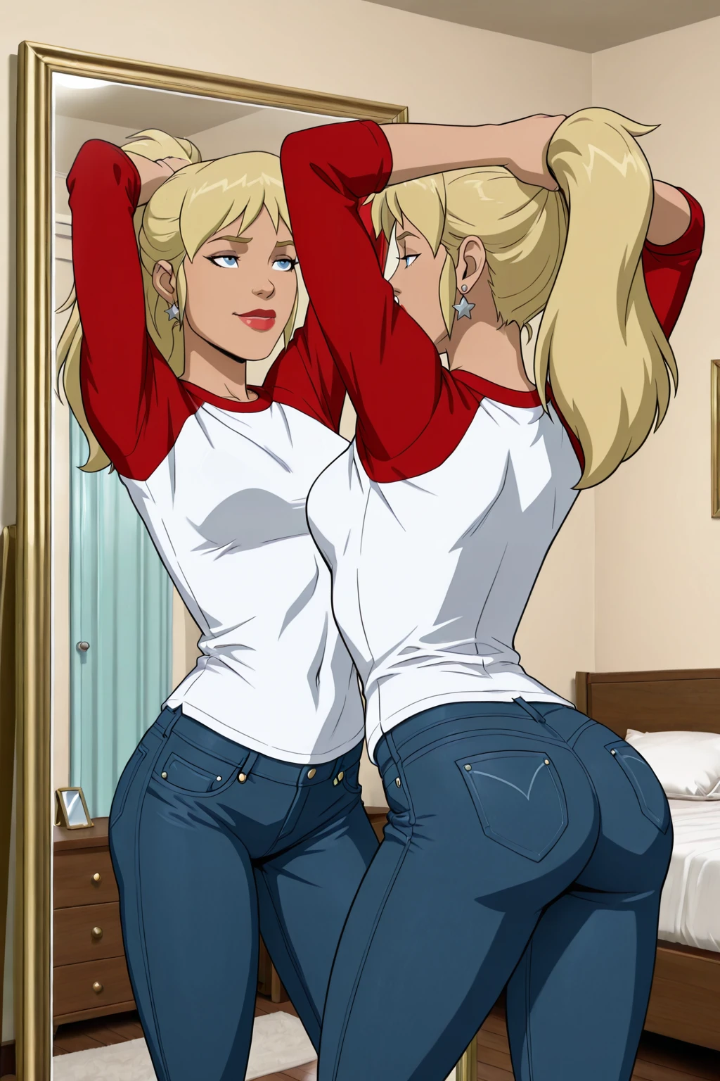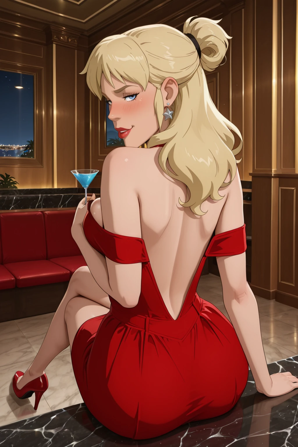 Base Prompt: cassie sandsmark, long hair, blonde hair, blue eyes, lipstick