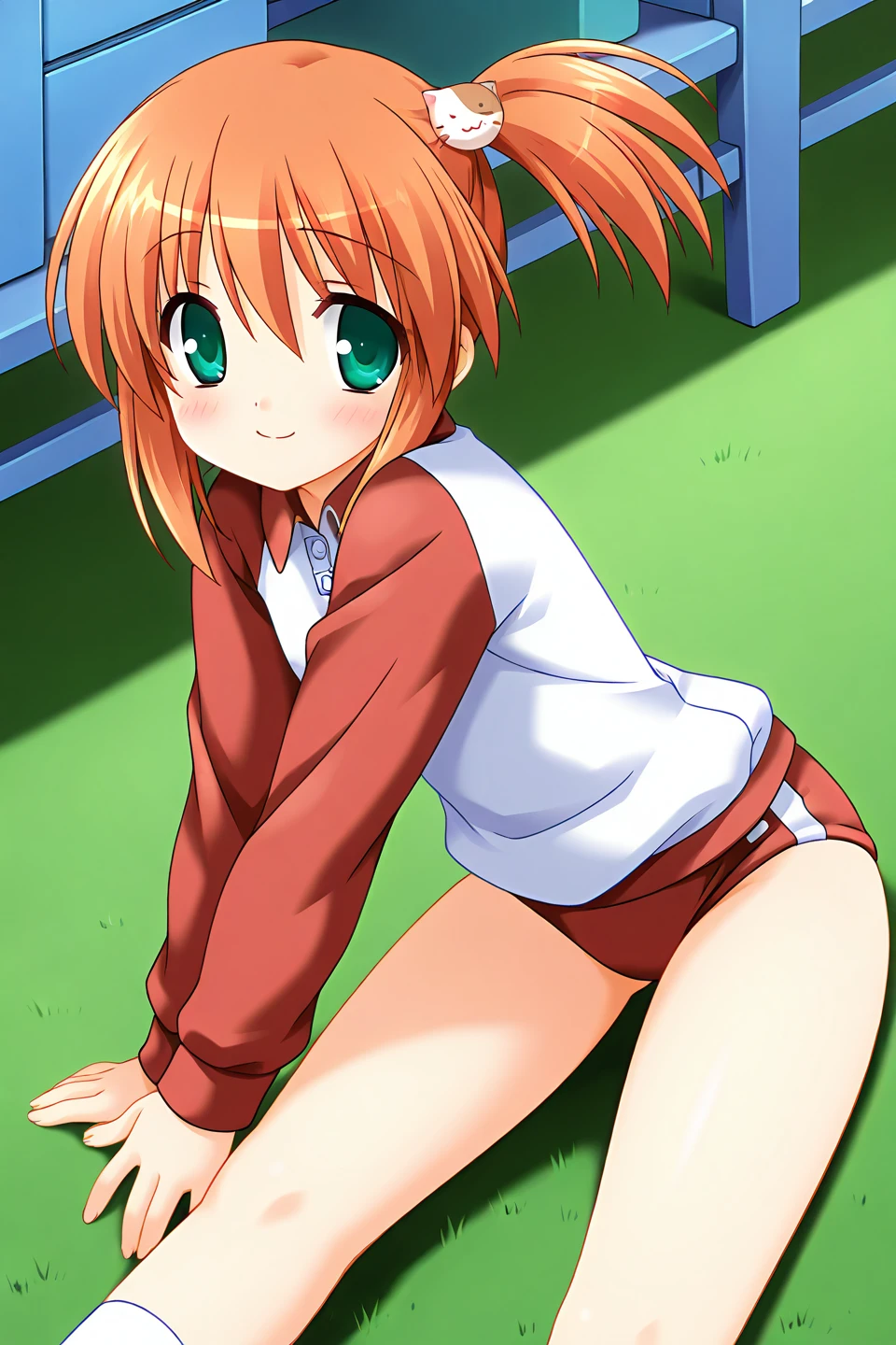 gym uniform, raglan sleeves, long sleeves, red sleeves, buruma, red buruma