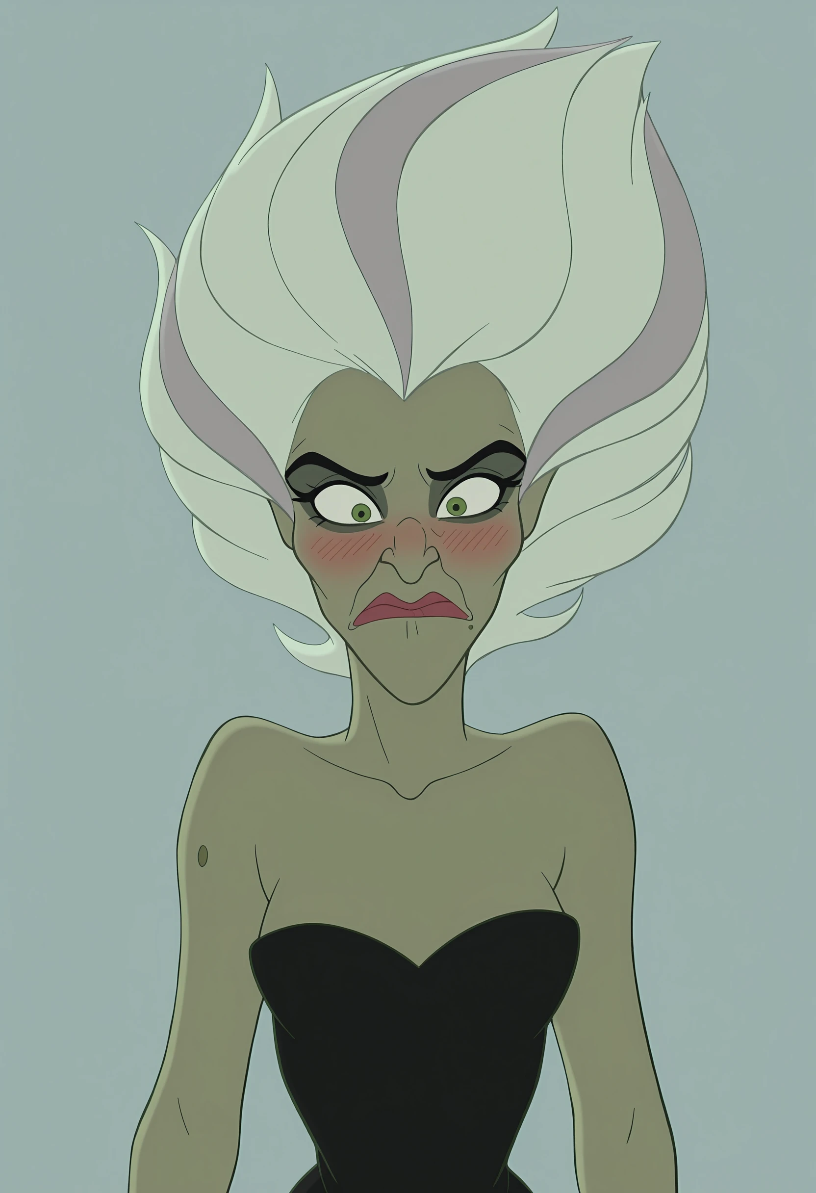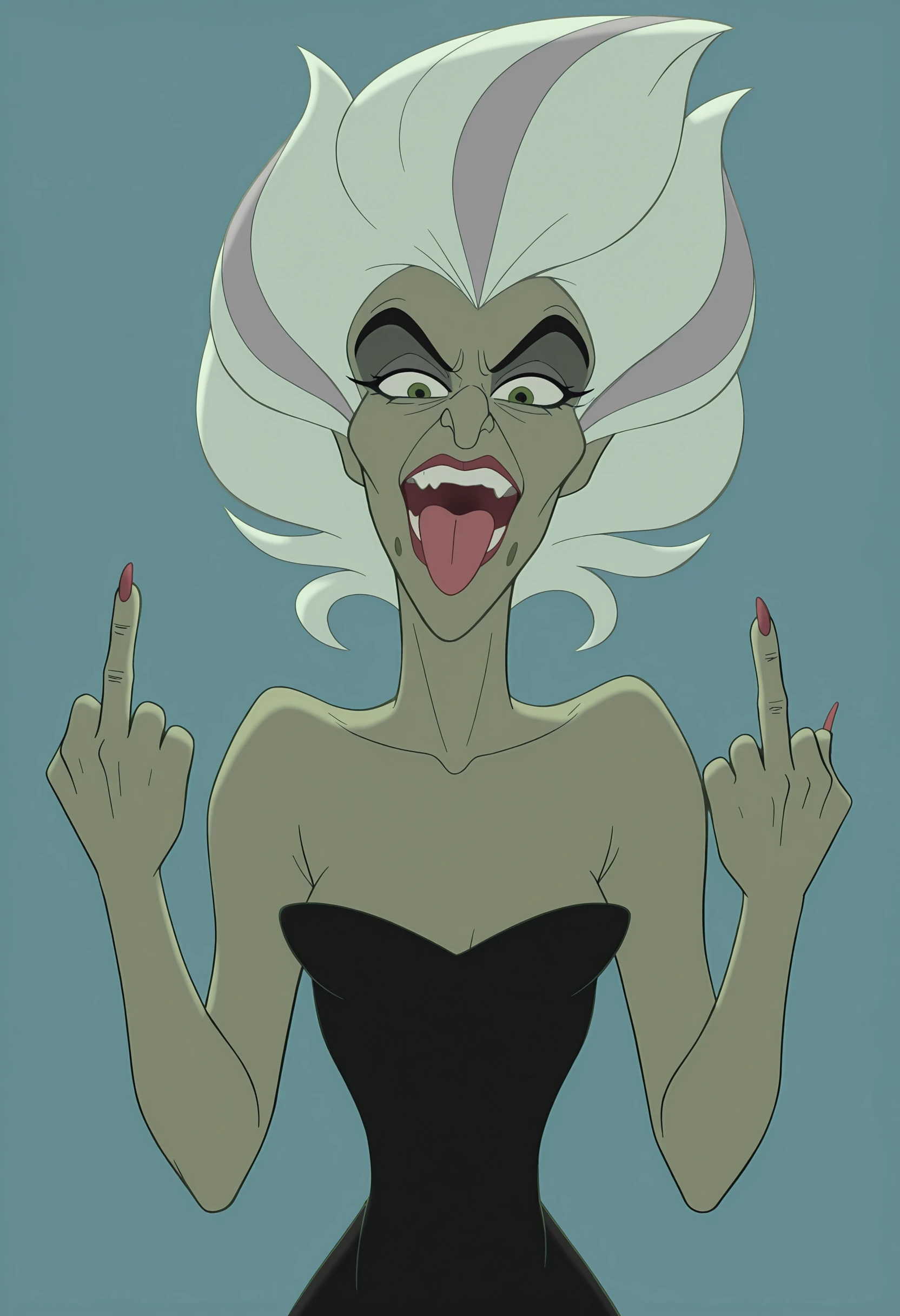green skin, colored skin, white hair, green eyes, dress, scylla