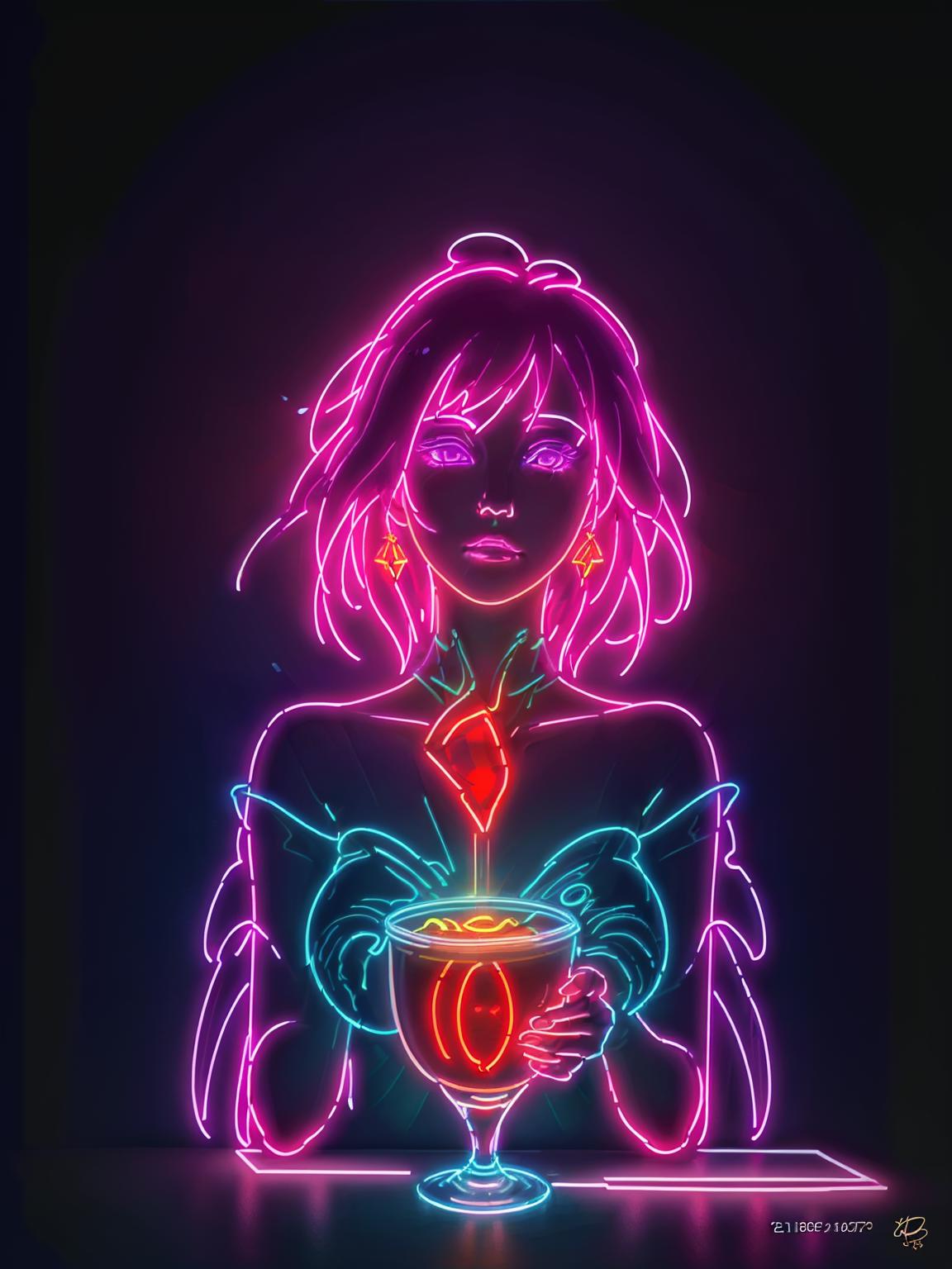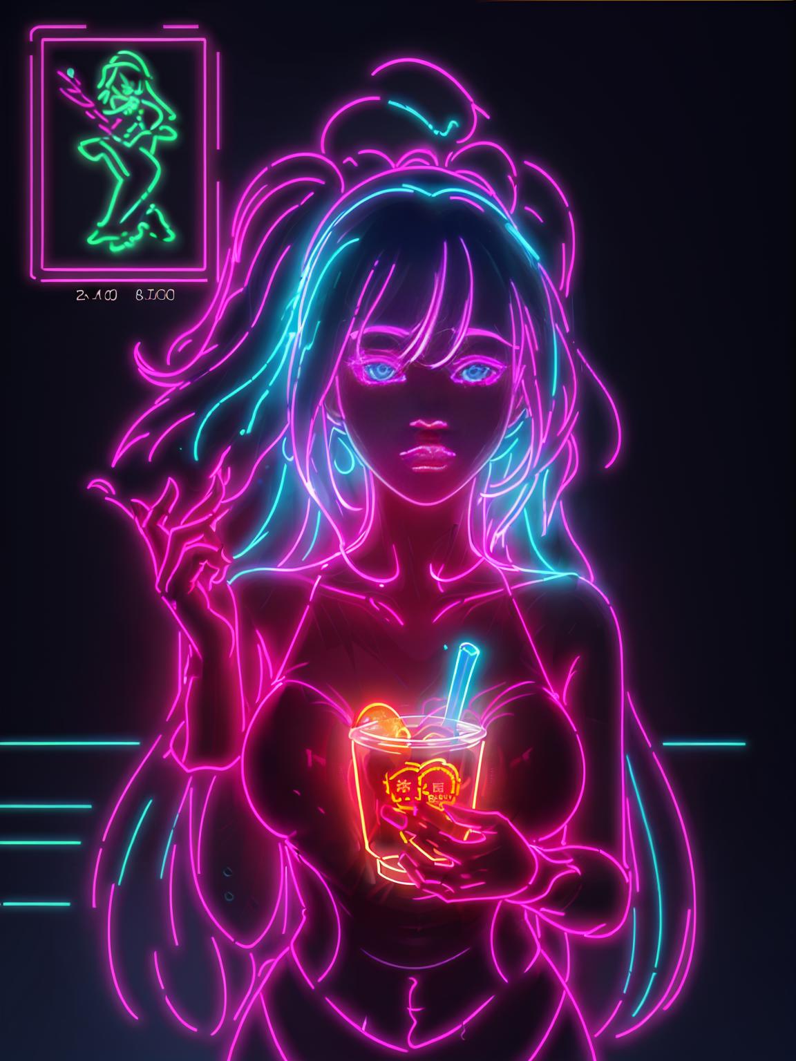 neonlight\(ttp\) to trigger,<lora:loraname:0.7> to use the lycoris, and put down the person you want to put into the box, please use nature language to describe the person.