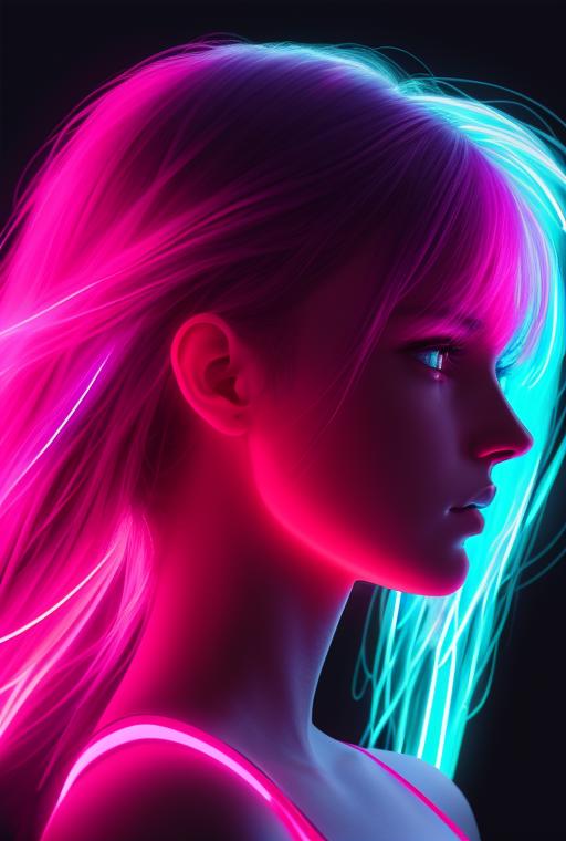 neonlight\(ttp\), 1girl, huge text, neon lights,( contours:1), (lines:1.5),(holographic projection:1.2), (transparent:1.5),isometric, ground platform, profile, upper body, glowing <lora:neonlight_V1_loha_upload:0.65>