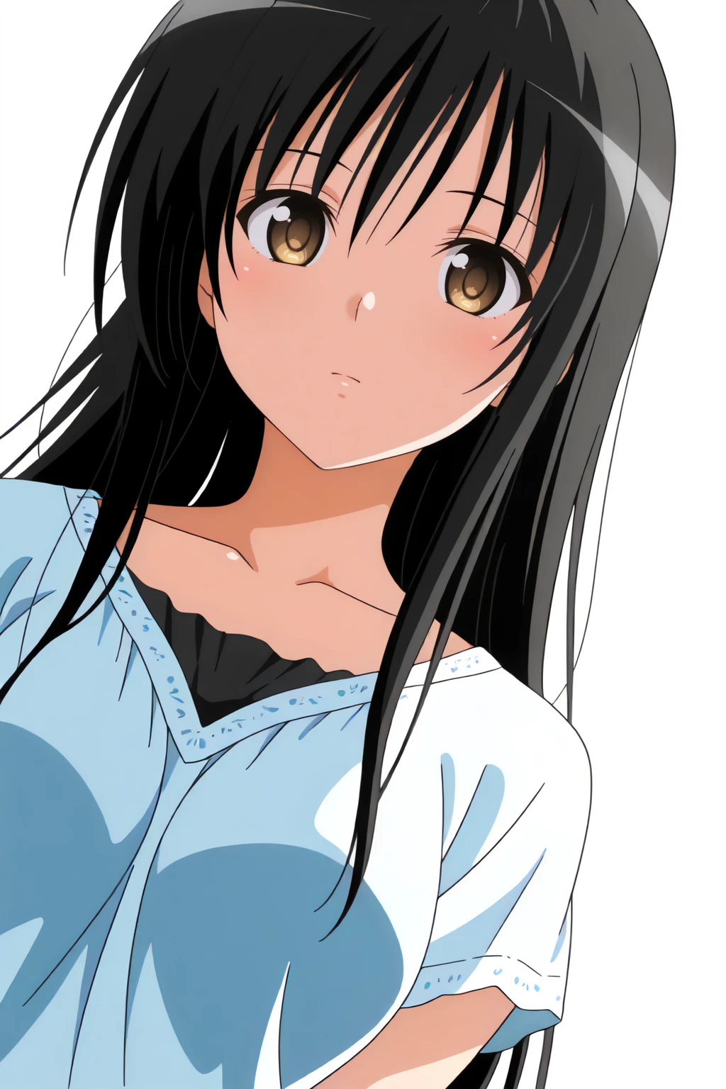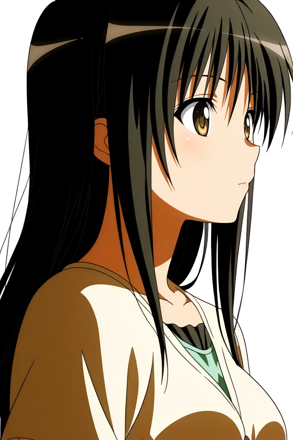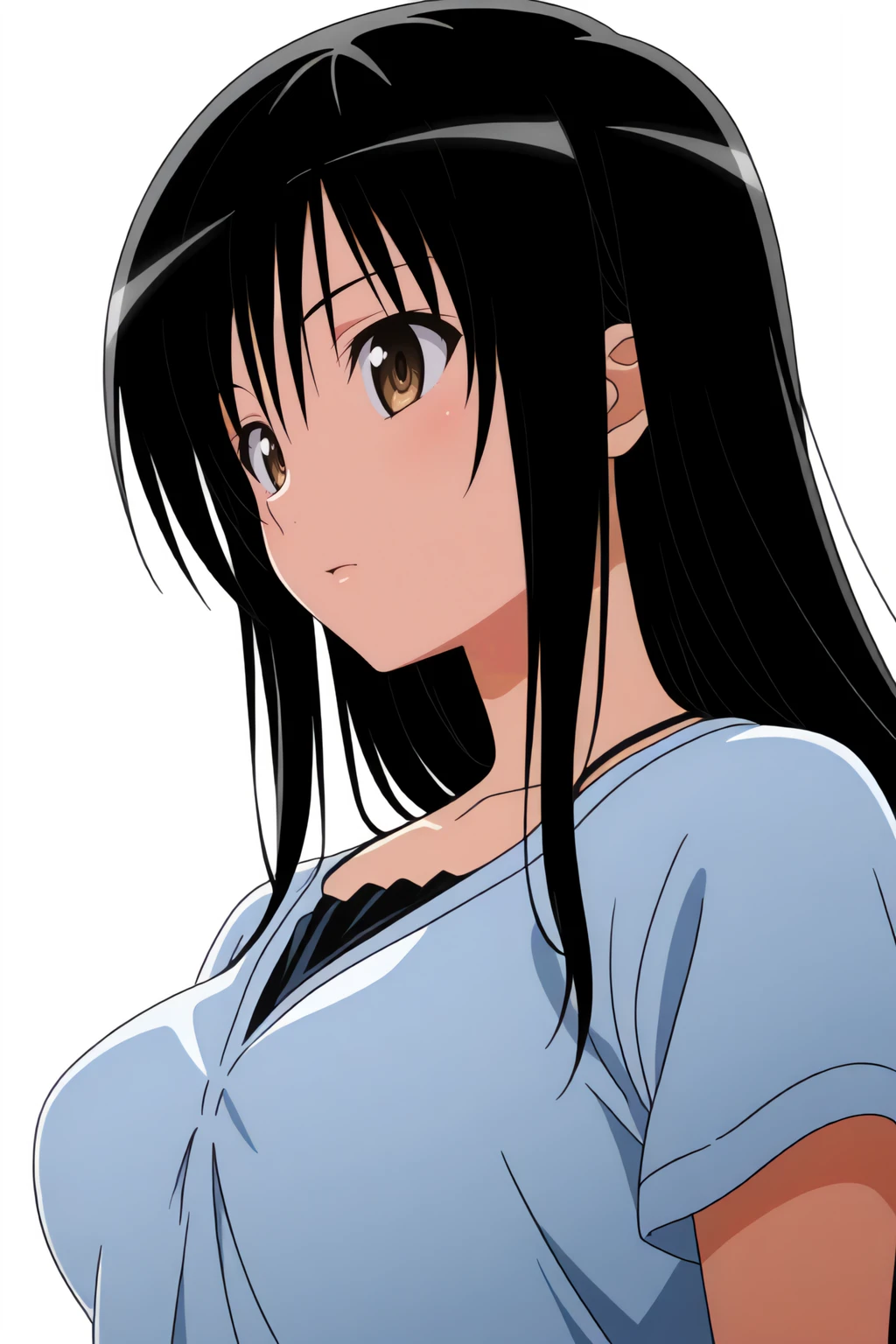long hair, t-shirt, white dress shirt