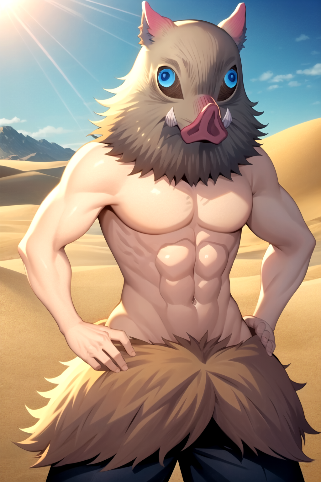 Masked prompts : inosukemask, mask, animal, black pants, blue eyes