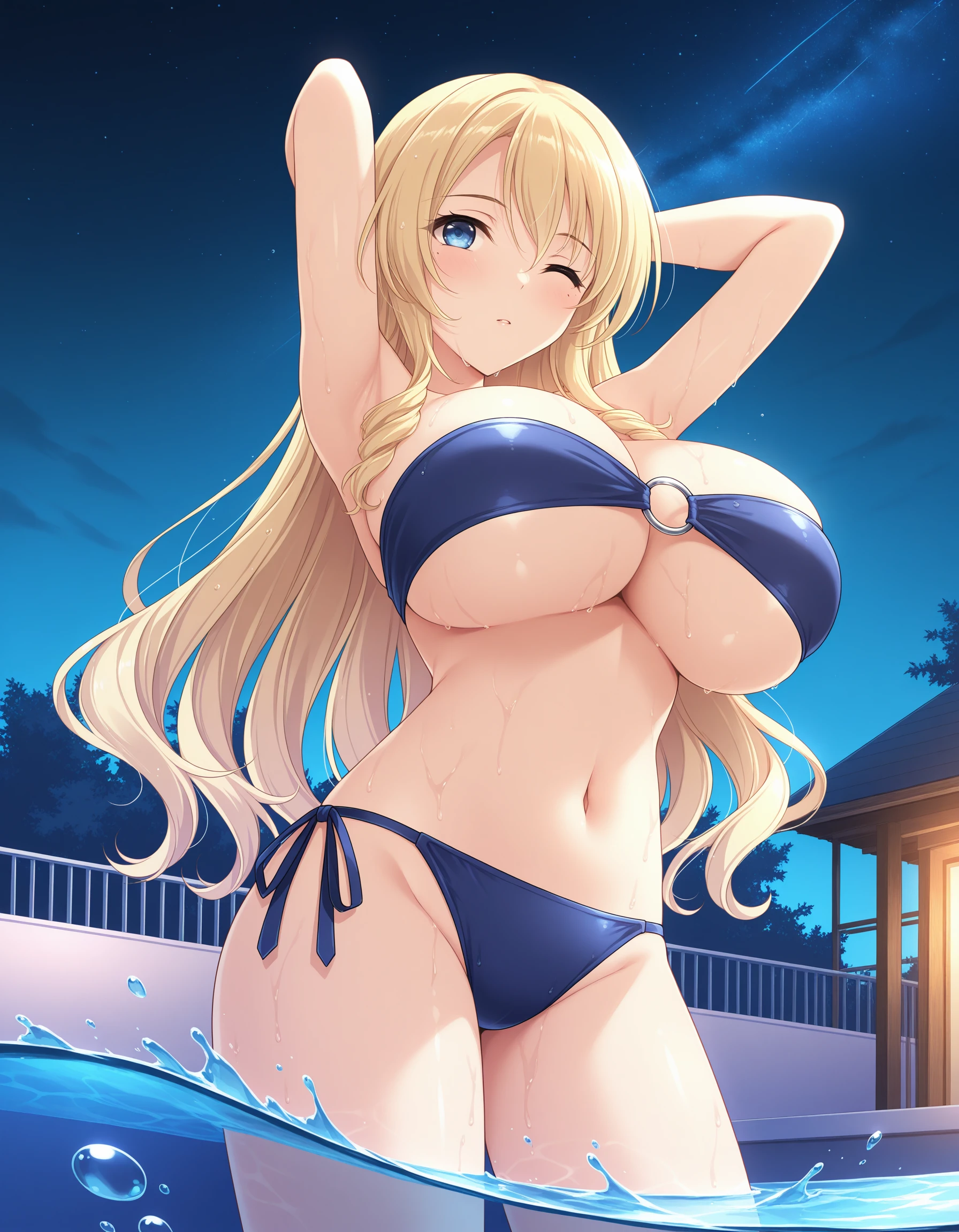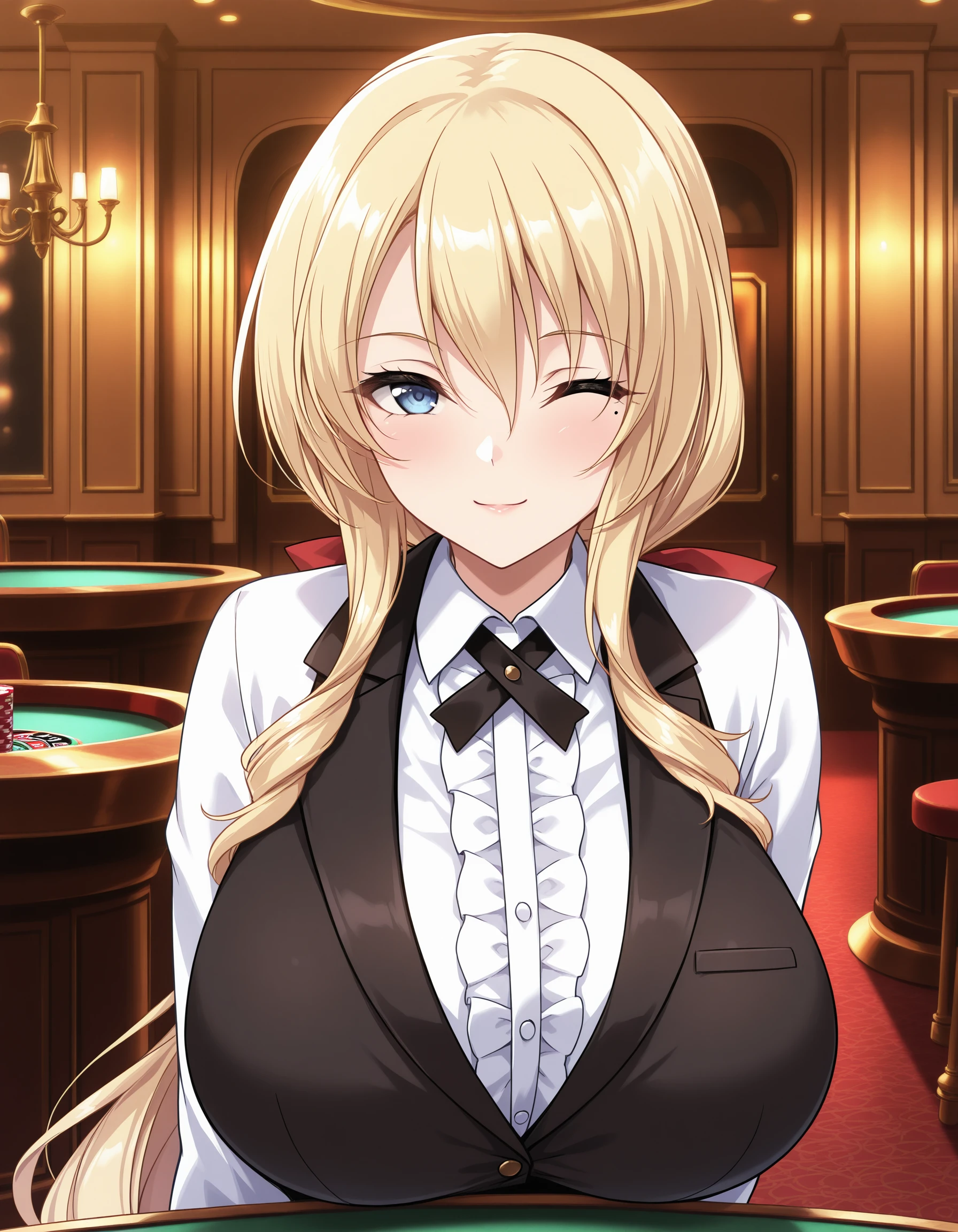 nadiatorishizu,1girl,blonde hair,long hair,blue eyes,drill sidelocks,mole under eye,huge/large breasts