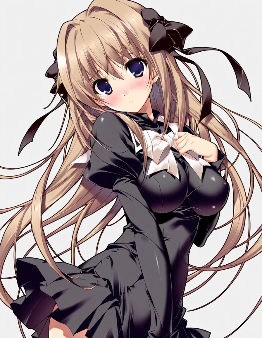 long sleeves, dress, bow, ribbon, school uniform, puffy sleeves, black dress