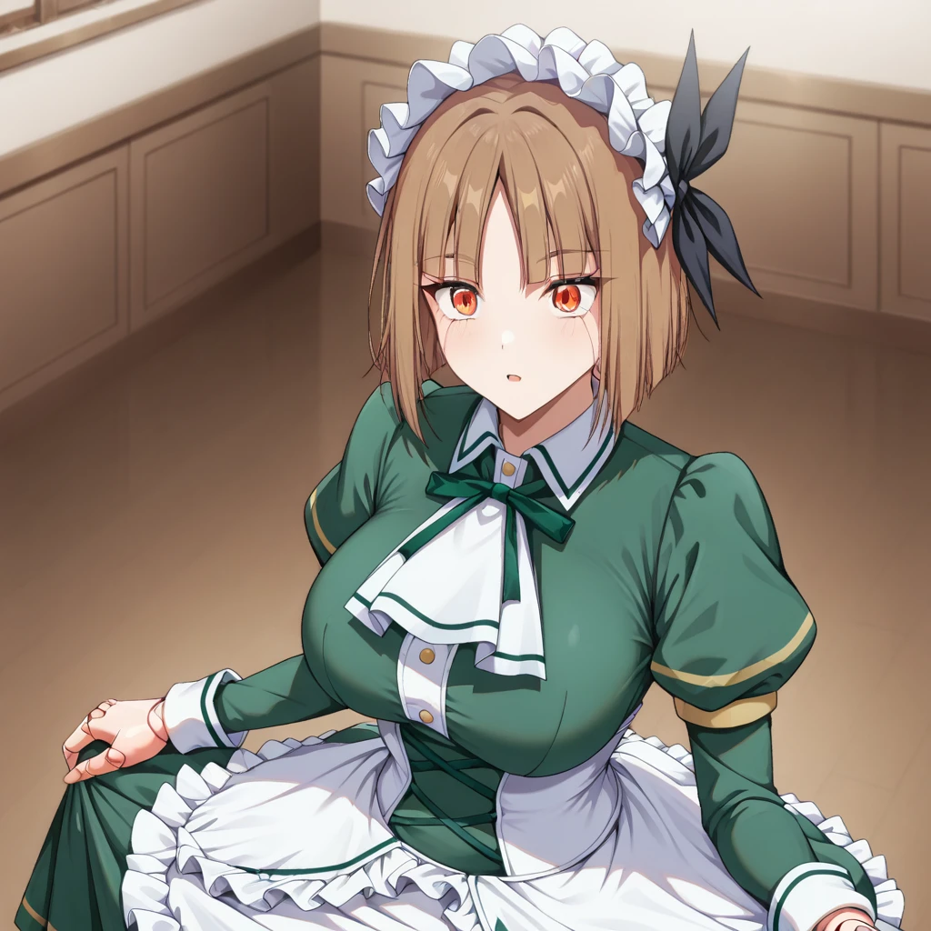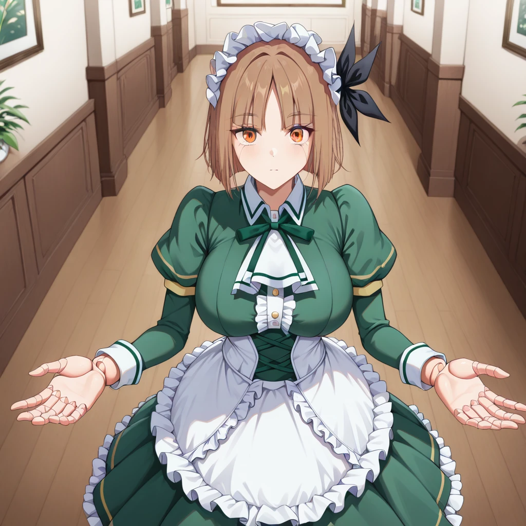 Base: (LibraWildBoss, brown hair, short hair, bangs, maid headdress, hair ribbon)