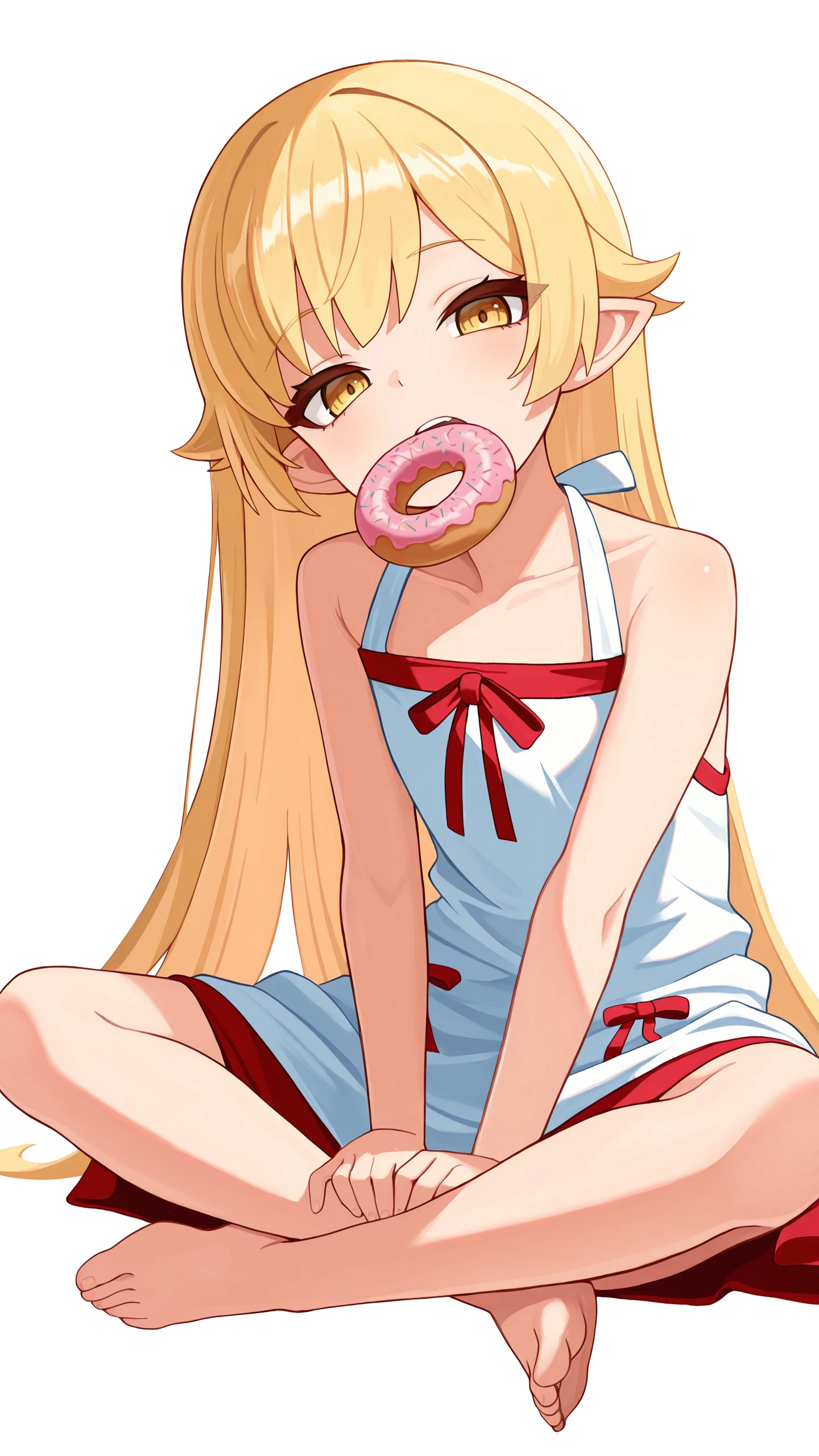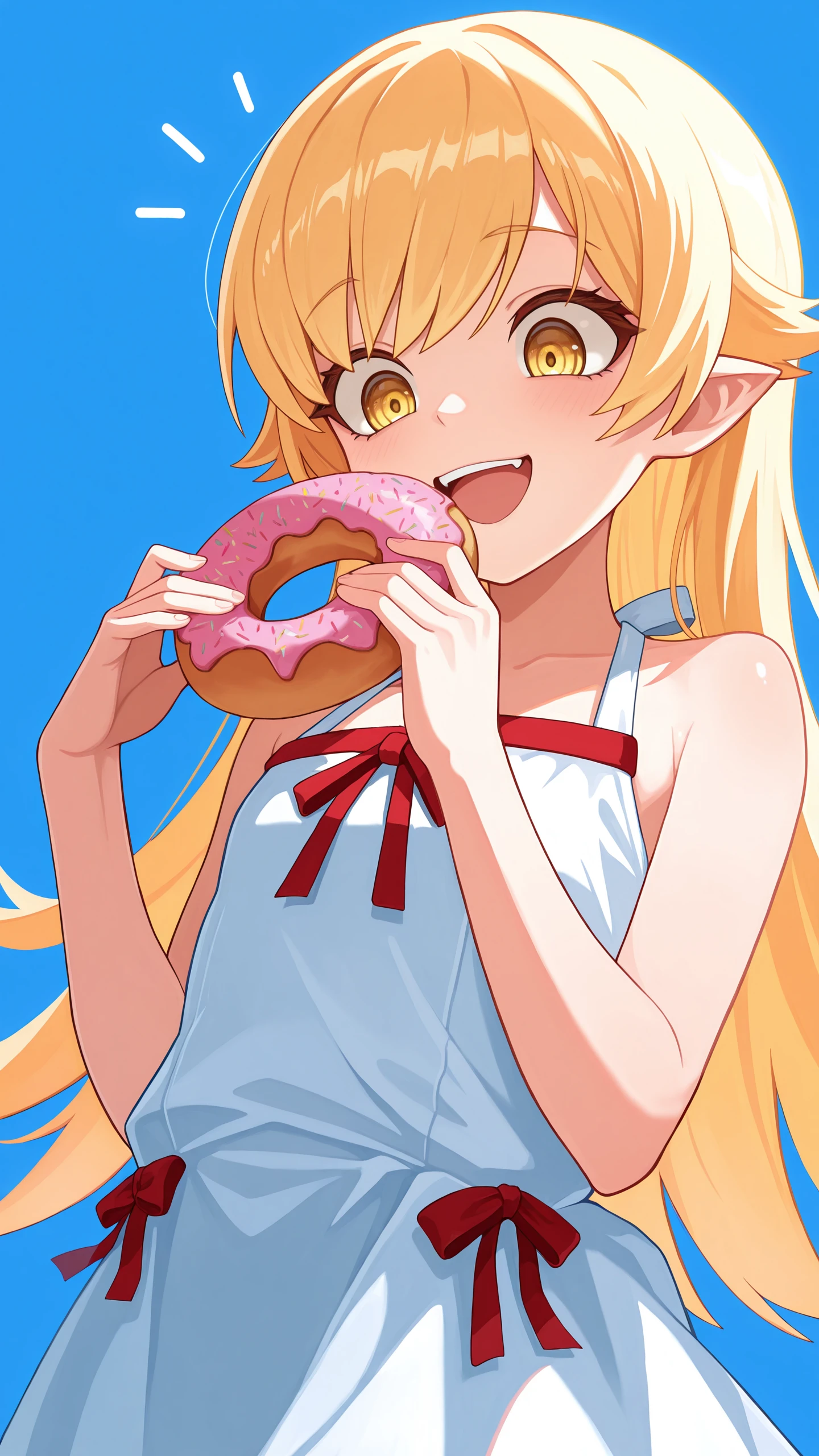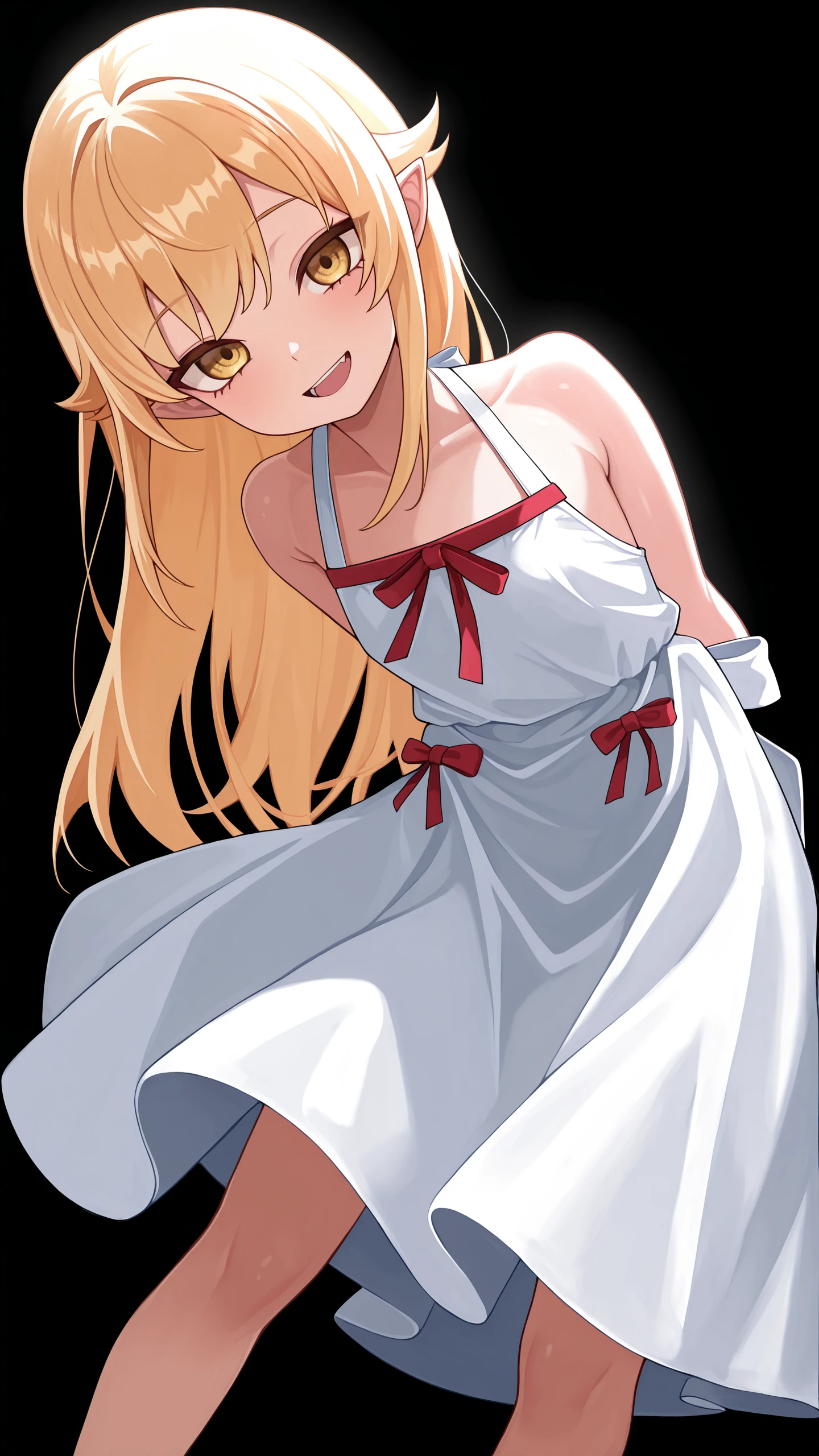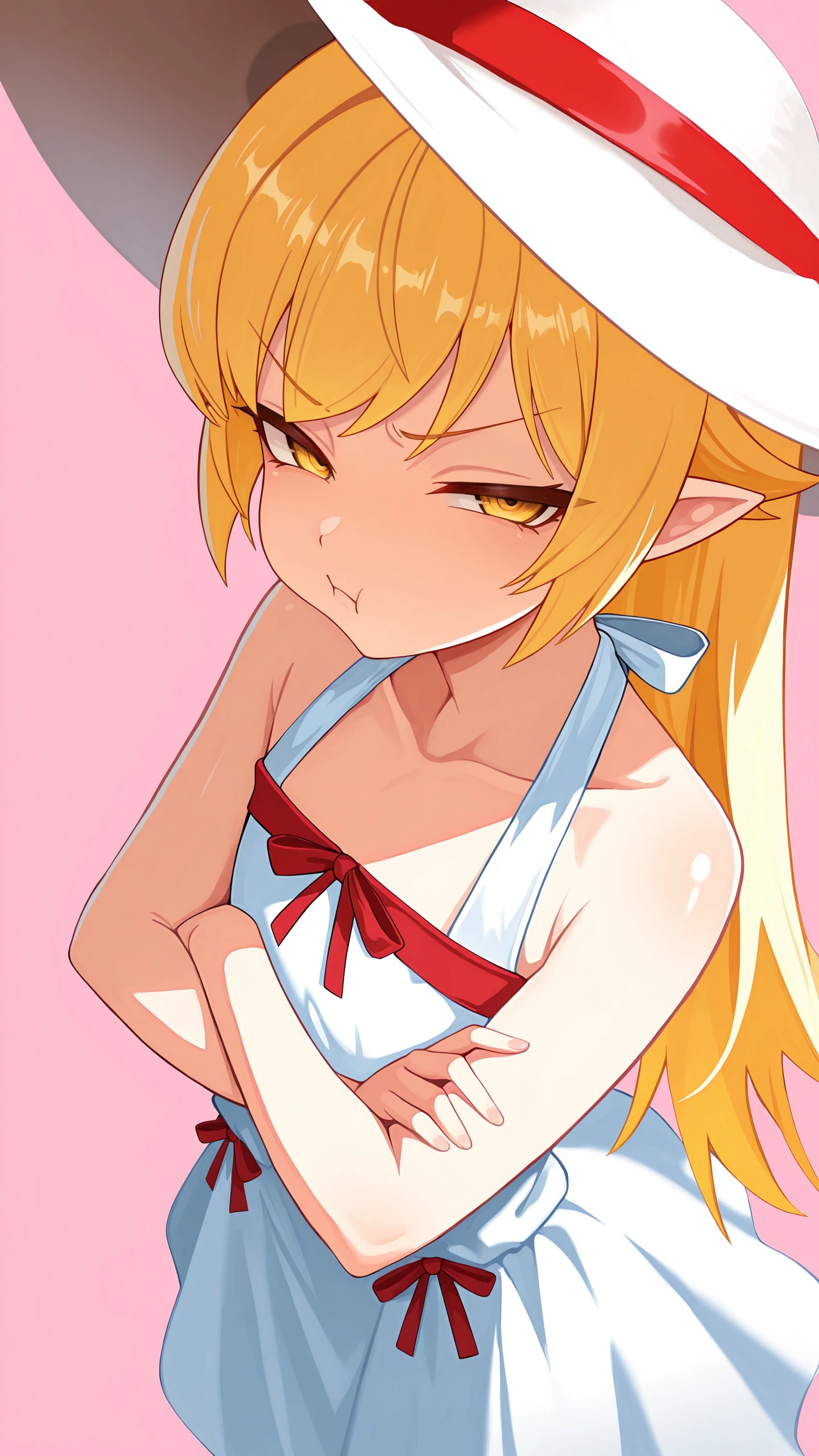 blonde hair, yellow eyes, pointy ears, k1ss-shot, large breastsBase (Shinobu)
