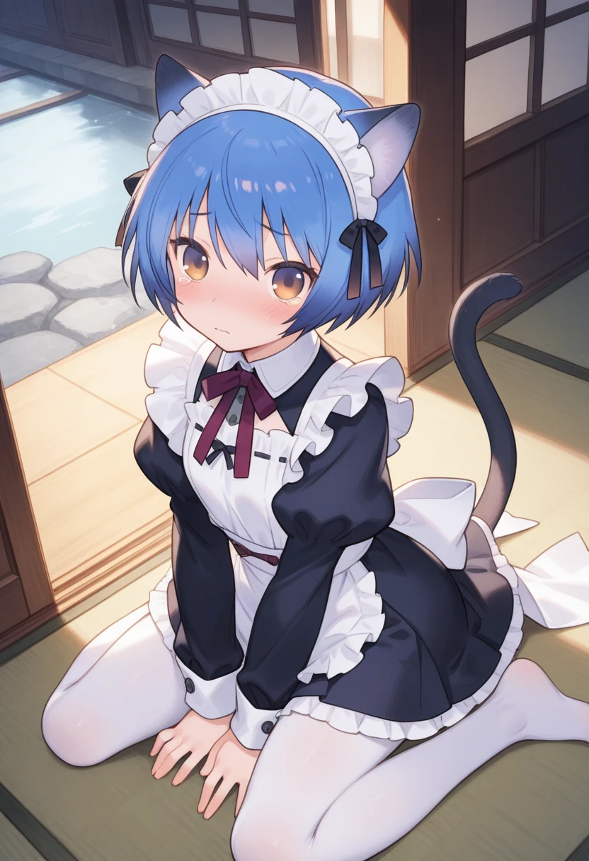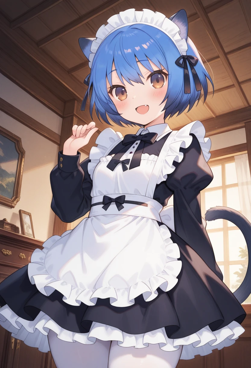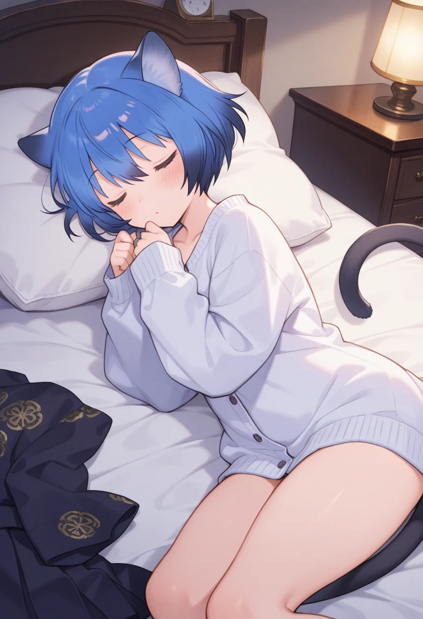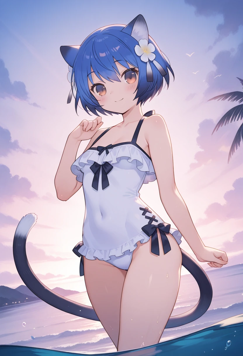 katsushige_muramasa, blue hair, brown eyes, cat ears, cat tail, short hair