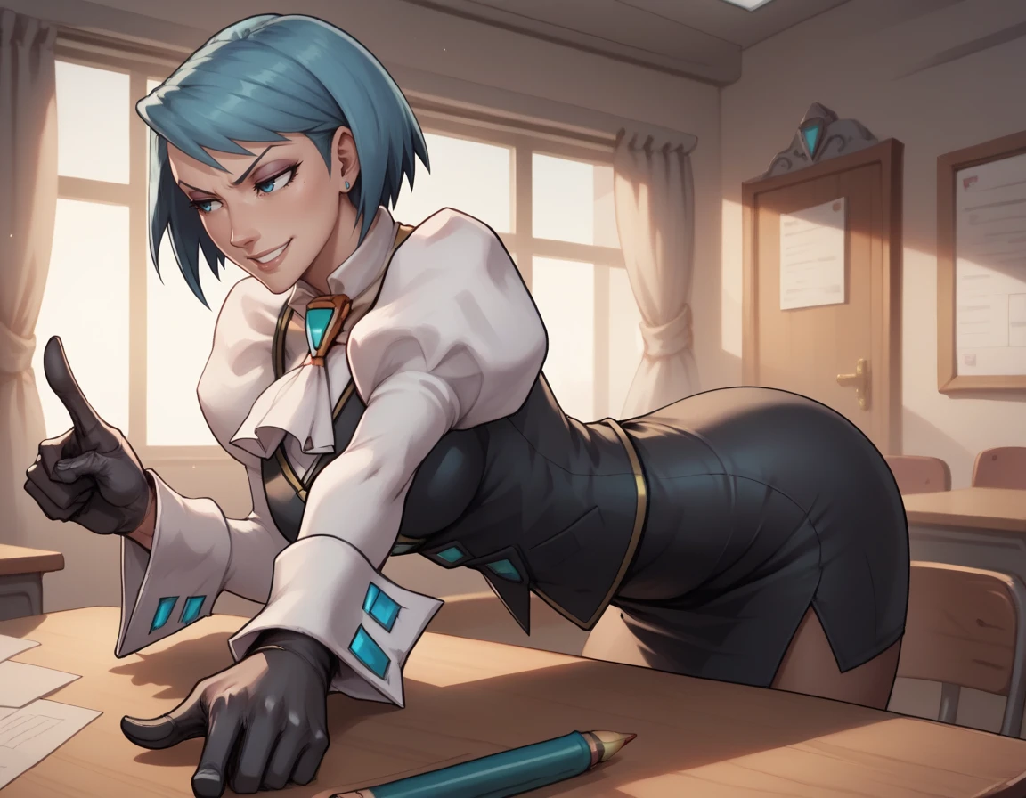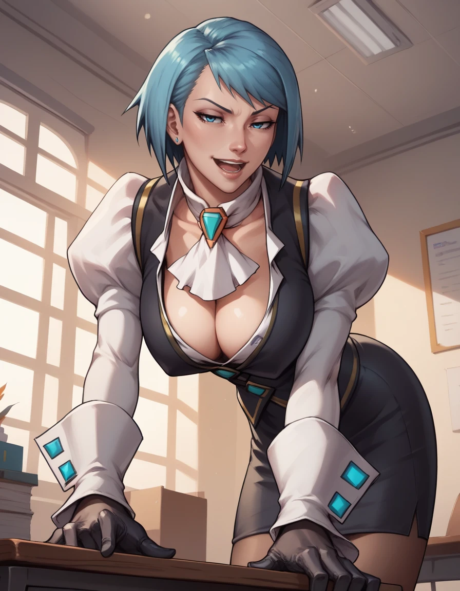 short hair, blue hair, blue eyes,